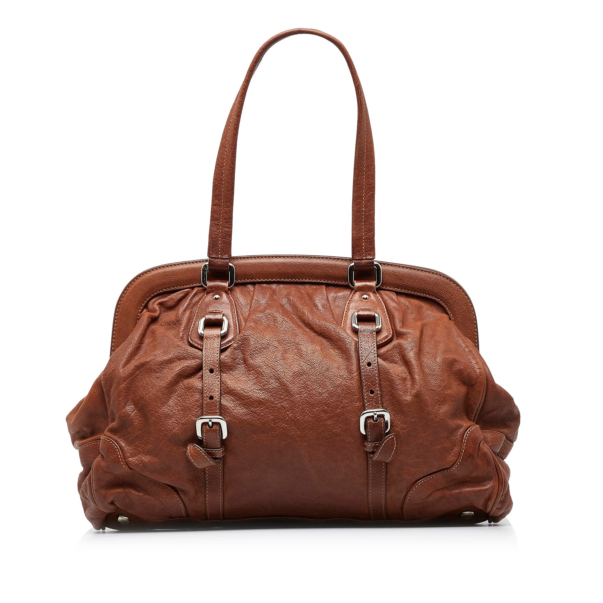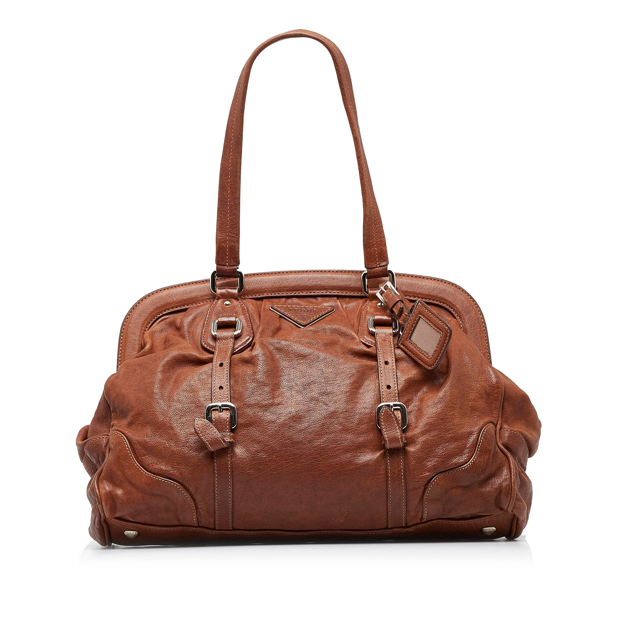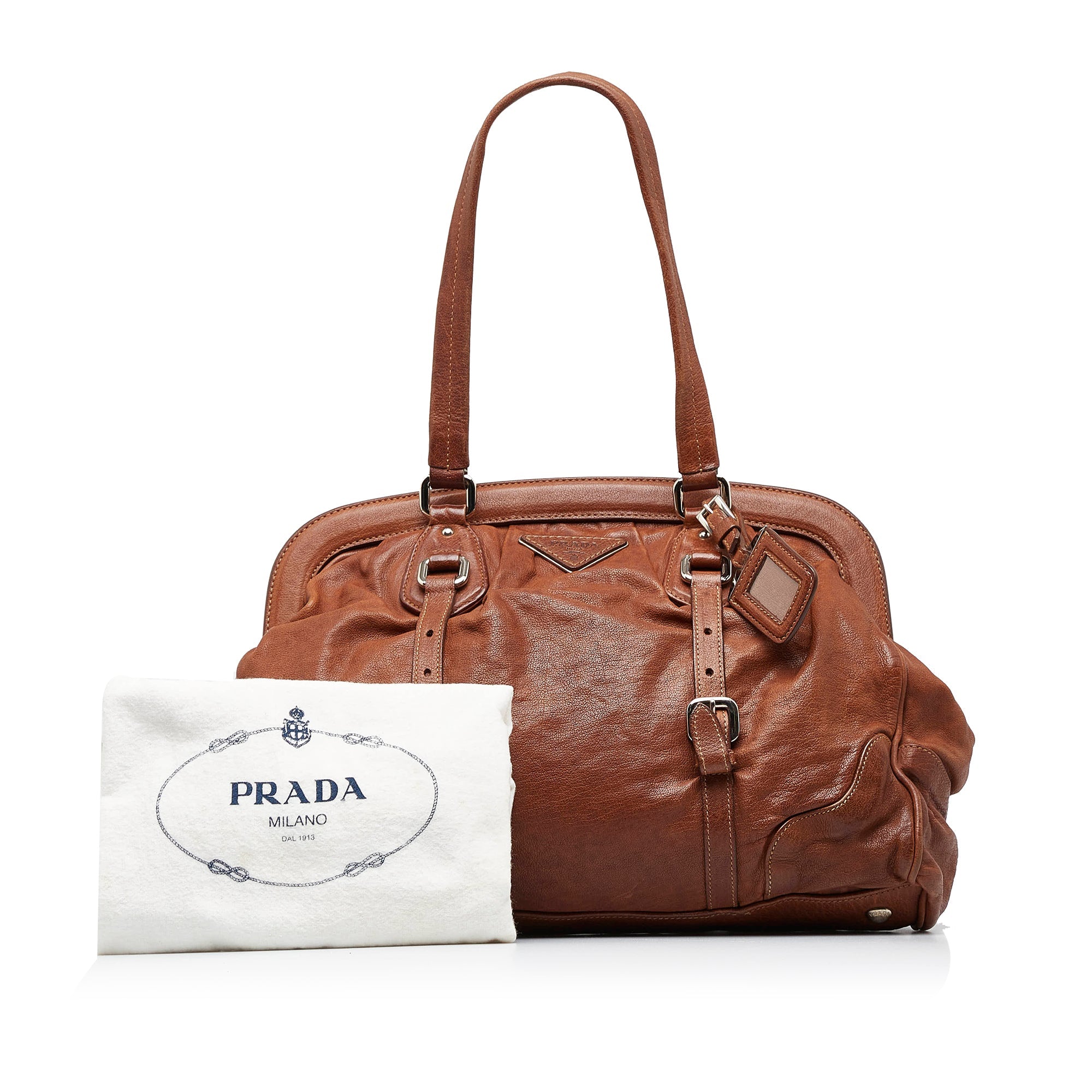Brown Prada Frame Leather ToteBrown Prada Frame Leather Tote