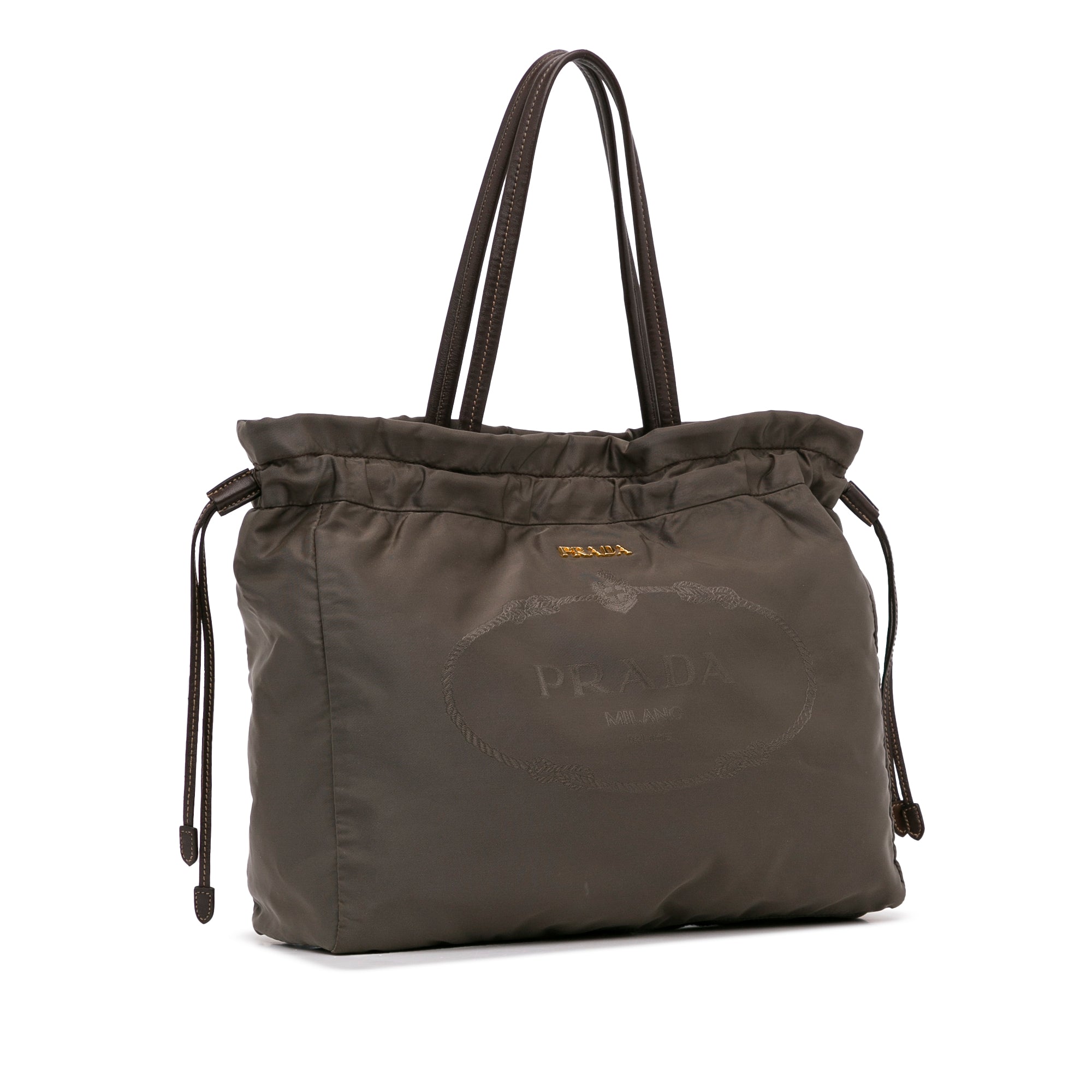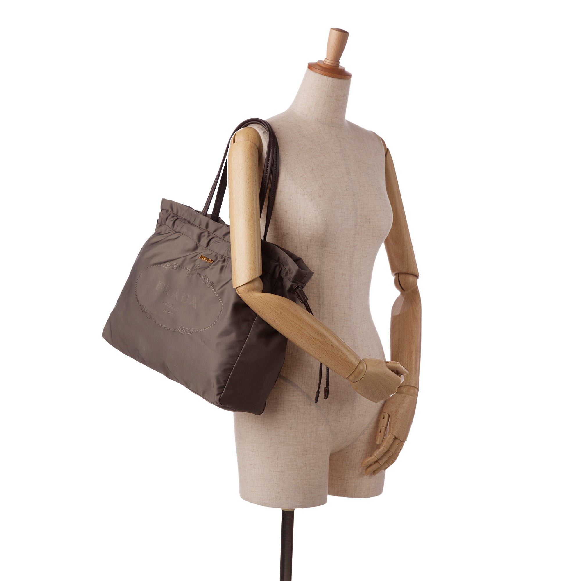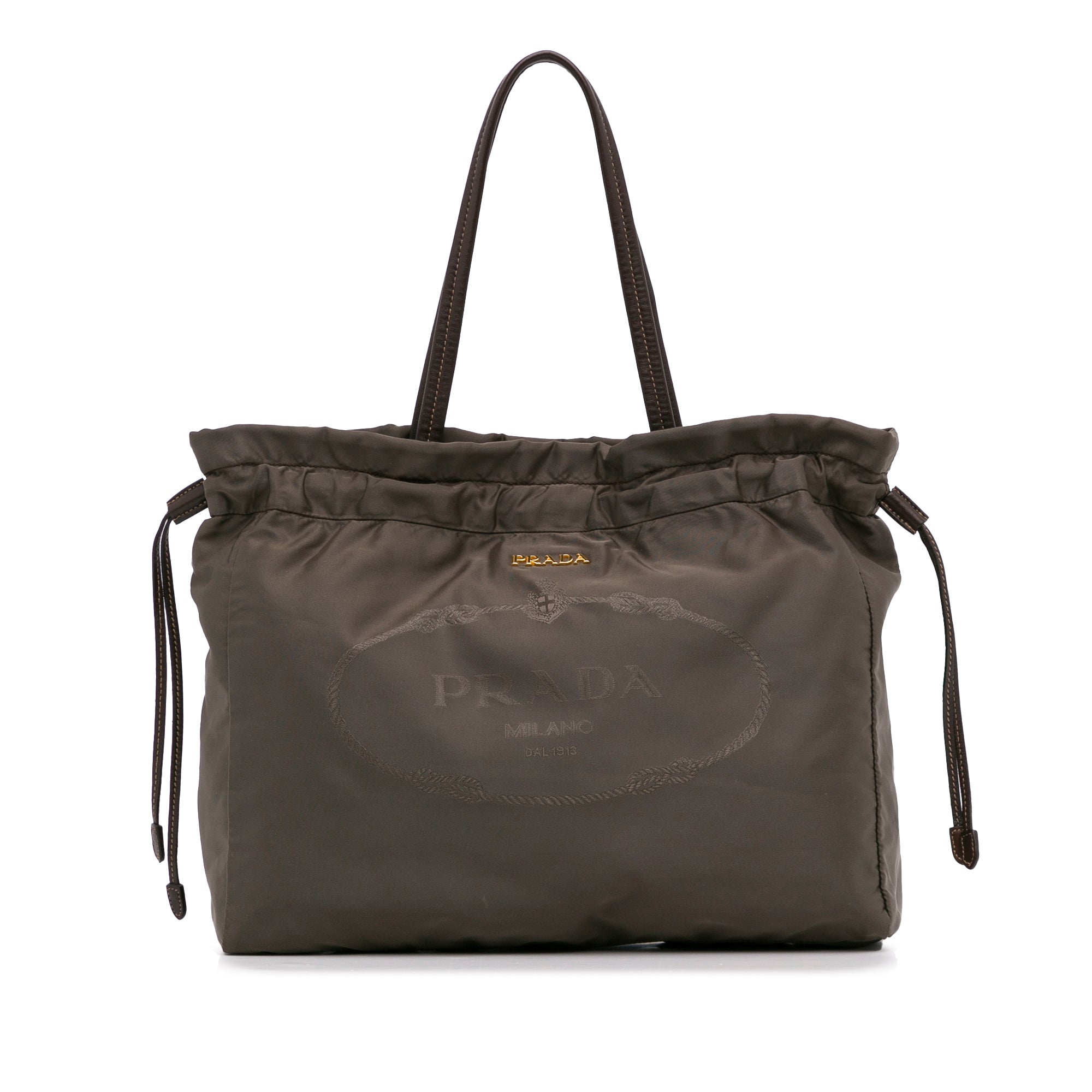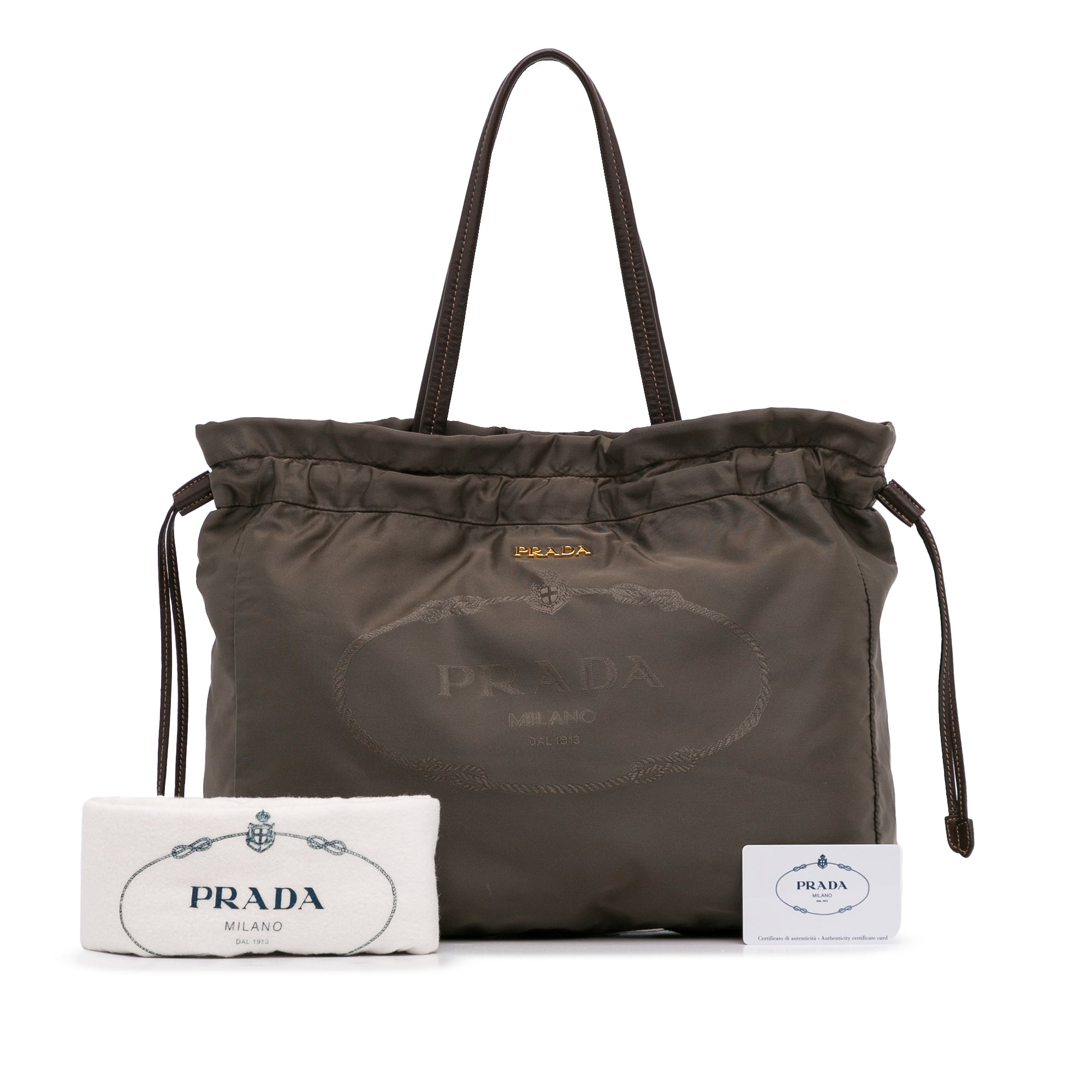 Please note this is a item that may display signs of wear consistent with the condition listed above and shown in photos. Designer Revival this is an Brown Prada Logo Tessuto Drawstring Tote Bag or . Learn more about our ation process.