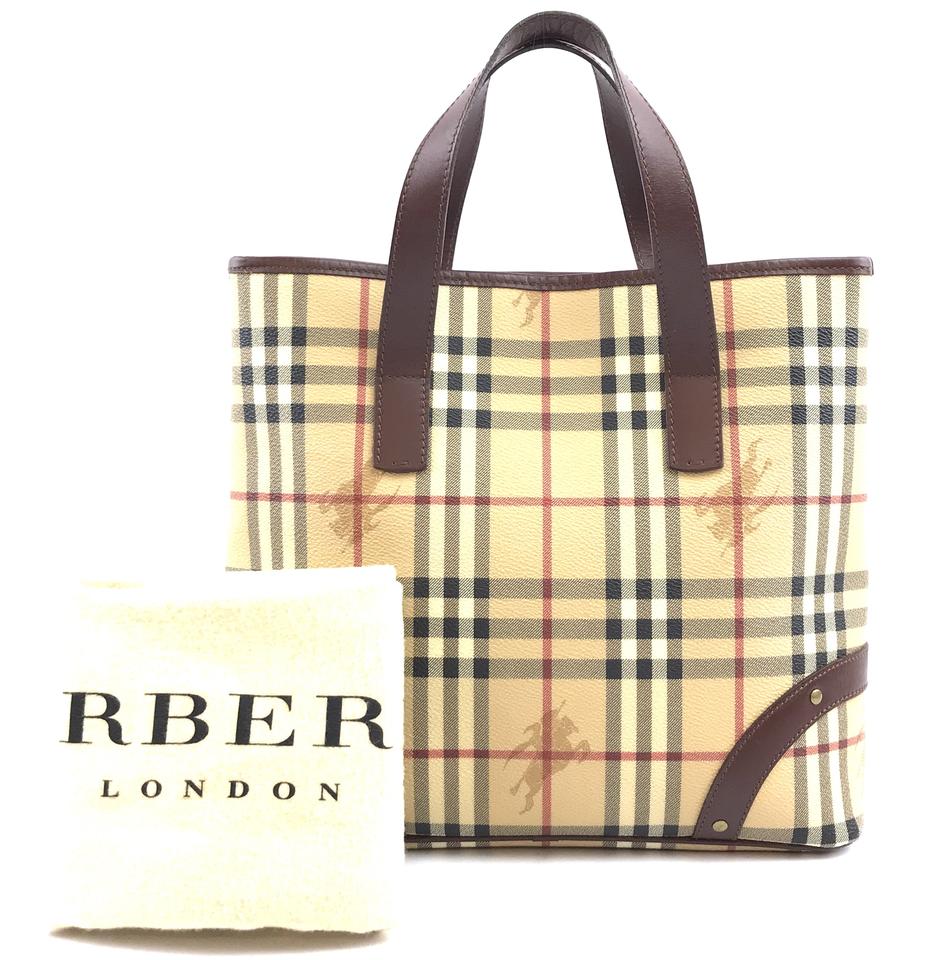 Burberry Bag Haymarket Check Pattern Beige and Brown Leather Coated Canvas Tote quantity
