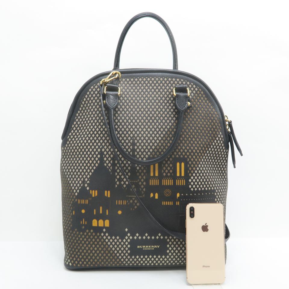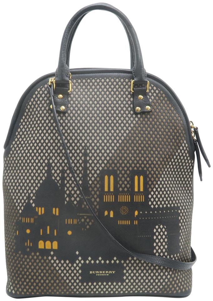 Burberry Bloomsbury Prorsum London City Motif 2way Dome Black Leather Tote