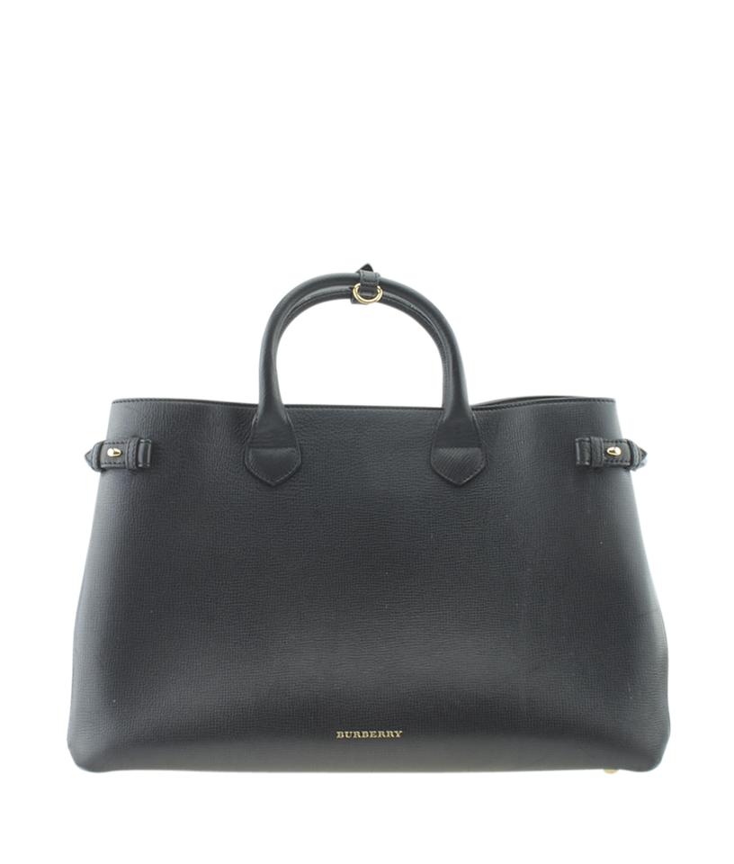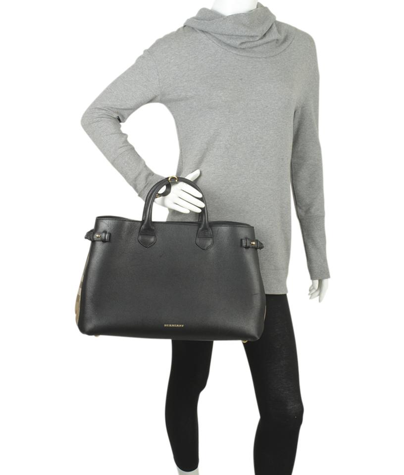 / Burberry Large Banner Leather & Nova Check Black Canvas Tote