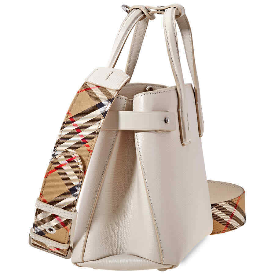 / Burberry Small Banner in Leather and Vintage Check- Limestone 4075935