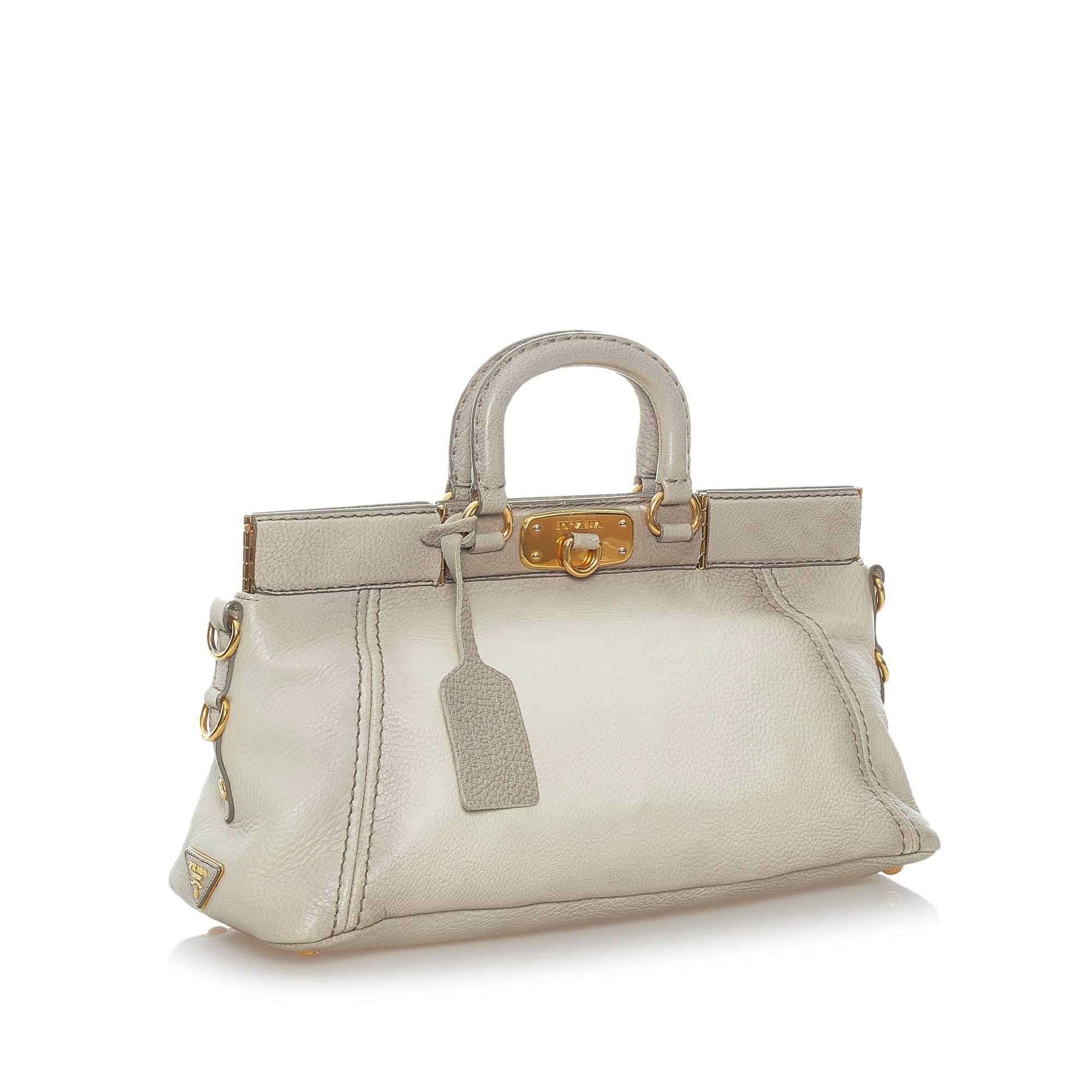 This extraordinary Prada Cervo Antik Frame Handbag was made of gray leather, which knows how to please with its bright color. At the upper opening it has the Bag a framework that with joints opening the Bag and allowed access to the interior. the Bag Has Henkel for transportation in hand and a leather shoulder strap for a loose transport over the shoulder. In the interior, theBag A zipper compartment.
