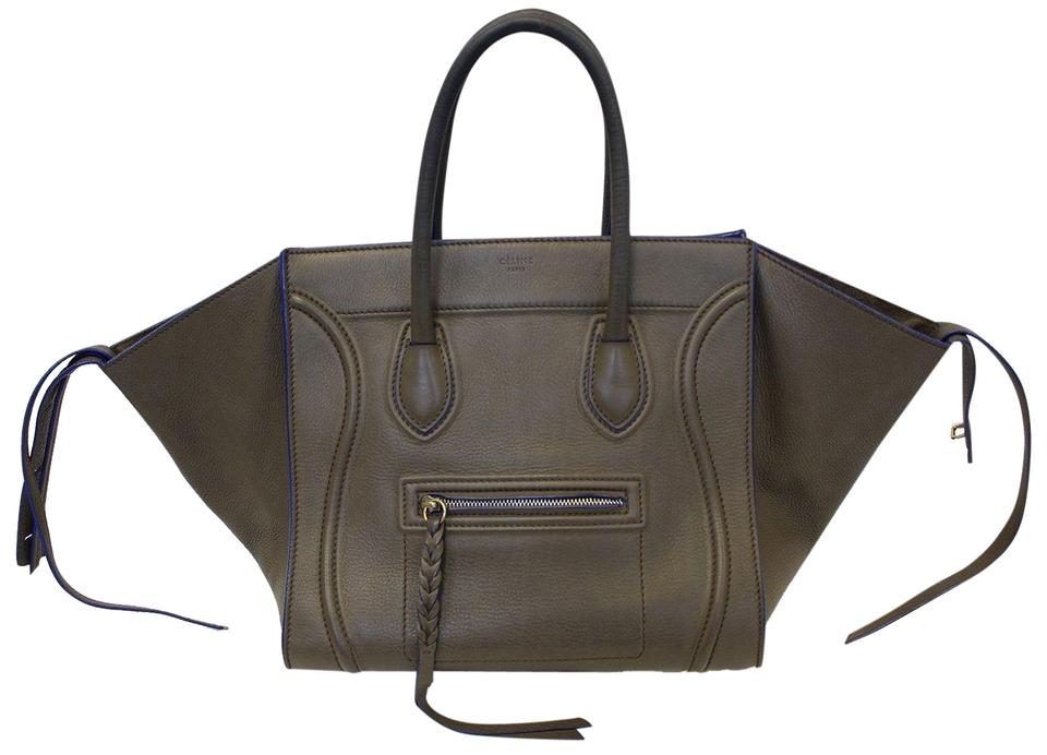 / Céline Cabas Phantom Luggage Bicolor Olive Green Grained Leather Tote