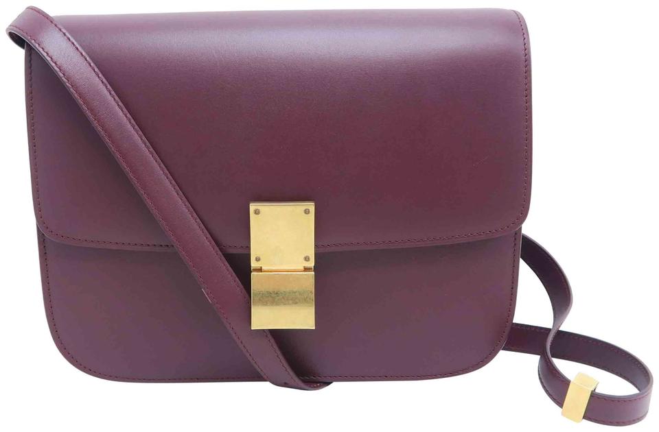 Céline Classic Box Medium Winered Calfskin Leather Shoulder Bag