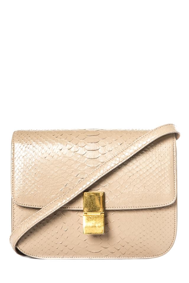 Céline Classic Box Tan Beige Python Skin Leather Cross Body Bag