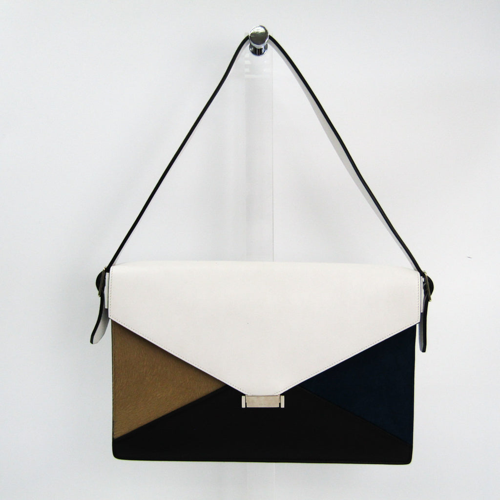 This is an new, pre-owned CELINE Diamond Shoulder Bag. It features a diamond-patterned cuir leather, horse hair, suede, and nubuck leather design. It has an adjustable shoulder strap, a back zip pocket, and a gusseted interior with functional pockets.