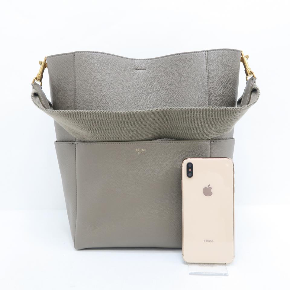 / Céline Sangle Seau Grey Calfskin Leather Shoulder Bag