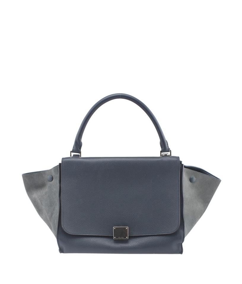 / Céline Trapeze Medium Leather & Suede Blue Leatherxsuede Shoulder Bag
