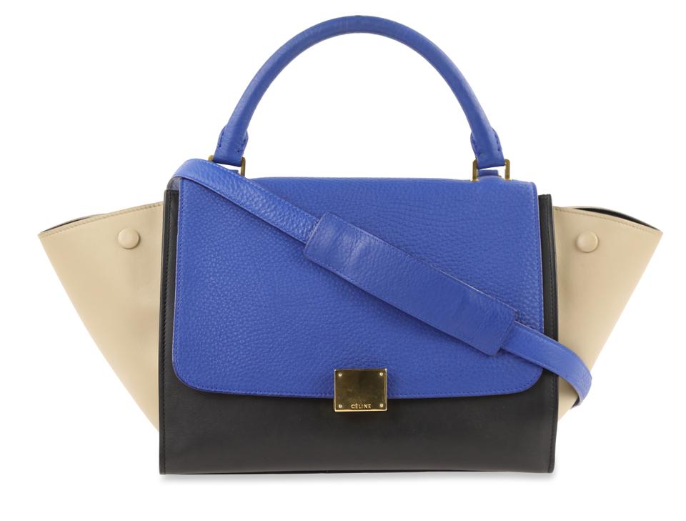 Céline Trapeze Tricolor Small Blue Leather Shoulder Bag