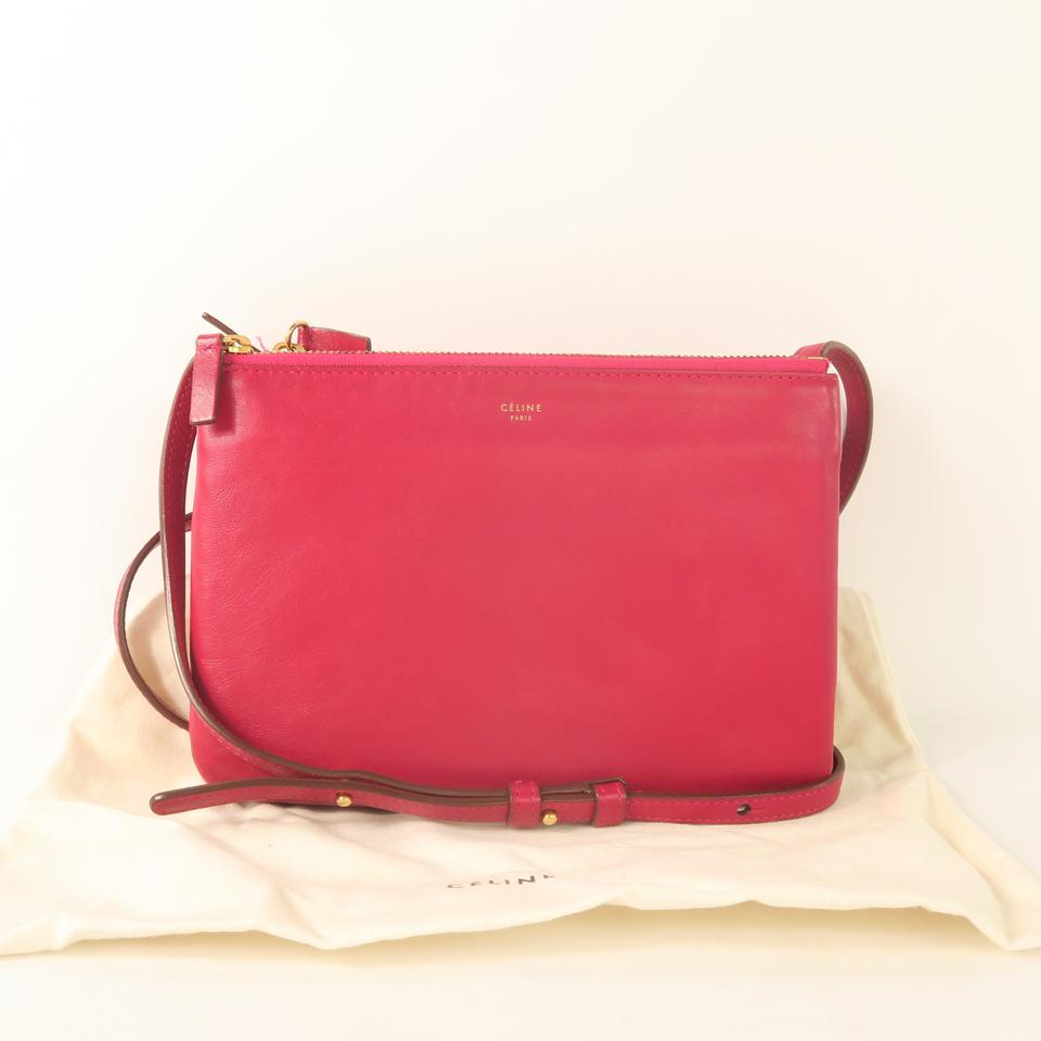 / Céline Trio Small Mint Fuchsia Calfskin Leather Cross Body Bag