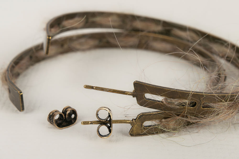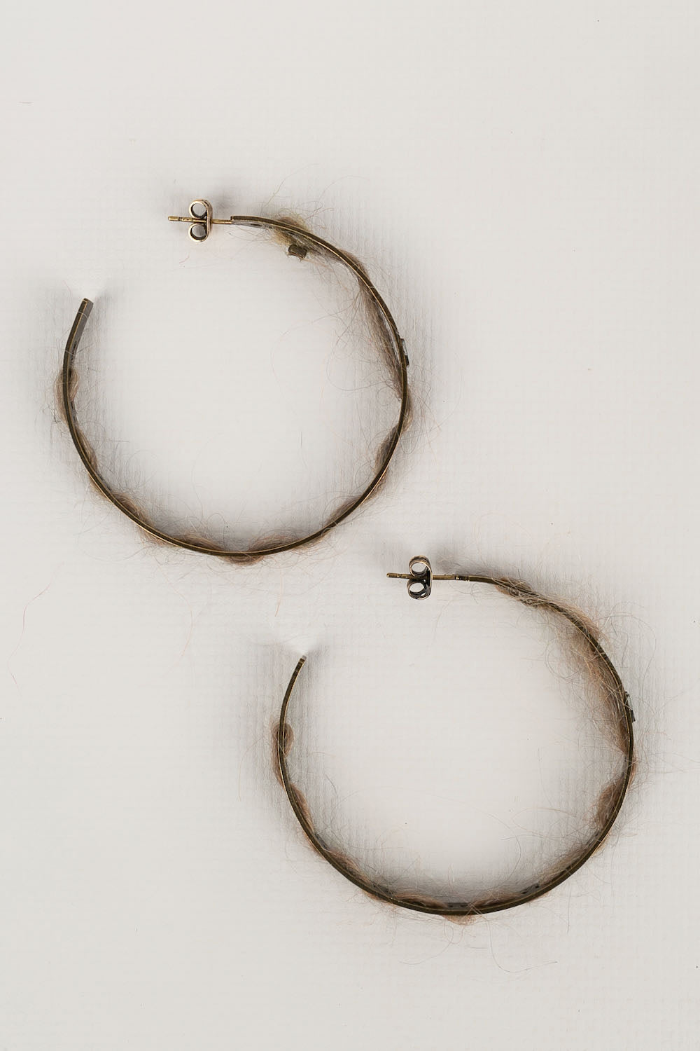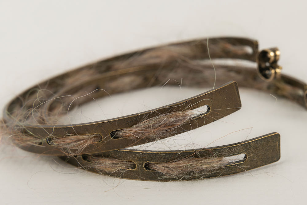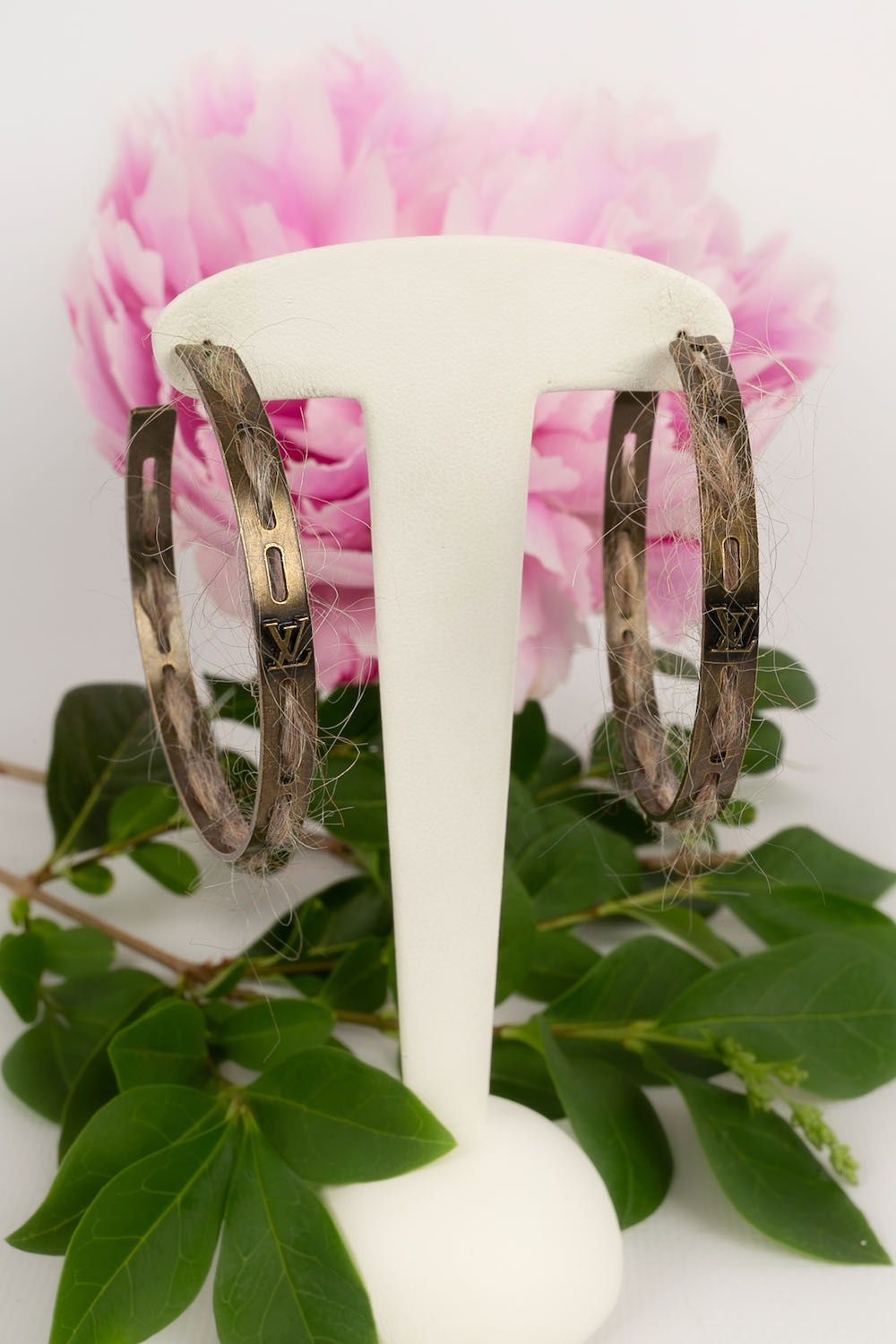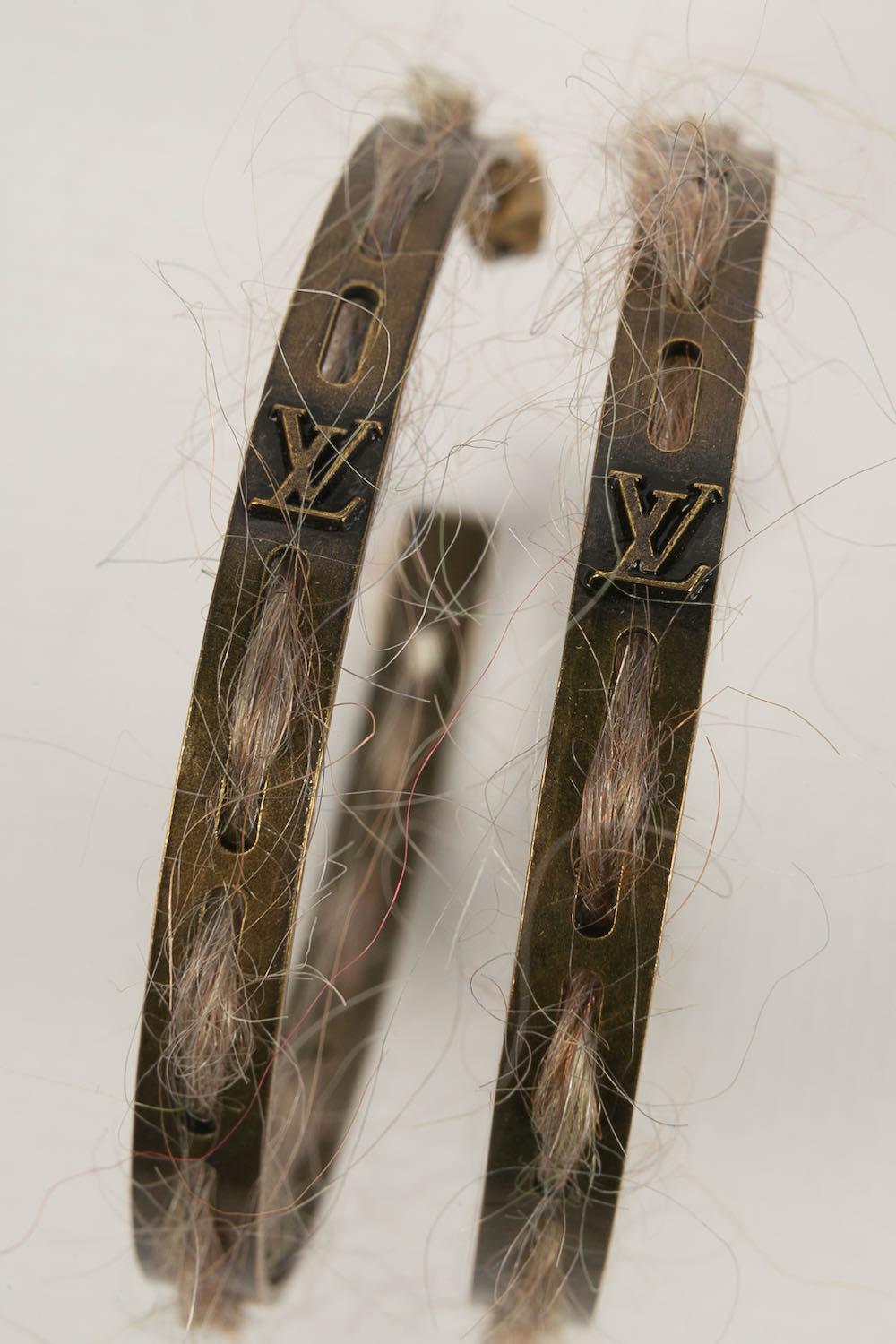 LV -Créoles en métal doré foncé entrelacées de laine.