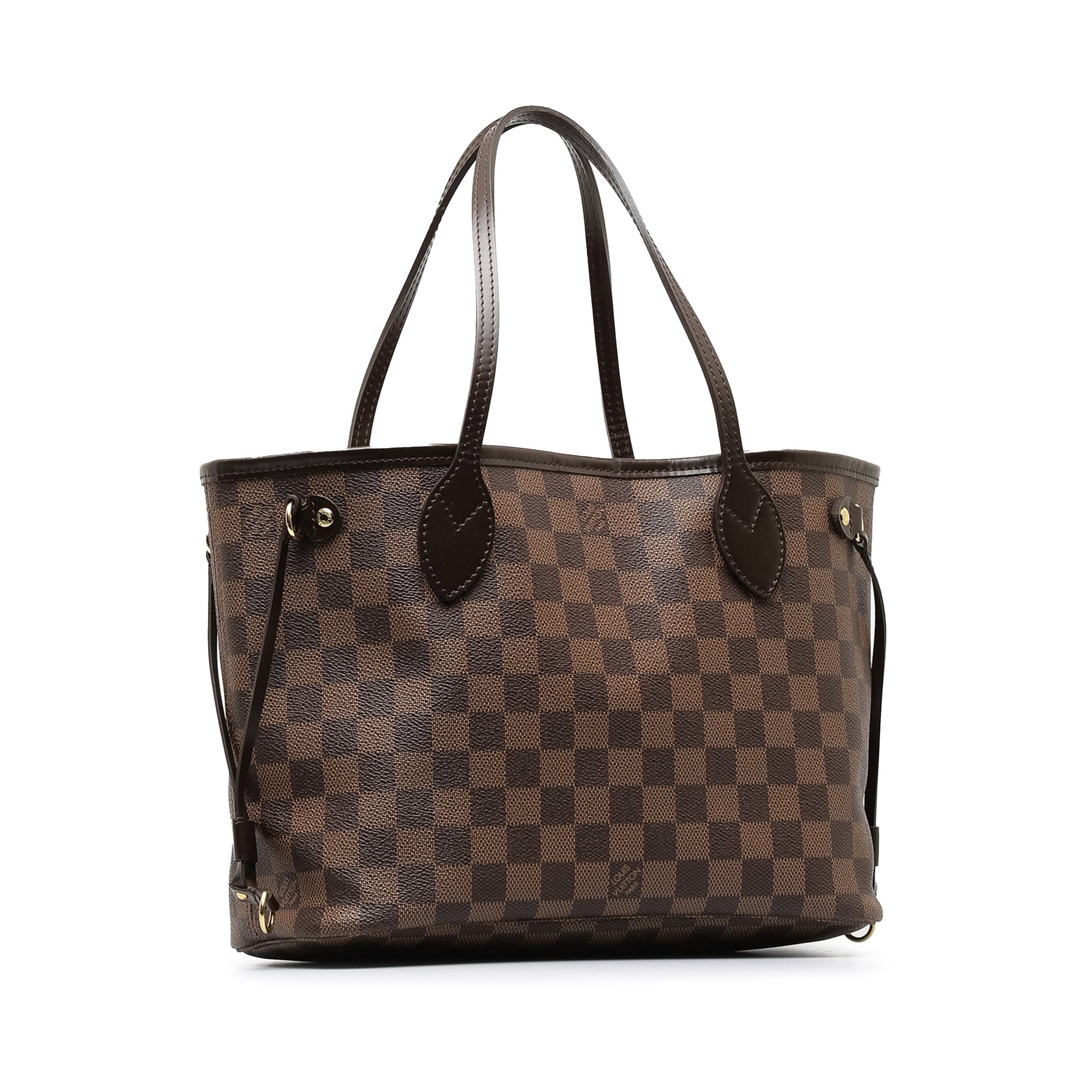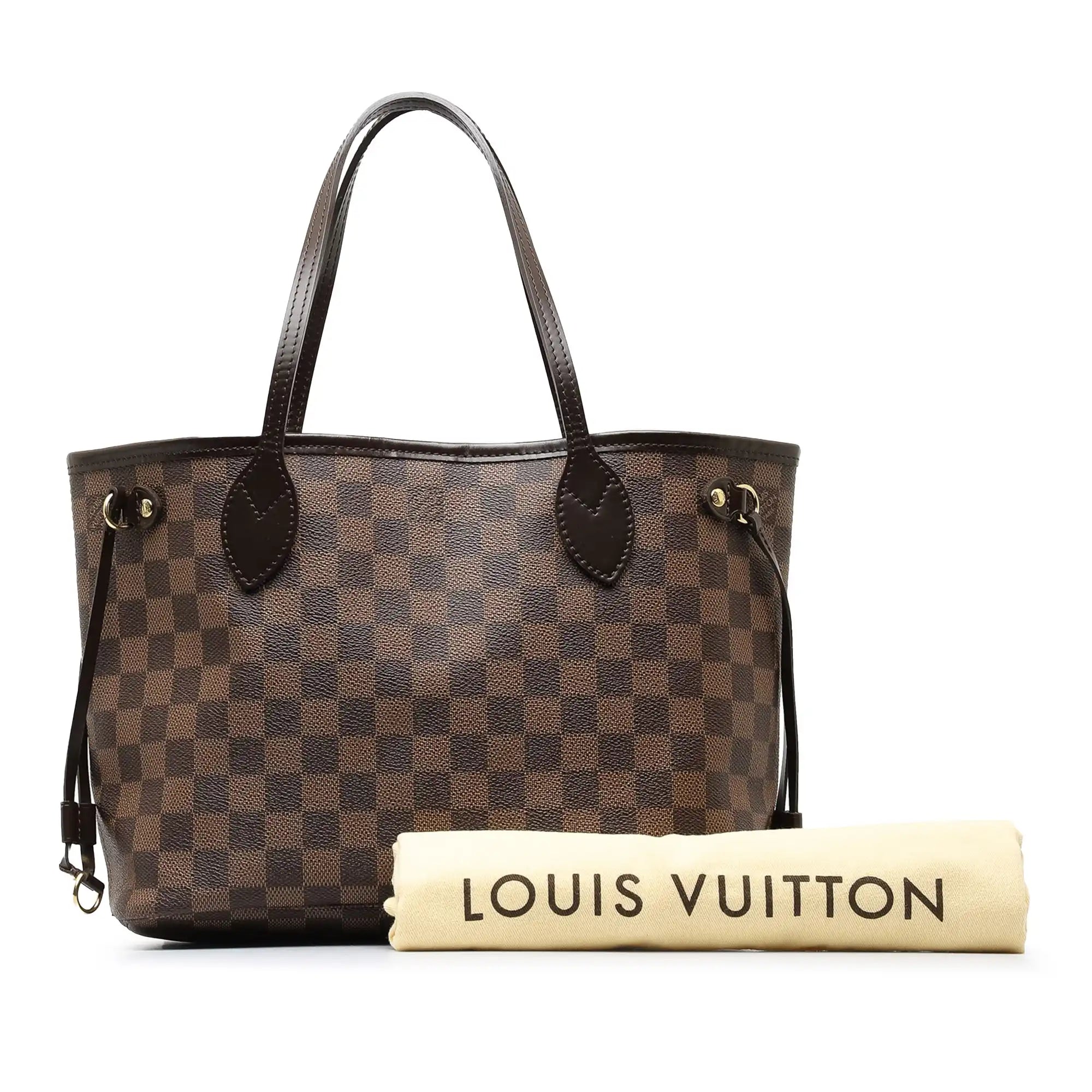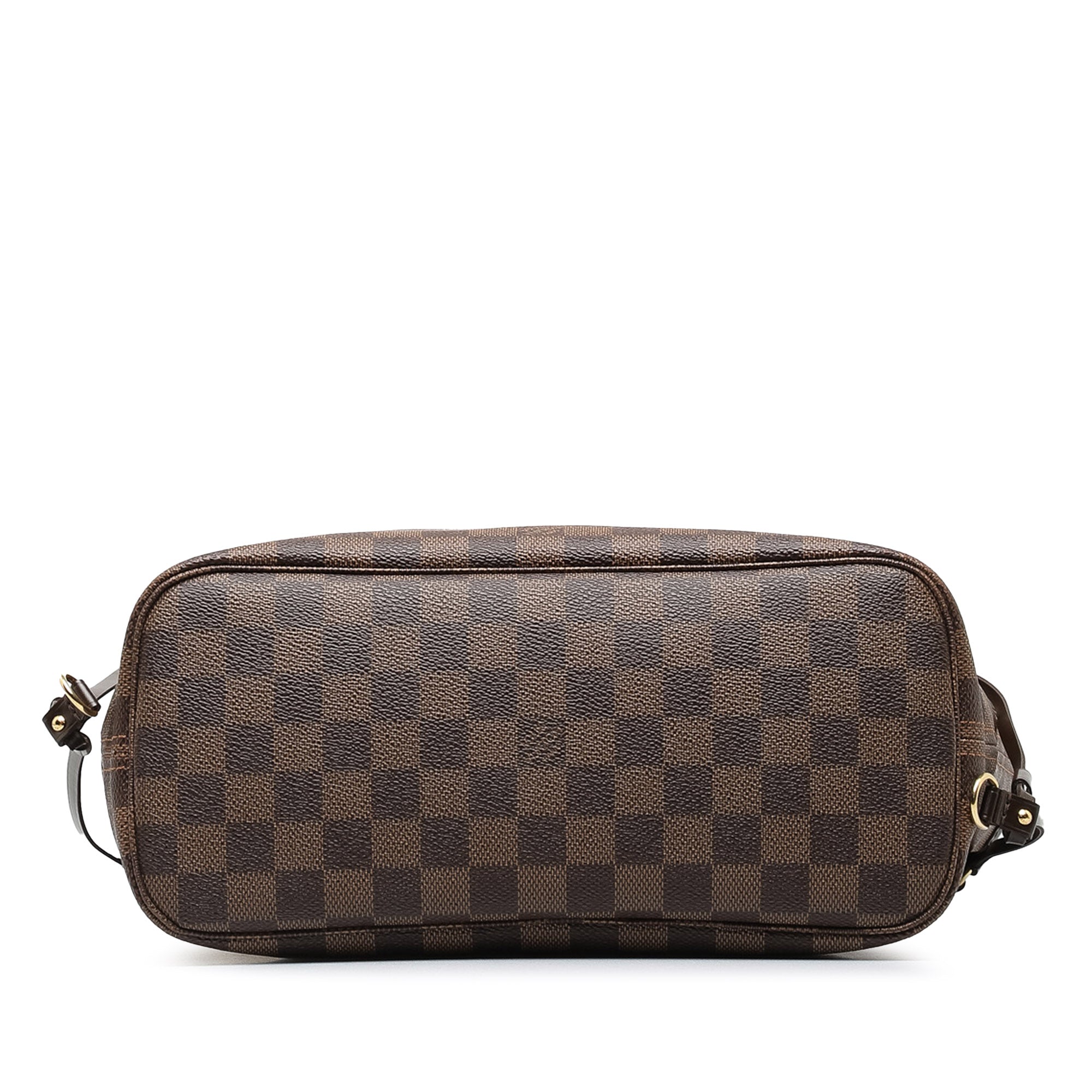 Die LV Neverfull gehört nicht umsonst zu den beliebtesten Taschen des französischen Traditionsunternehmens. Dieses Exemplar in der kleinen Grösse PM wurde aus braunem Damier Ebene Canvas gefertigt und besitzt Besätze und Riemen aus hellbraunem Vachetta Leder. Die obere Öffnung wird mit Hilfe eines Hakenverschlusses gesichert. Der Innenraum besitzt auf dem Stoff einen fresh Druck, der auch die Pariser Adresse des Hauses preisgibt. Im Innenraum verfügt die Tasche über ein Reissverschlussfach.