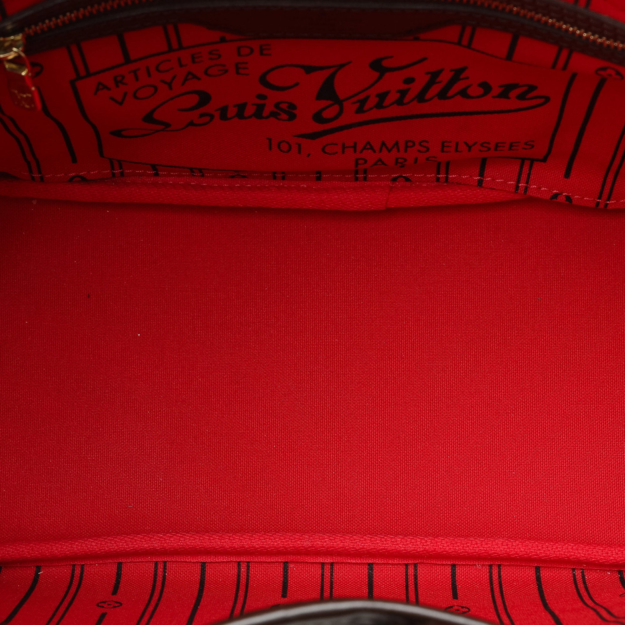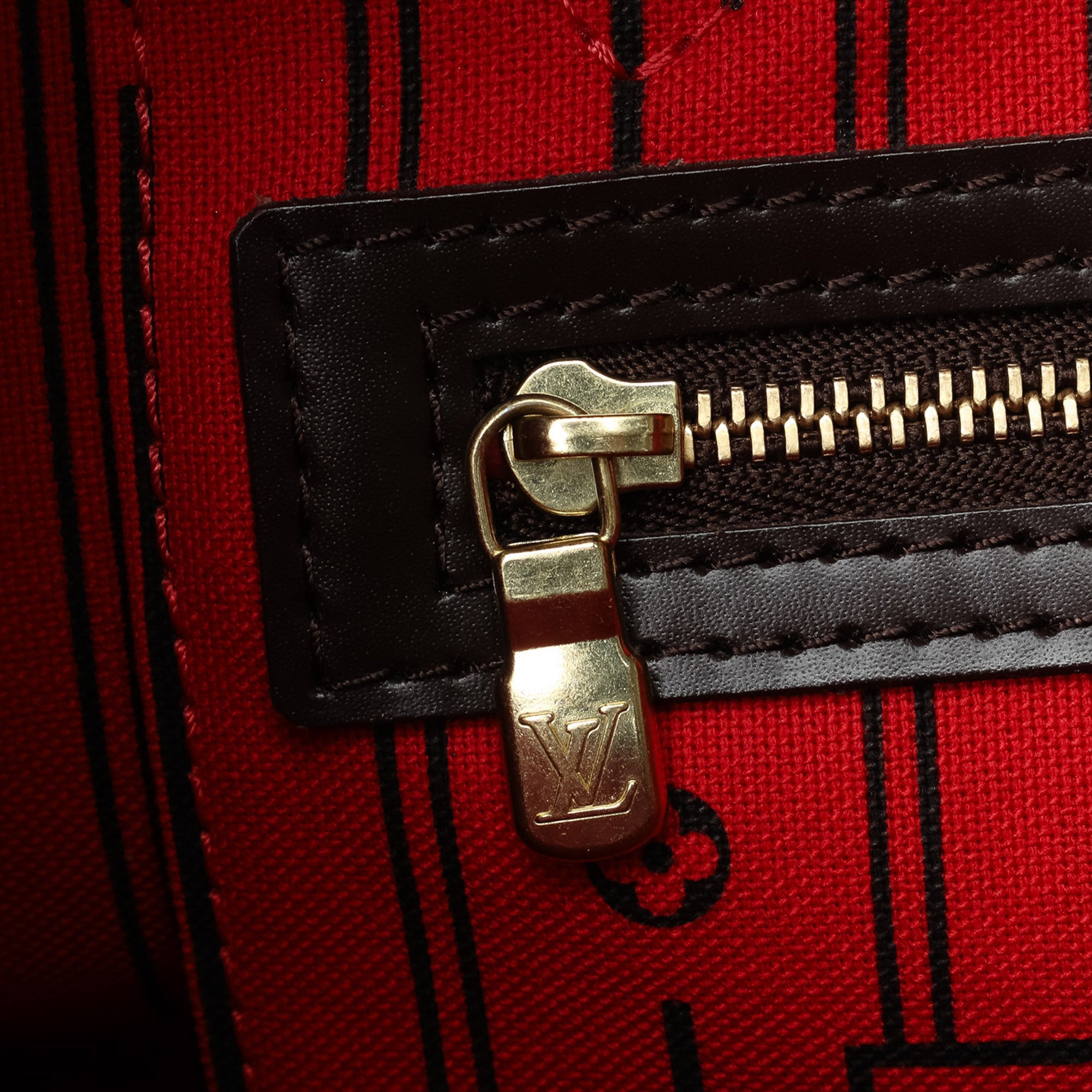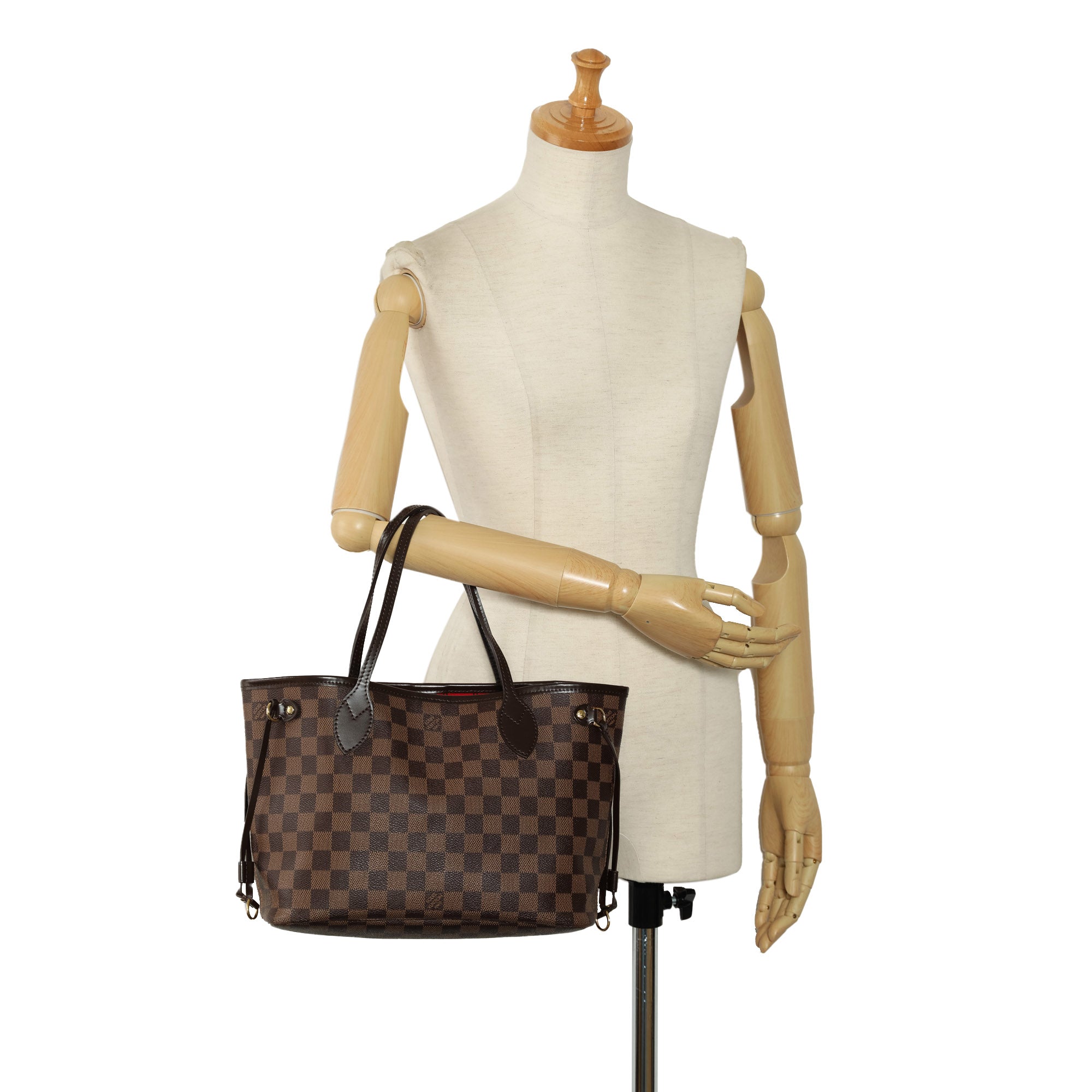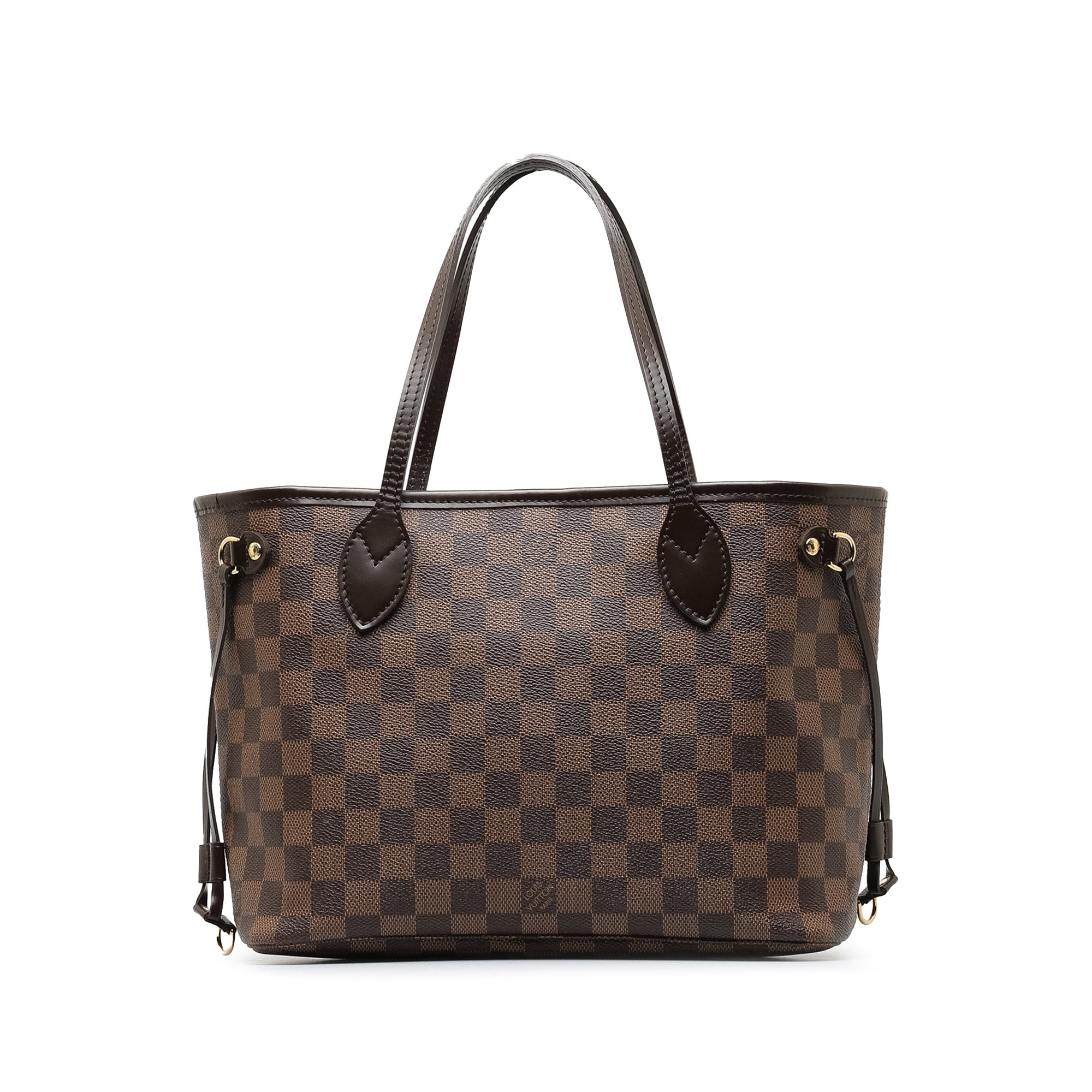 Die LV Neverfull gehört nicht umsonst zu den beliebtesten Taschen des französischen Traditionsunternehmens. Dieses Exemplar in der kleinen Grösse PM wurde aus braunem Damier Ebene Canvas gefertigt und besitzt Besätze und Riemen aus hellbraunem Vachetta Leder. Die obere Öffnung wird mit Hilfe eines Hakenverschlusses gesichert. Der Innenraum besitzt auf dem Stoff einen fresh Druck, der auch die Pariser Adresse des Hauses preisgibt. Im Innenraum verfügt die Tasche über ein Reissverschlussfach.