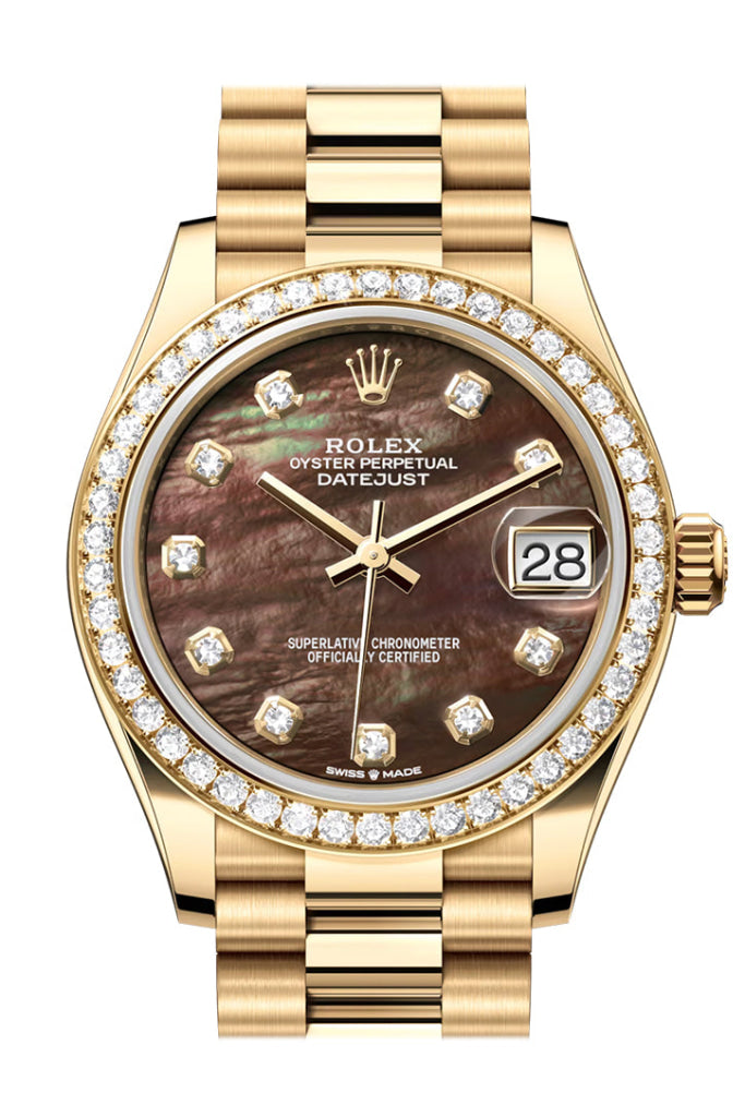 Datejust 31 Dark Mother of Pearl Diamond Dial Diamond Bezel Yellow Gold Ladies Watch 278288RBR 278288RBR-0032Datejust 31 Dark Mother of Pearl Diamond Dial Diamond Bezel Yellow Gold Ladies Watch 278288RBR 278288RBR-0032