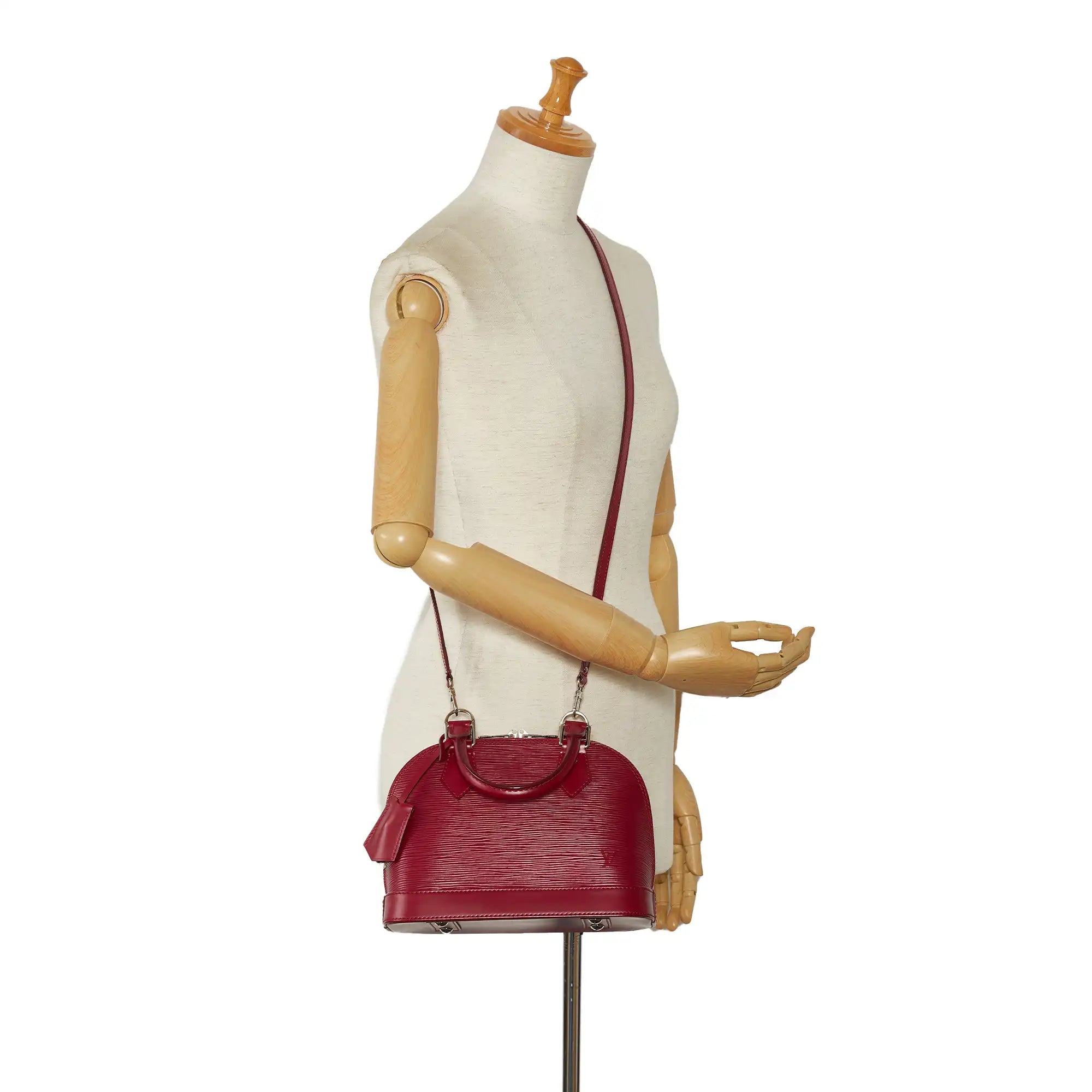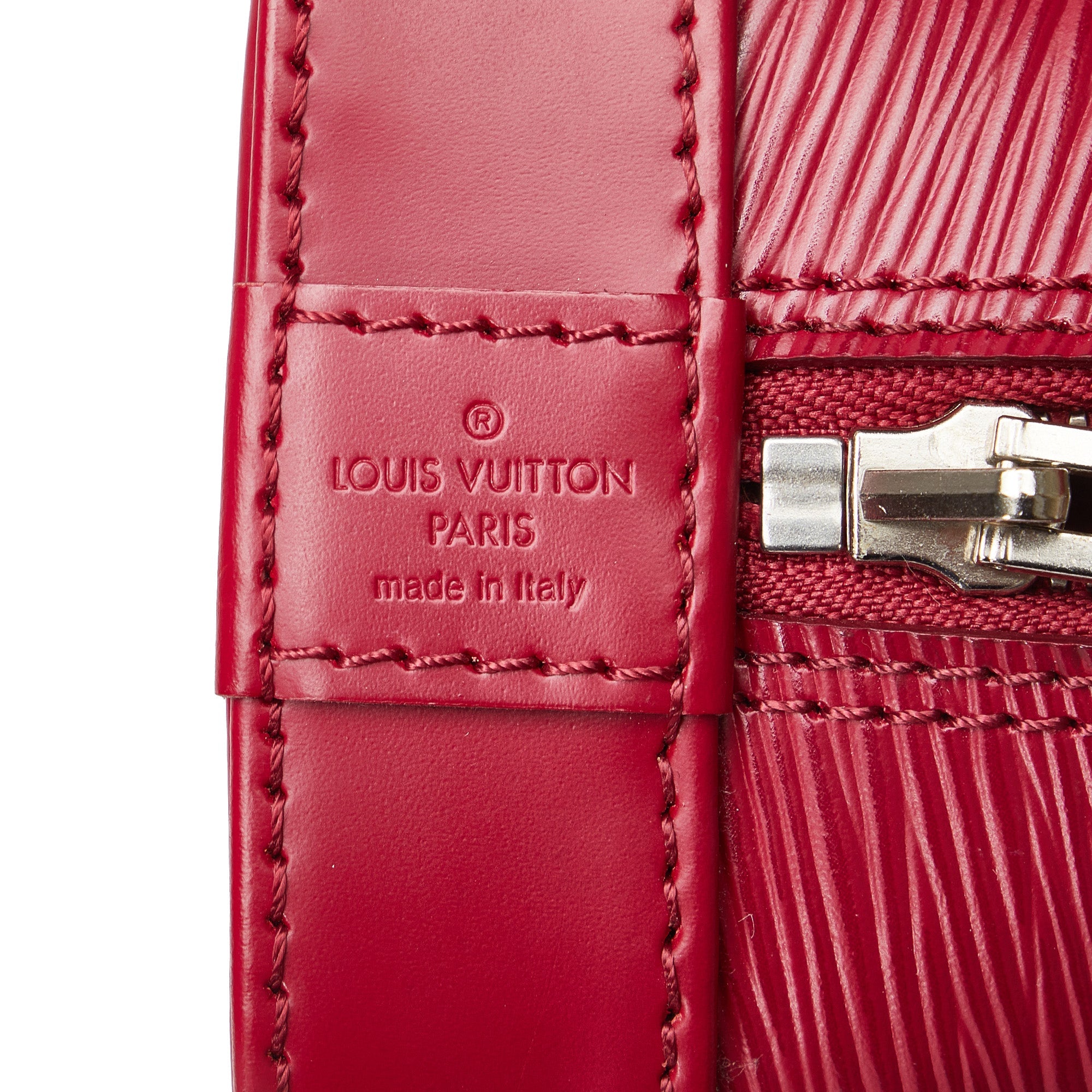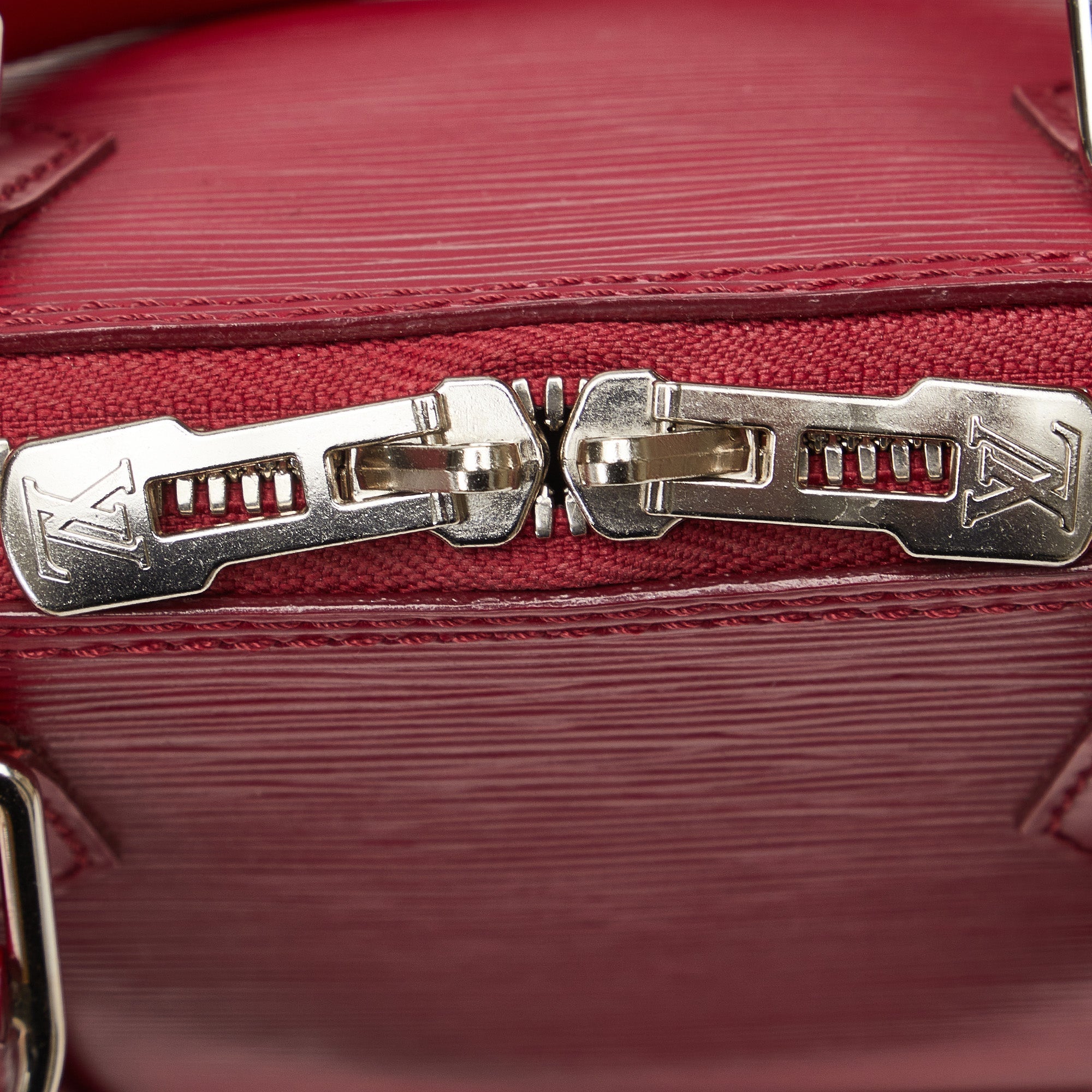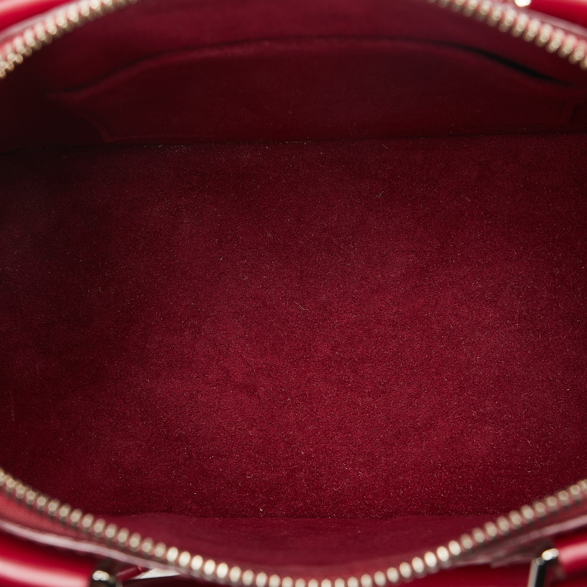 This absolutely irresistible LV Alma in the small BB version is made of fiery red, finely textured Epi leather with silver details. A silver, double zipper shines at the top opening. This can also be secured with a small padlock and a key. Inside the Bag there is an open slip pocket.