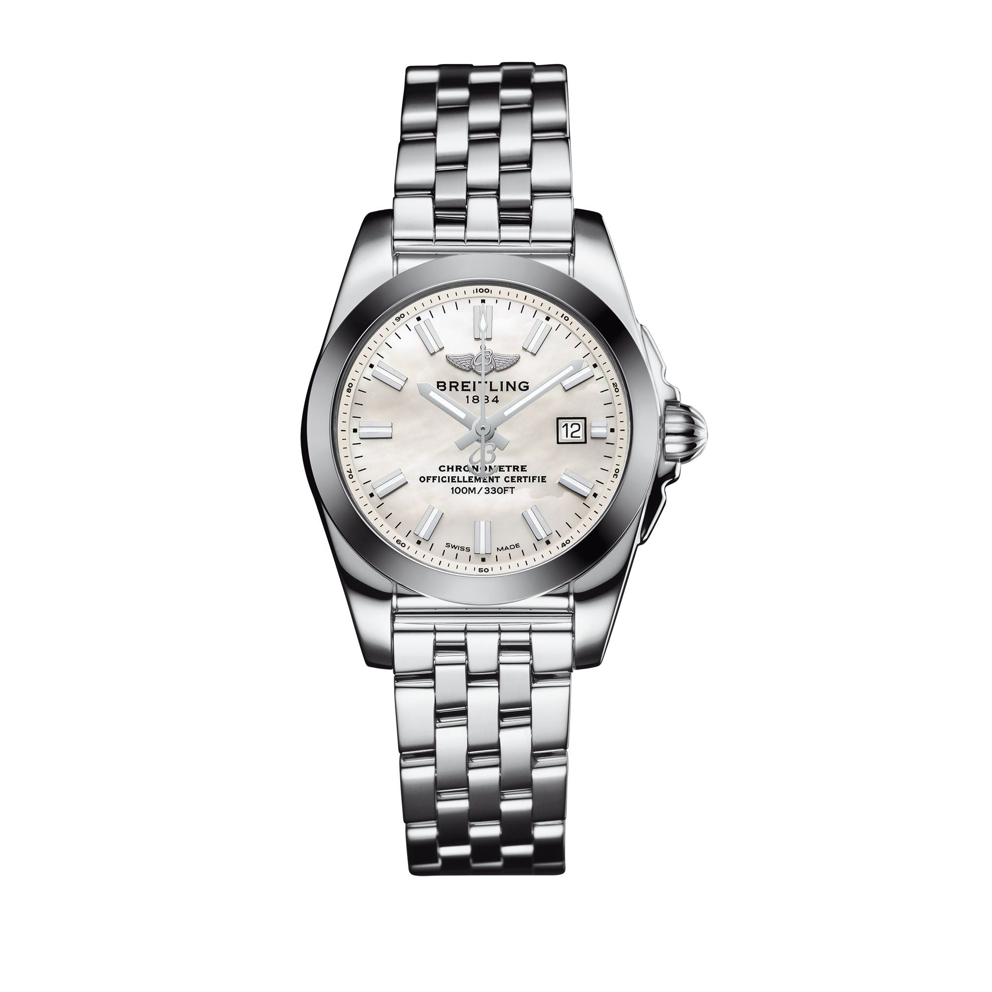 Created for women whose vision of elegance is inseparable from performance, the Galactic 29 is distinguished by its clean, crisp design, along with refined details such as mother-of-pearl dials, gemset bezels, diamond hour-markers or rose gold versions. Water-resistant to 100 m (330 ft), a rare feat for a ladies’ watch, the case is topped on some steel models with a tungsten carbide bezel. The officially chronometer-certified SuperQuartz™ movement achieves a degree of precision ten times greater than standard quartz. A Breitling ticking to women’s time.