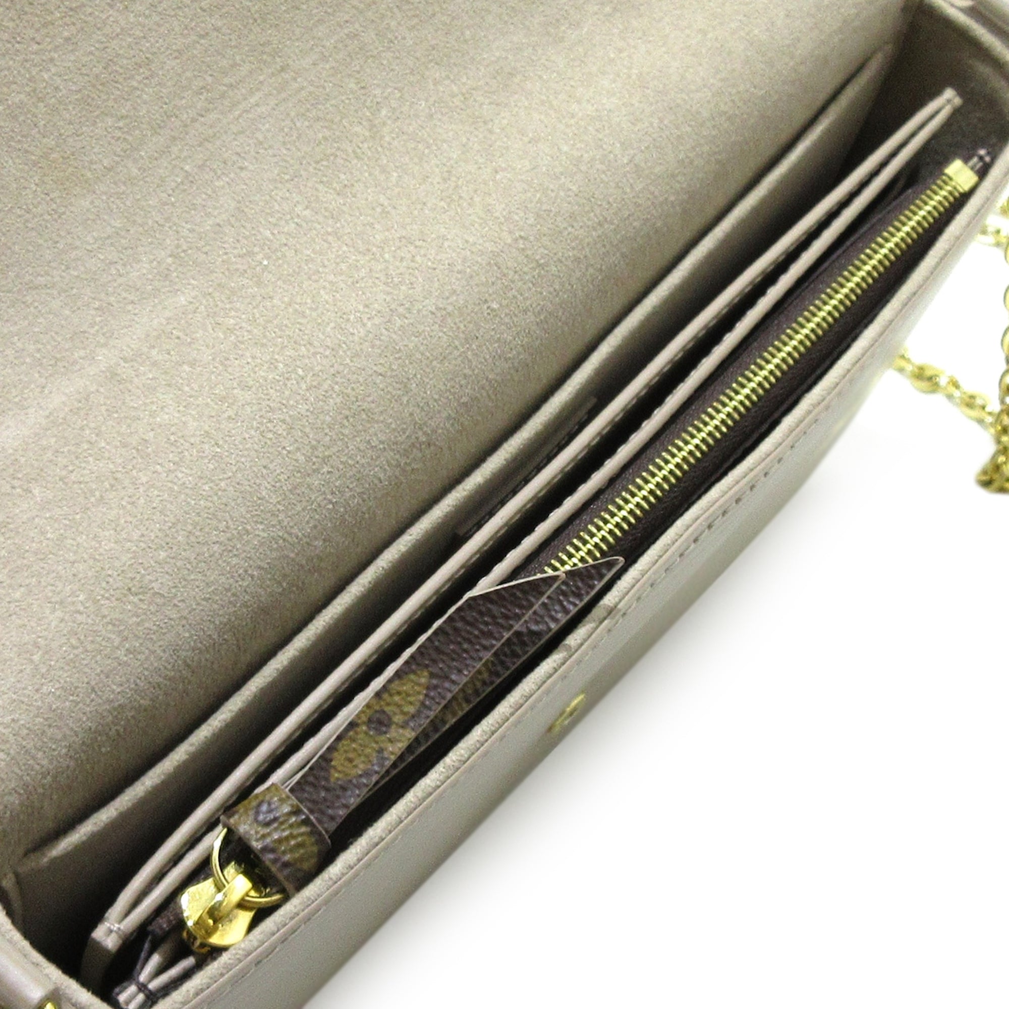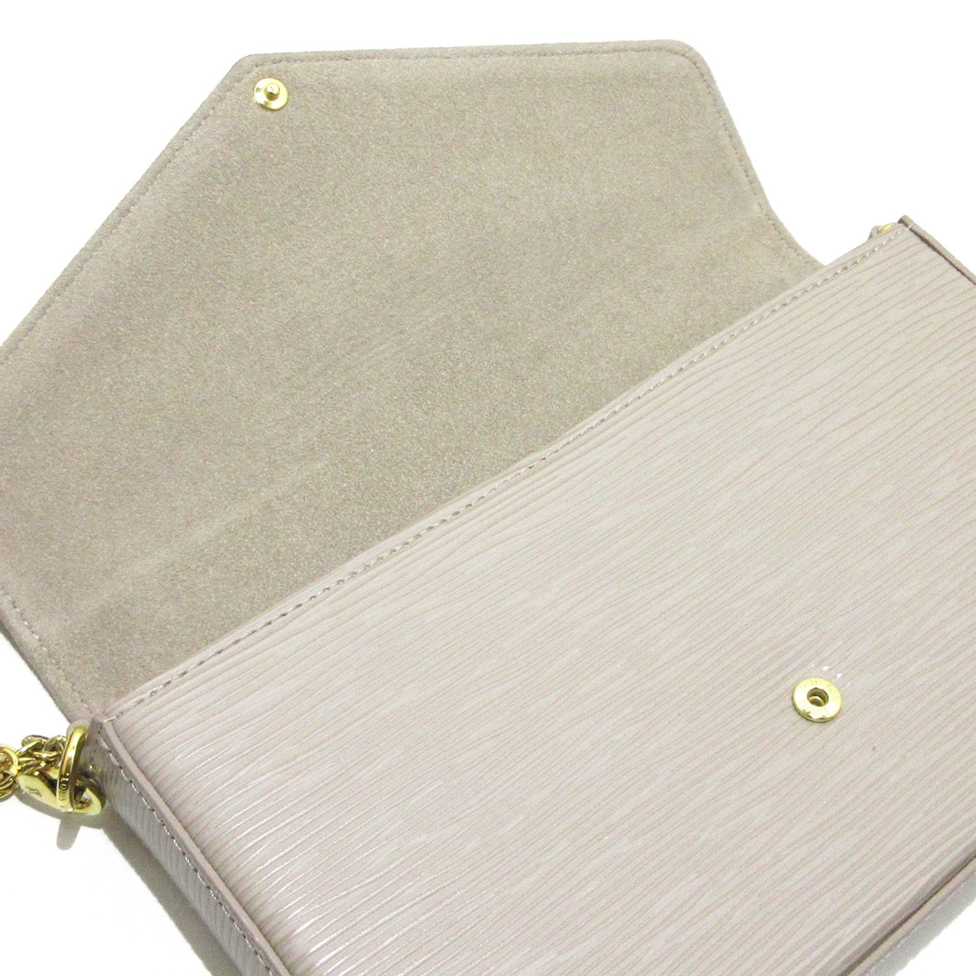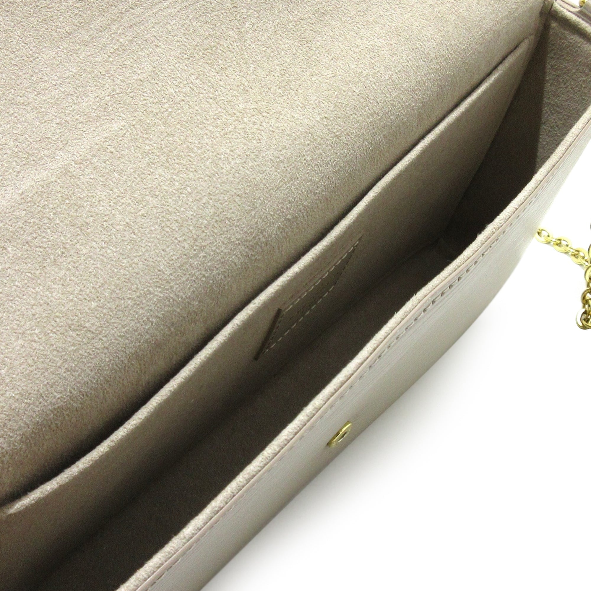 Product Details: Gray LV Epi Pochette Felicie Crossbody Bag. The Pochette Felicie features an epi leather body, a detachable gold-tone chain shoulder strap, a top flap with a snap button closure, and an interior slip pocket. 4.7″ L x 8.7″ W x 1.2″ D.