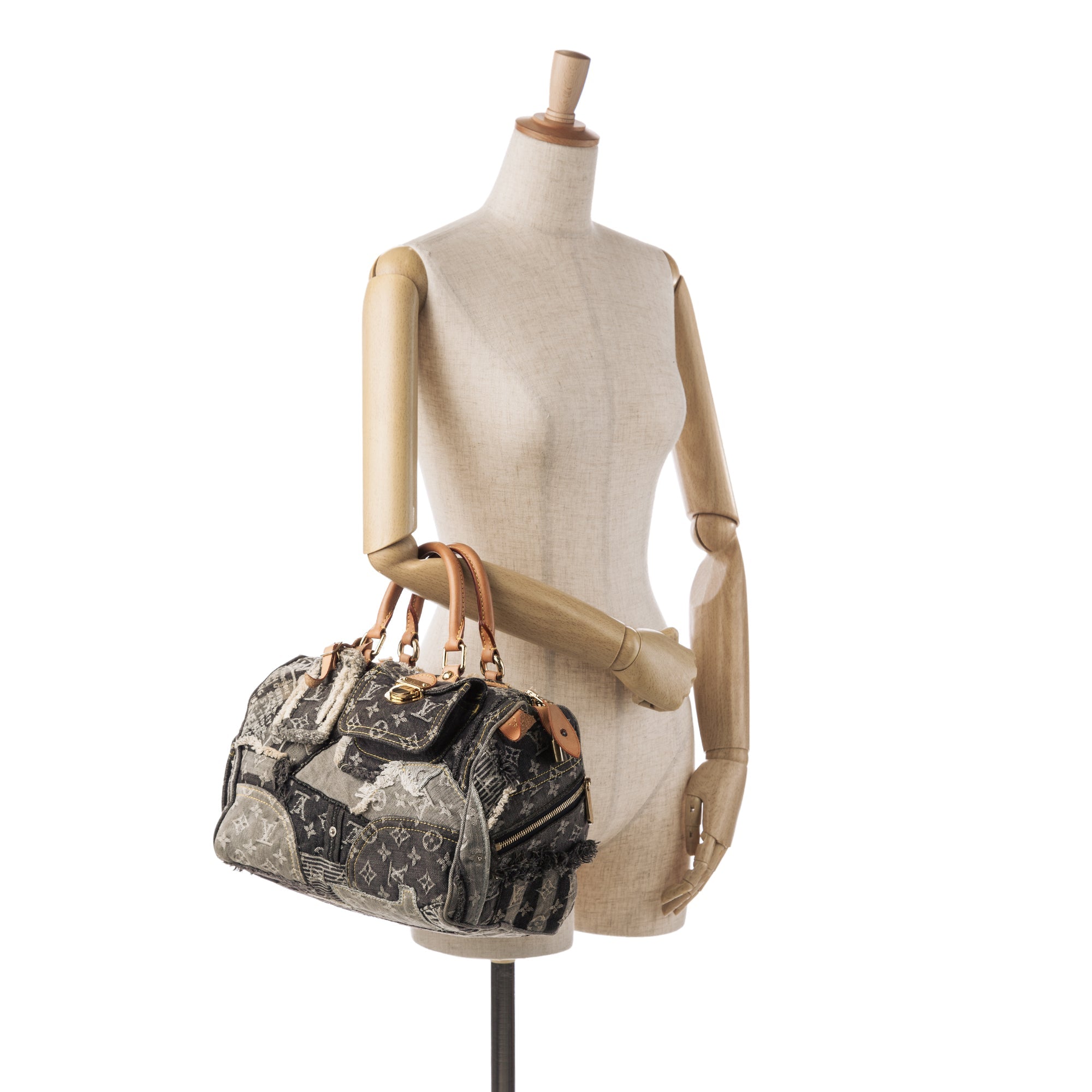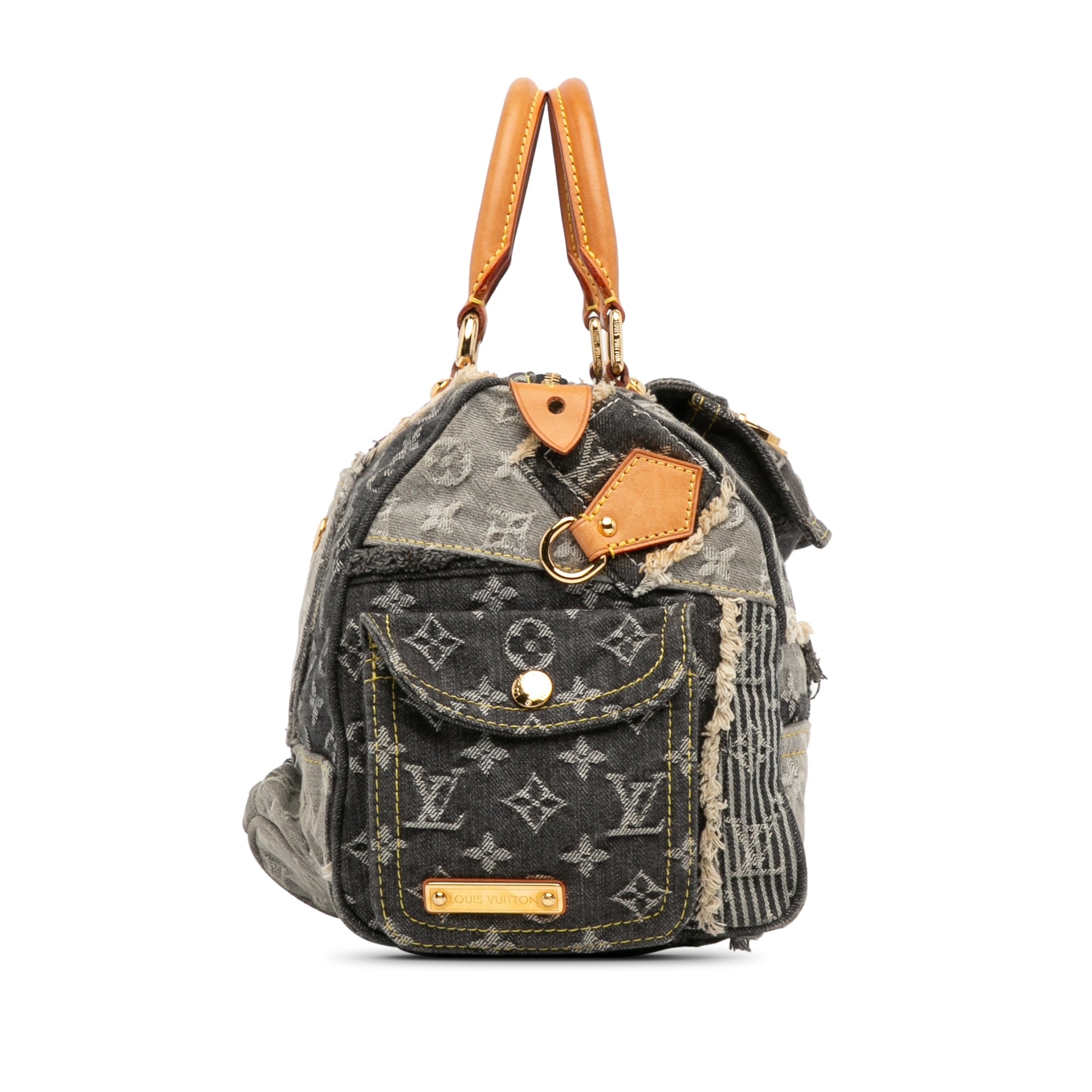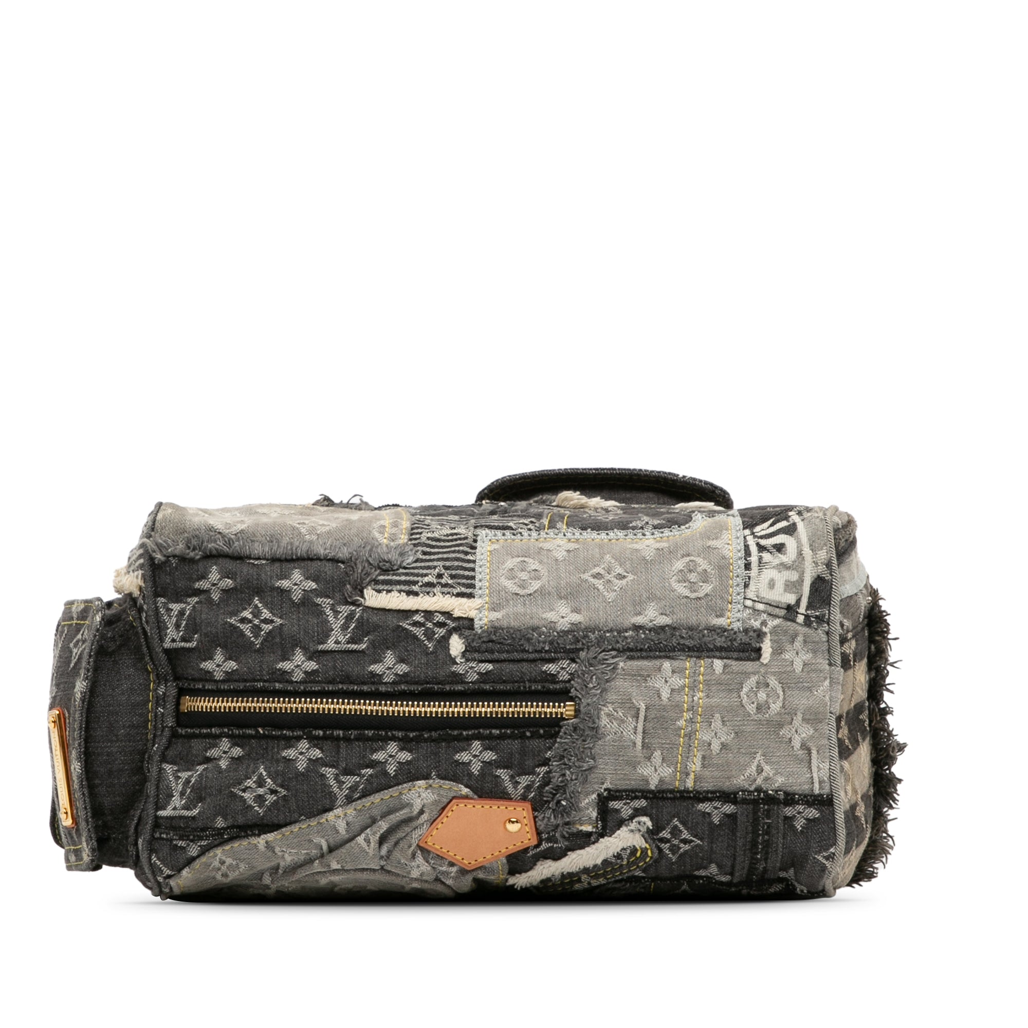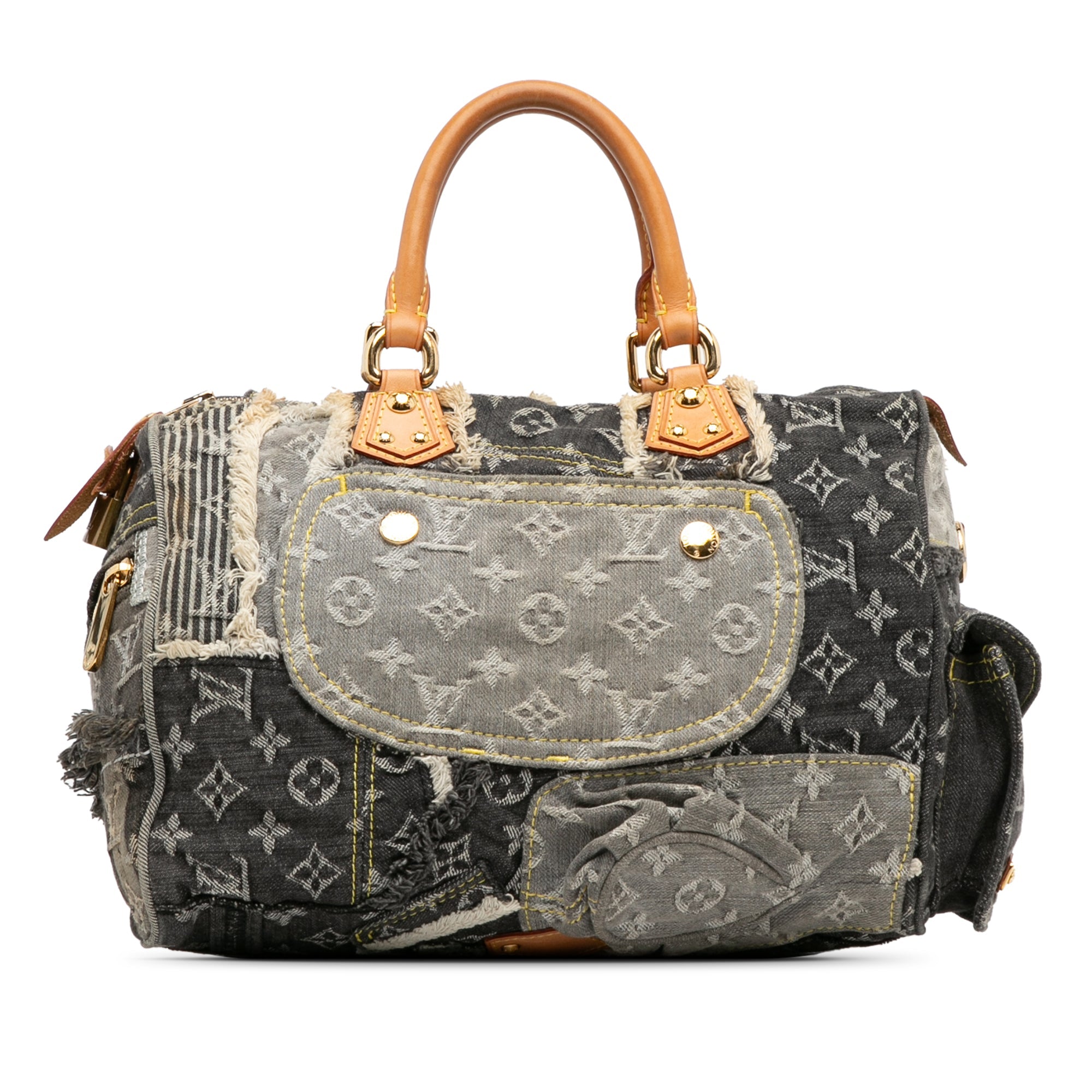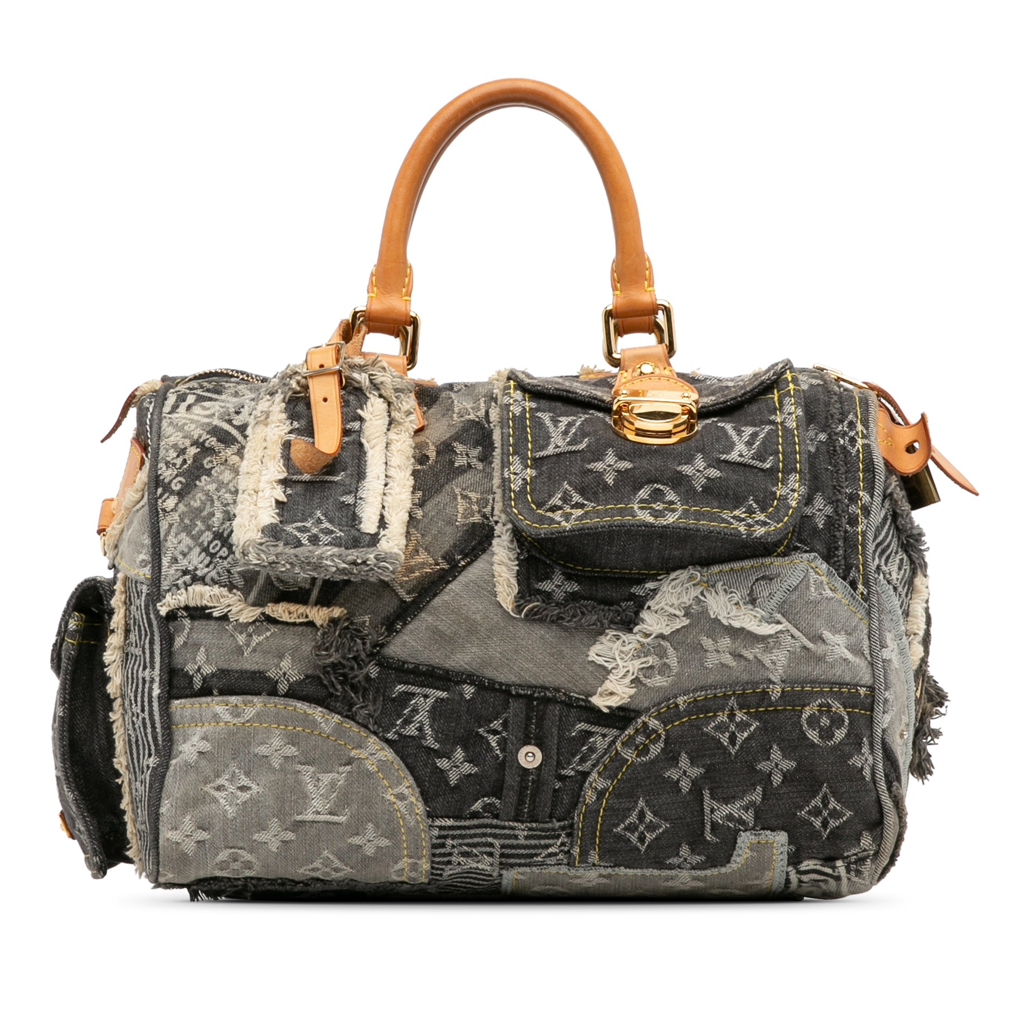 Gray LV Monogram Denim Patchwork Speedy 30 Boston Bag
