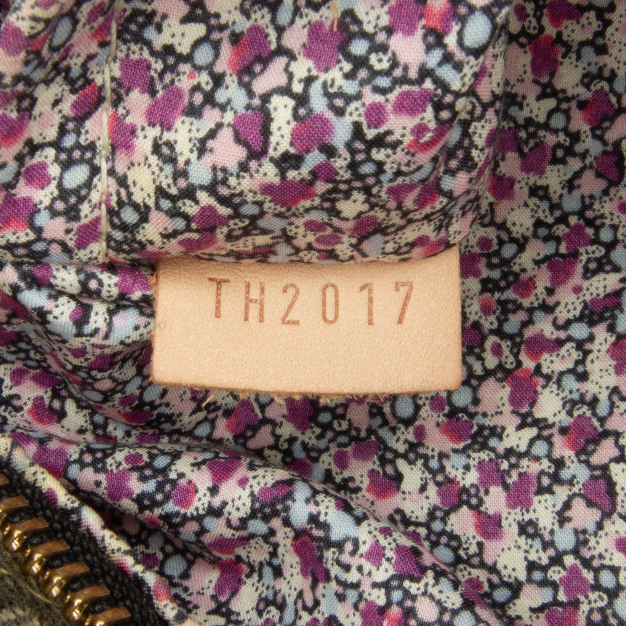 Product Details: Gray LV Monogram Denim Patchwork Speedy 30 Boston Bag. The Patchwork Speedy 30 features a denim body, rolled leather top handles, a top zip closure, exterior zip and flap pockets, and interior slip pockets. 8.3″ L x 11.4″ W x 6.7″ D, 4.3″ drop. Serial number TH 2017.