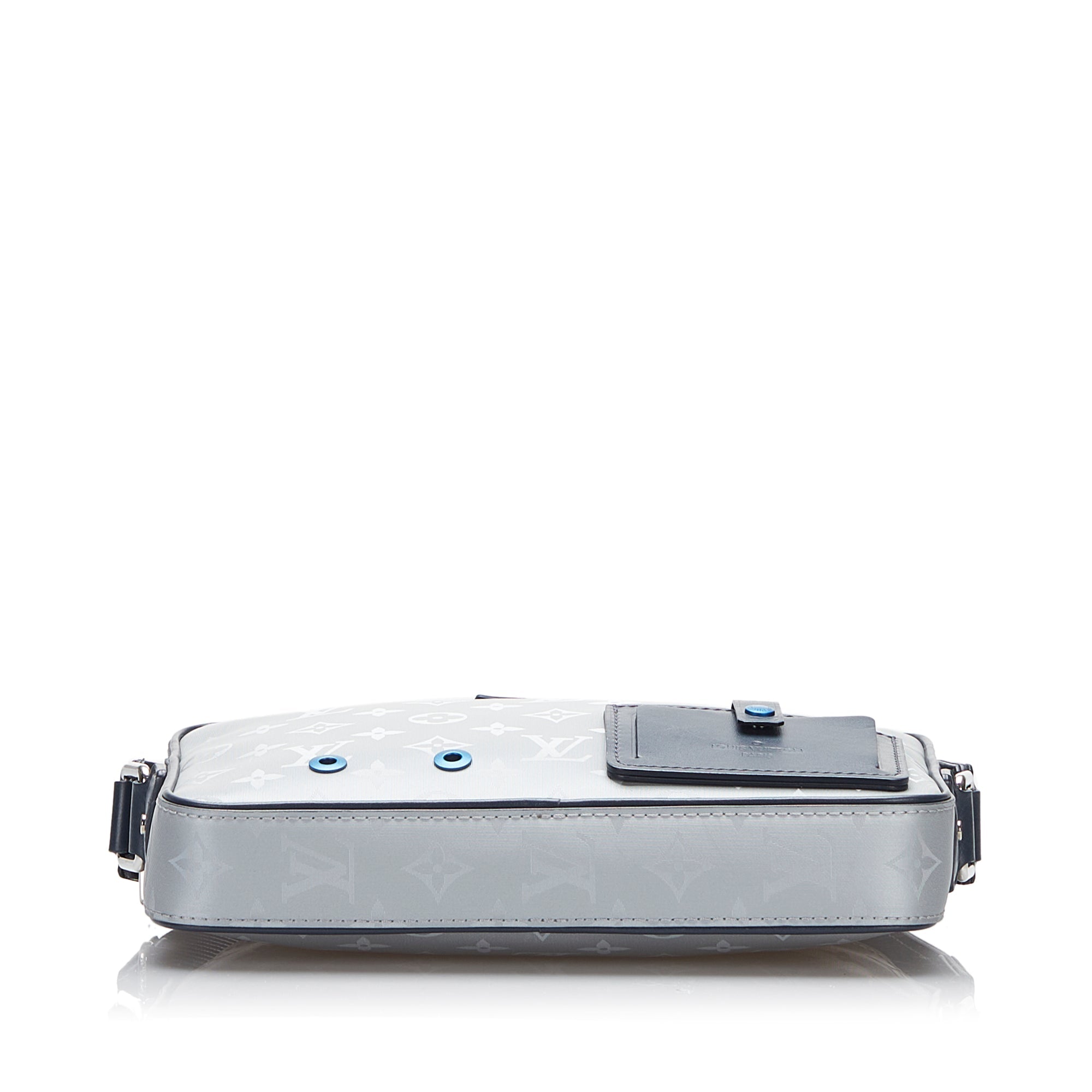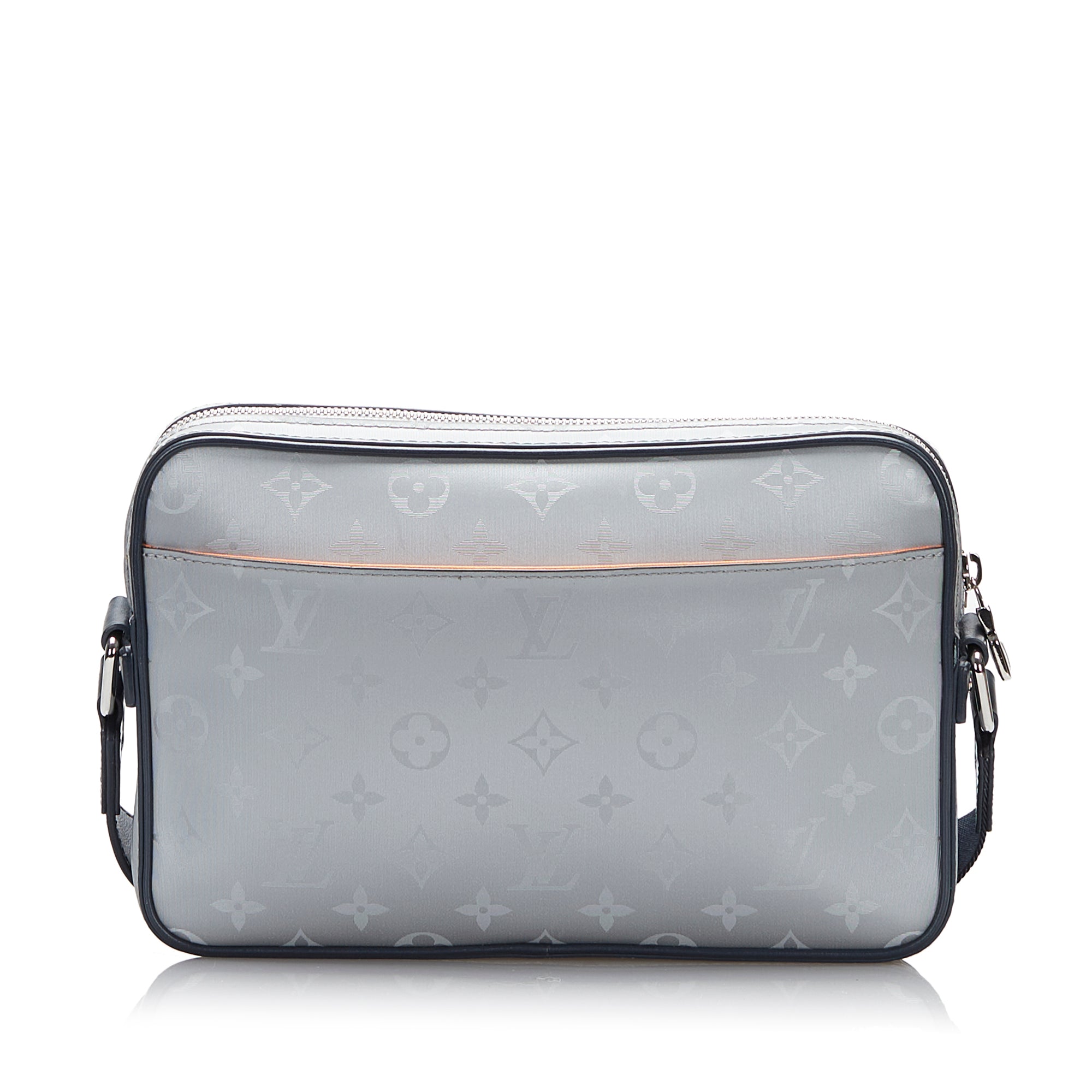 Product Details: Gray LV Monogram Satellite Alpha Messenger Crossbody Bag. The Satellite Alpha Messenger features a monogram canvas body, an adjustable flat shoulder strap, a top zip closure, exterior pockets, and interior slip pockets. 6.7″ L x 10.2″ W x 1.6″ D. Serial number CA4158.