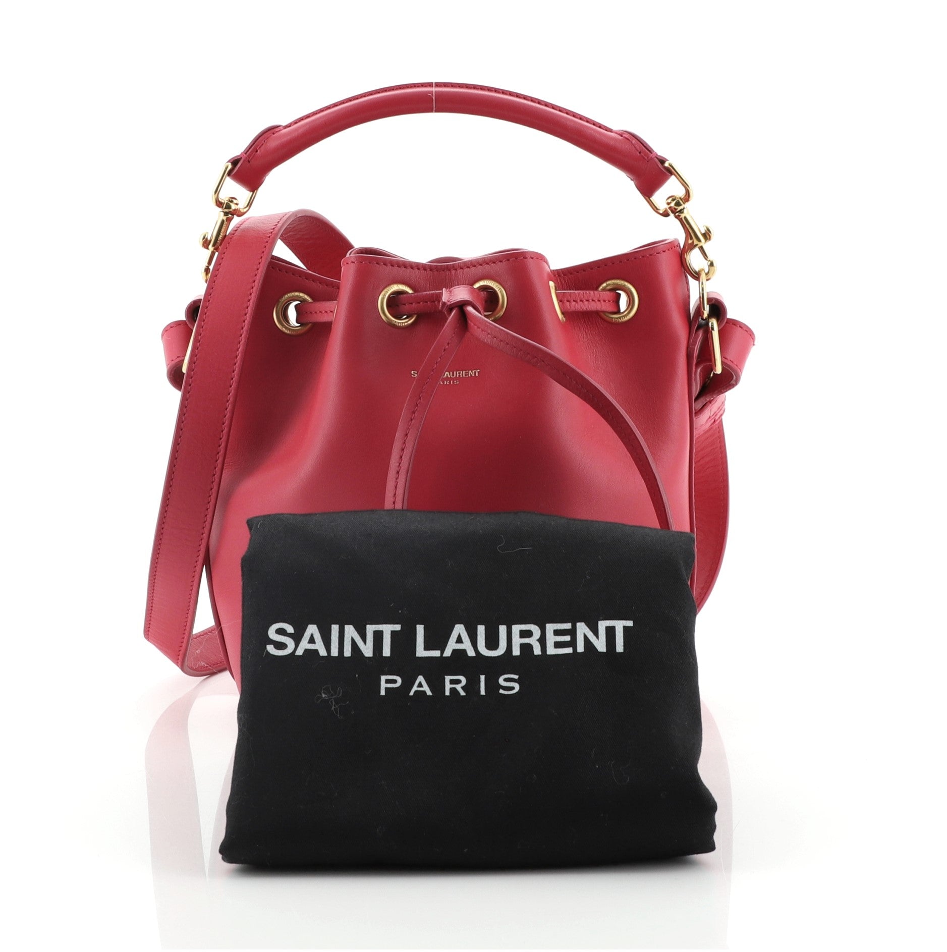 Condition: Very good. Creasing and moderate scuffs on exterior, minor wear on base corners and in interior. Cracking on drawstring and strap wax edges, scratches and discoloration on hardware.