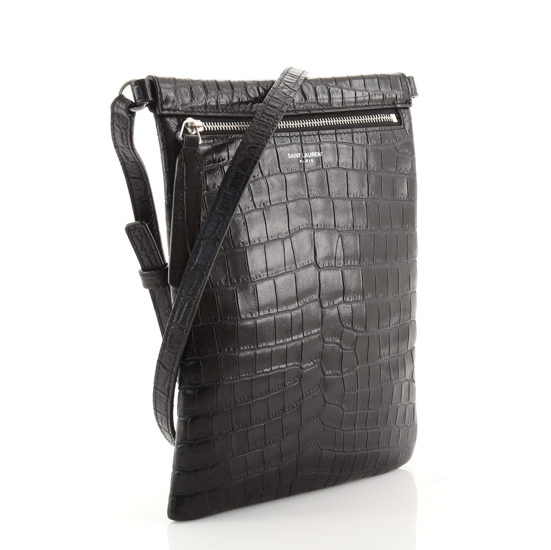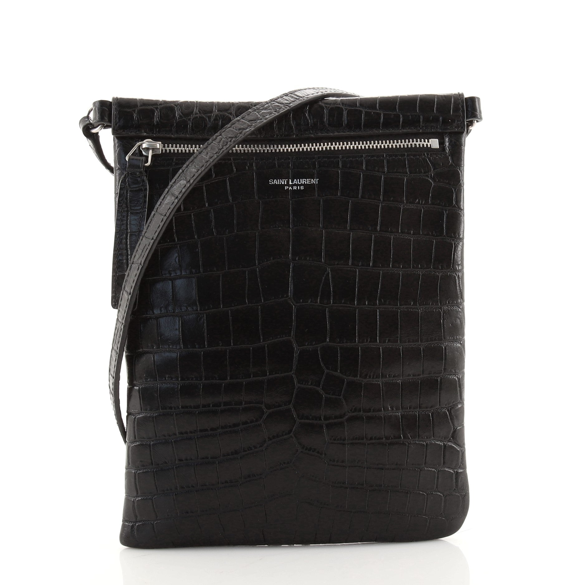 Front Pocket Flat Crossbody Bag Crocodile Embossed Leather SmallFront Pocket Flat Crossbody Bag Crocodile Embossed Leather Small