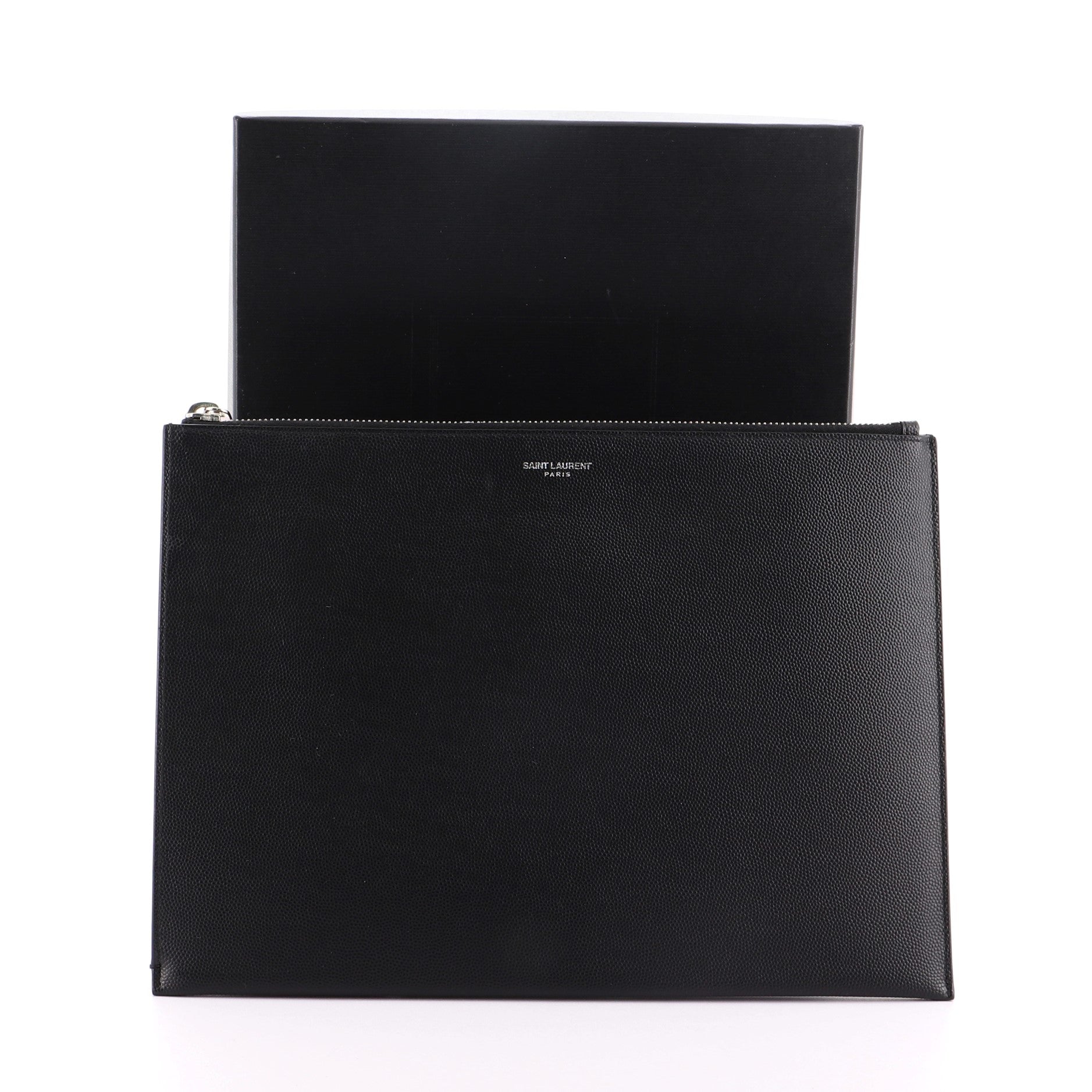 Condition: Very good. Light wear on base and opening corners, wear and small marks in interior. Moderate stains in interior pocket, scratches on hardware.