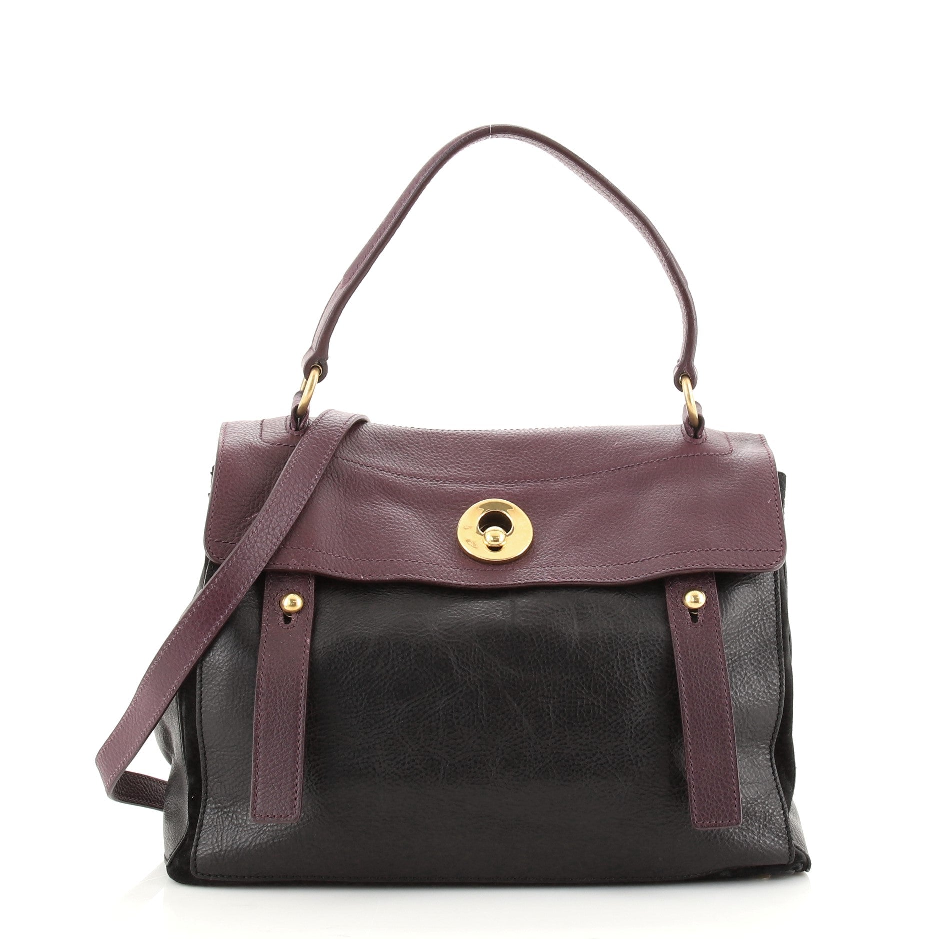 Condition: Fair. Odor in interior. Creasing, moderate wear and scuffs on exterior, handle and strap, heavy wear on exterior suede trims, cracking and splitting on rear pocket, flap, closure trim and handle wax edges. Loss of shape on handle, wear in interior, scratches, discoloration and tarnish on hardware.