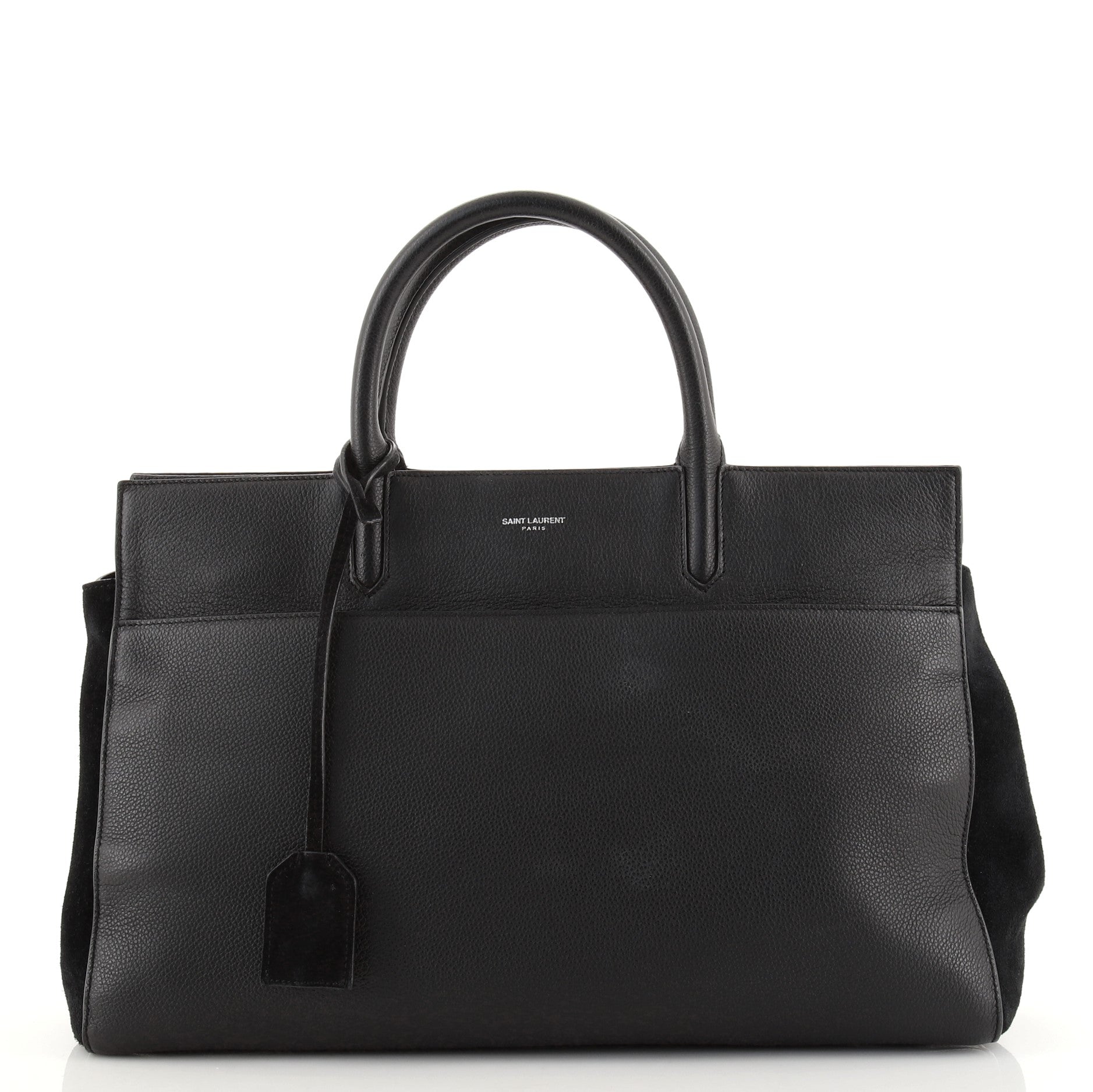 Condition: Good. Loose thread on opening rear corner, creasing near base, moderate splitting and peeling on handle wax edges. Minor cracking on side opening wax edges, heavy wear on sides and in interior, marks in interior, scratches on hardware.