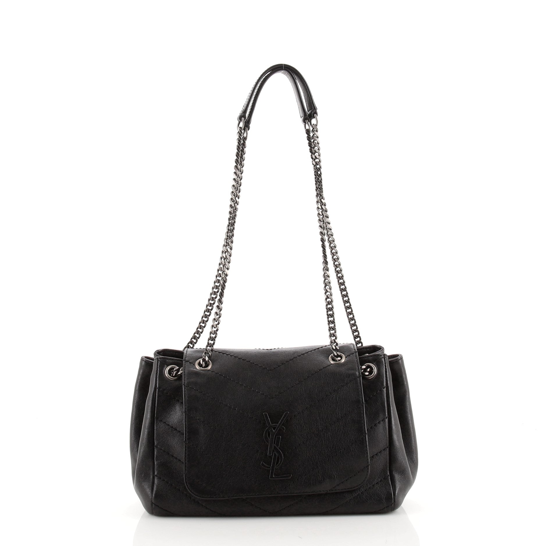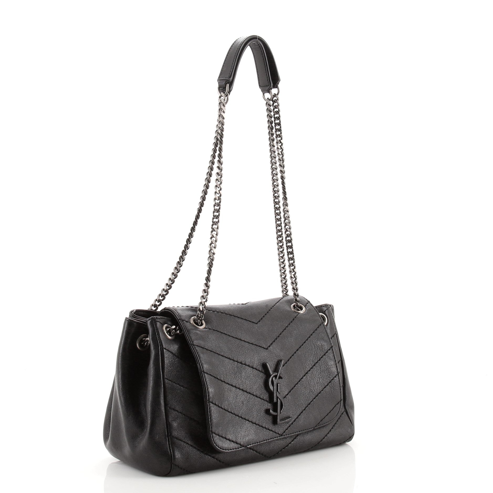 Condition: Very good. Creasing and scuffs on exterior and underneath flap, moderate discoloration and wear on exterior corners. Minor discoloration and wear in interior, scratches on hardware.