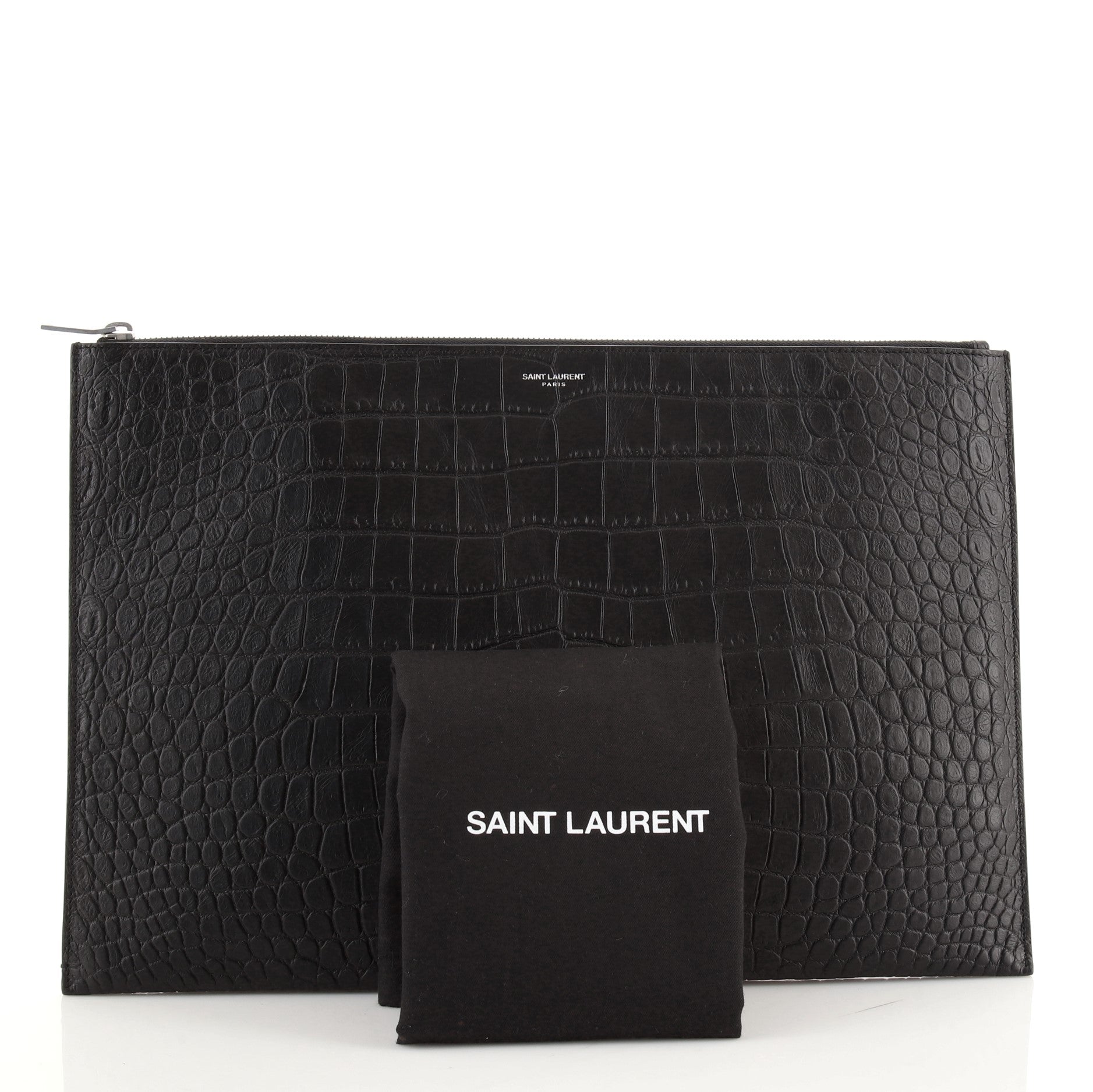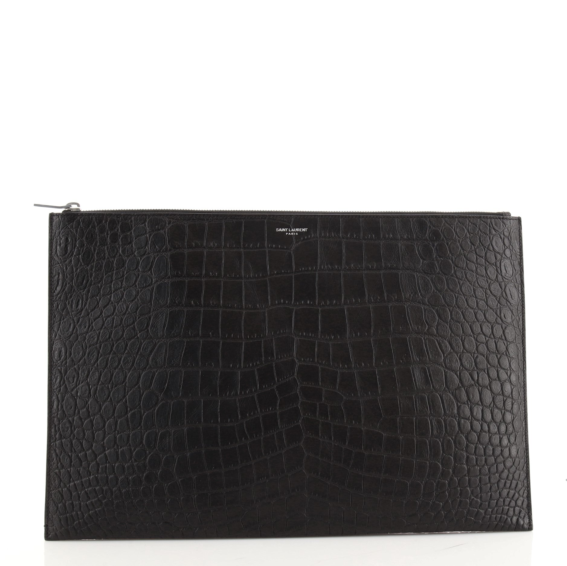 Model: Zip Pouch Crocodile Embossed Leather Large