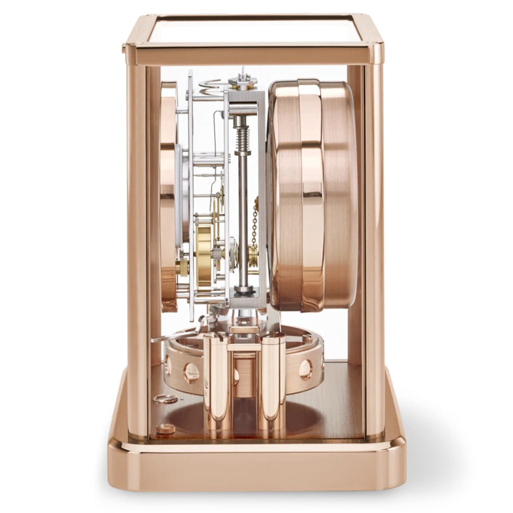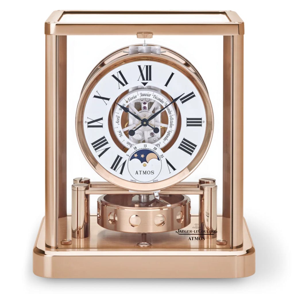 The time, months and moon phases pass by slowly on its timelessly elegant dial. The Atmos Classique Phases de Lune clock in its pink gold-plated cabinet is a beautiful object which lends a touch of soul to any room.