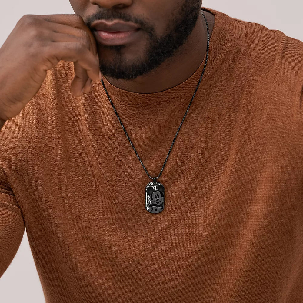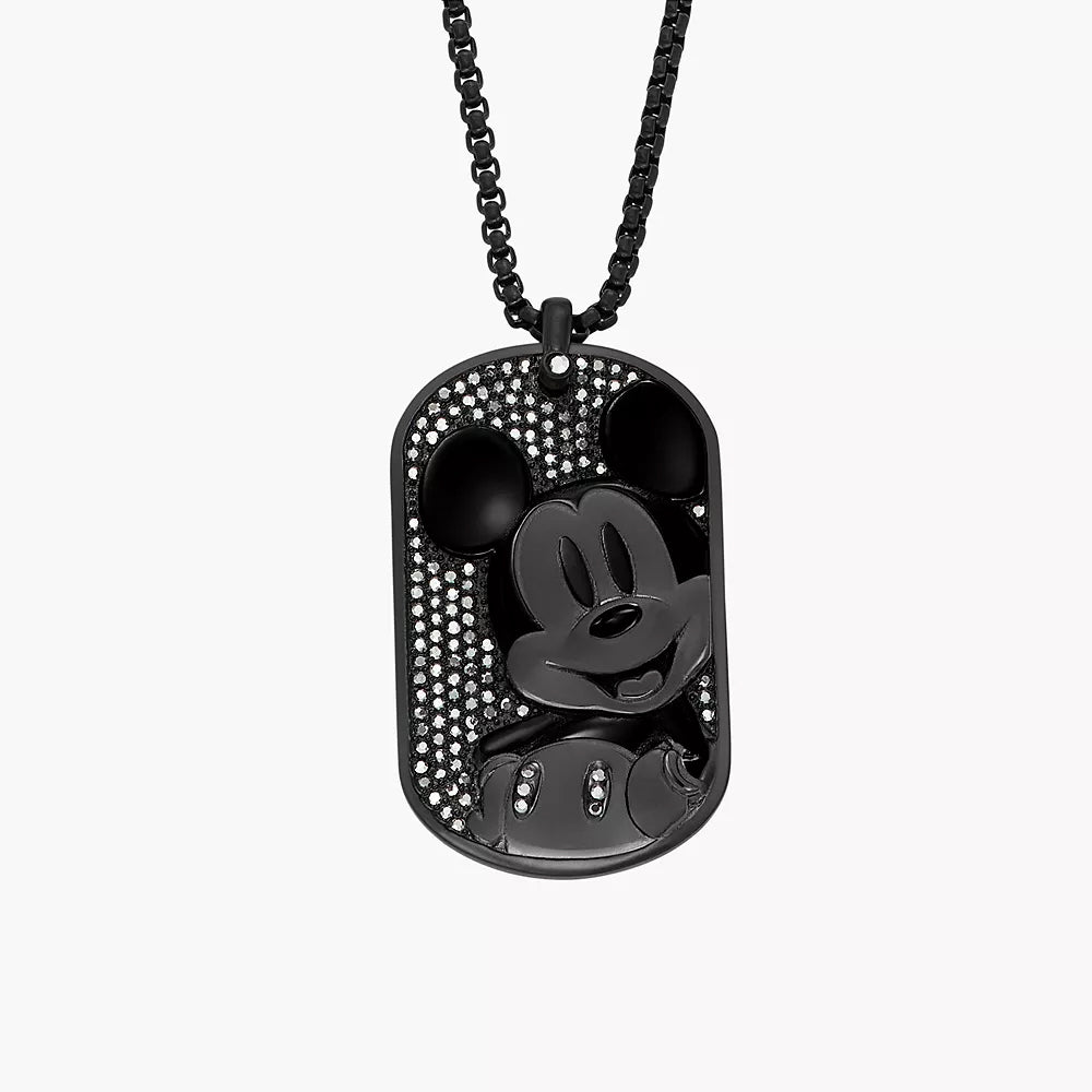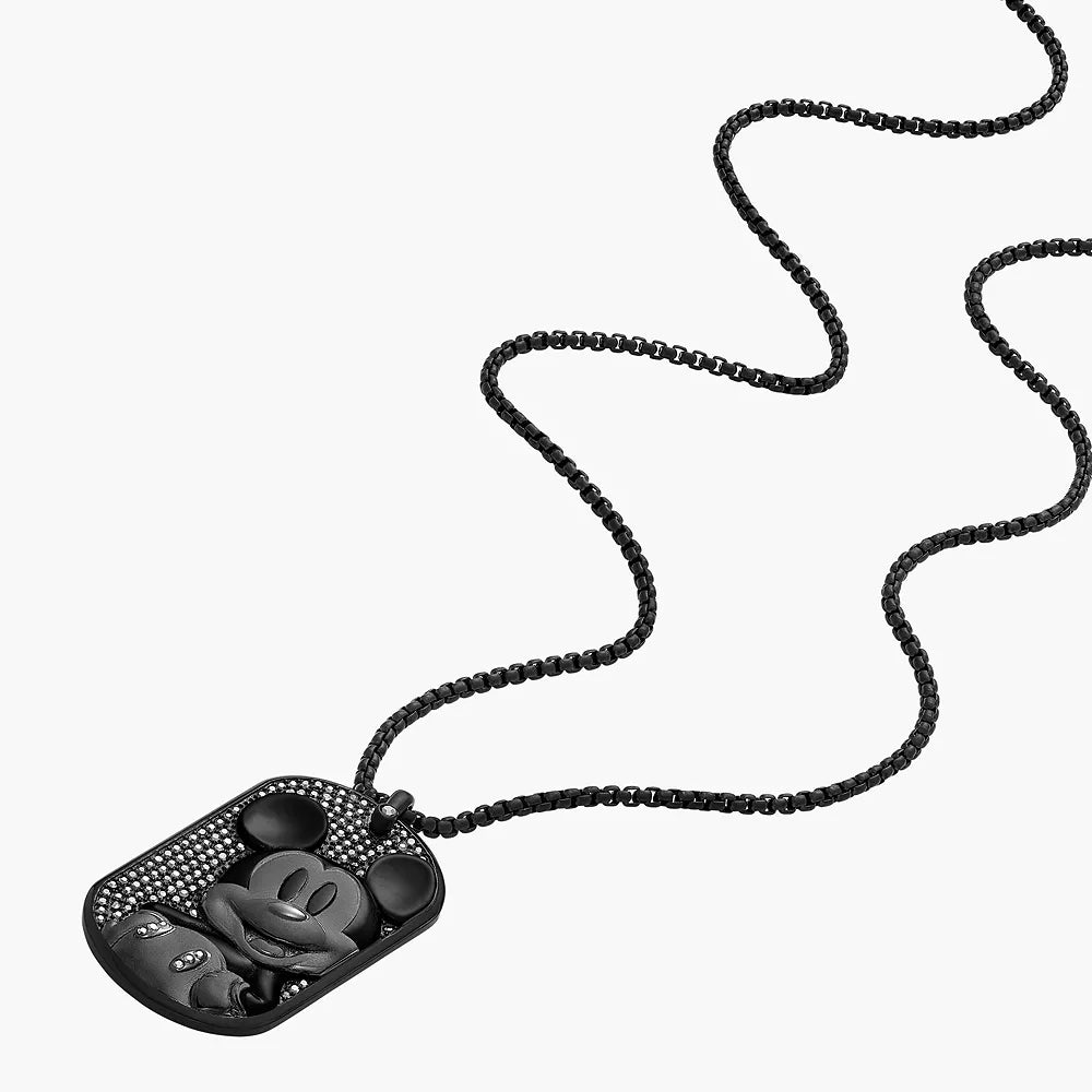 DISNEY FOSSIL SPECIAL EDITION BLACK STAINLESS STEEL TAG NECKLACE