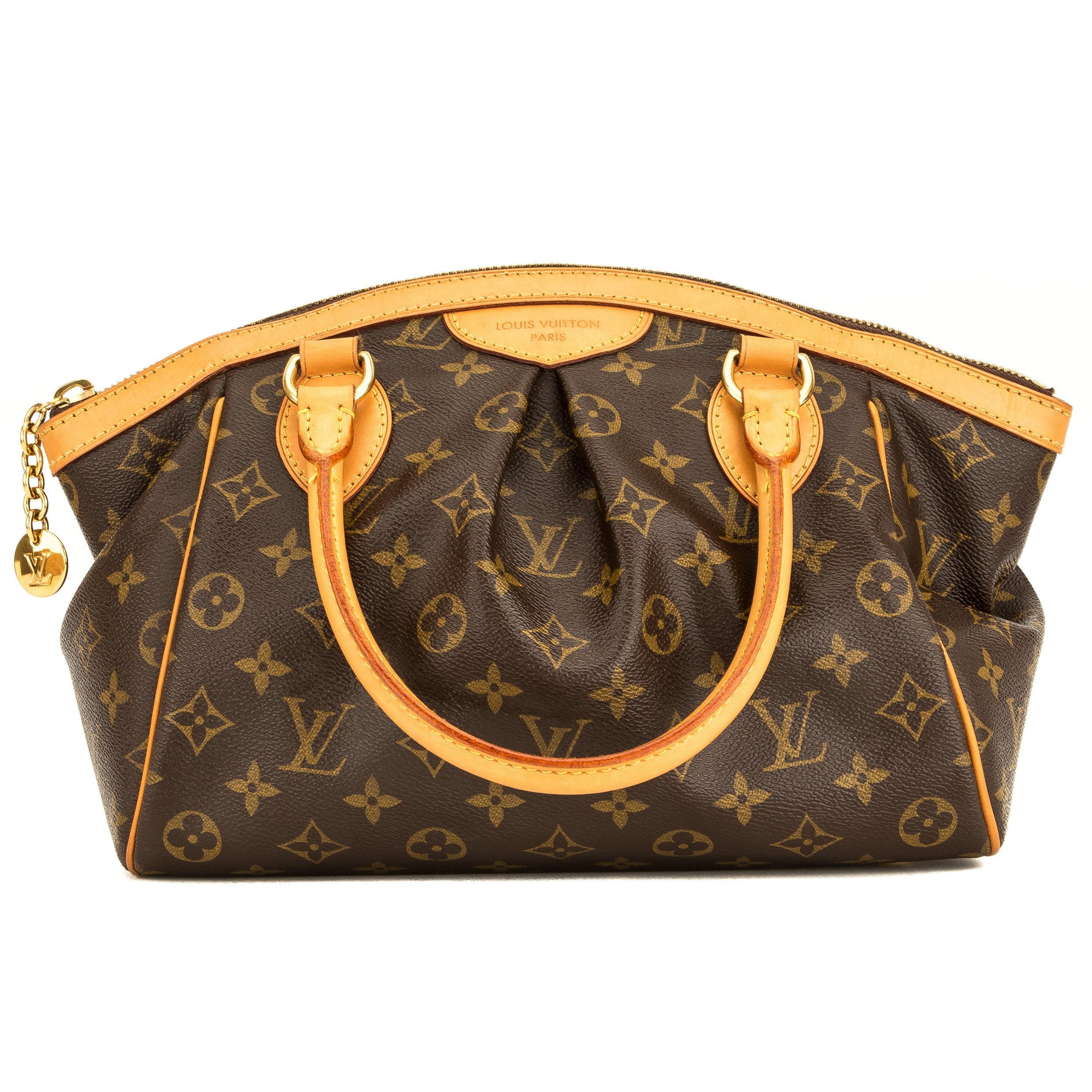 This is an authentic, pre-owned LOUIS VUITTON Tivoli PM Bag. It’s named after the beautiful city of Tivoli, Italy, which garners many tourists. It features the iconic Monogram canvas with a pleated front detail, a natural cowhide leather trim, and rolled top handles. It has golden brass hardware, including five studs on the base for support. It has a zip closure with an LV medallion charm and opens to a rich brown textile lining, a flat pocket, and a cellphone pocket. This is the petite Tivoli but it has plenty of space for your necessities. This is a charming bag for every day.