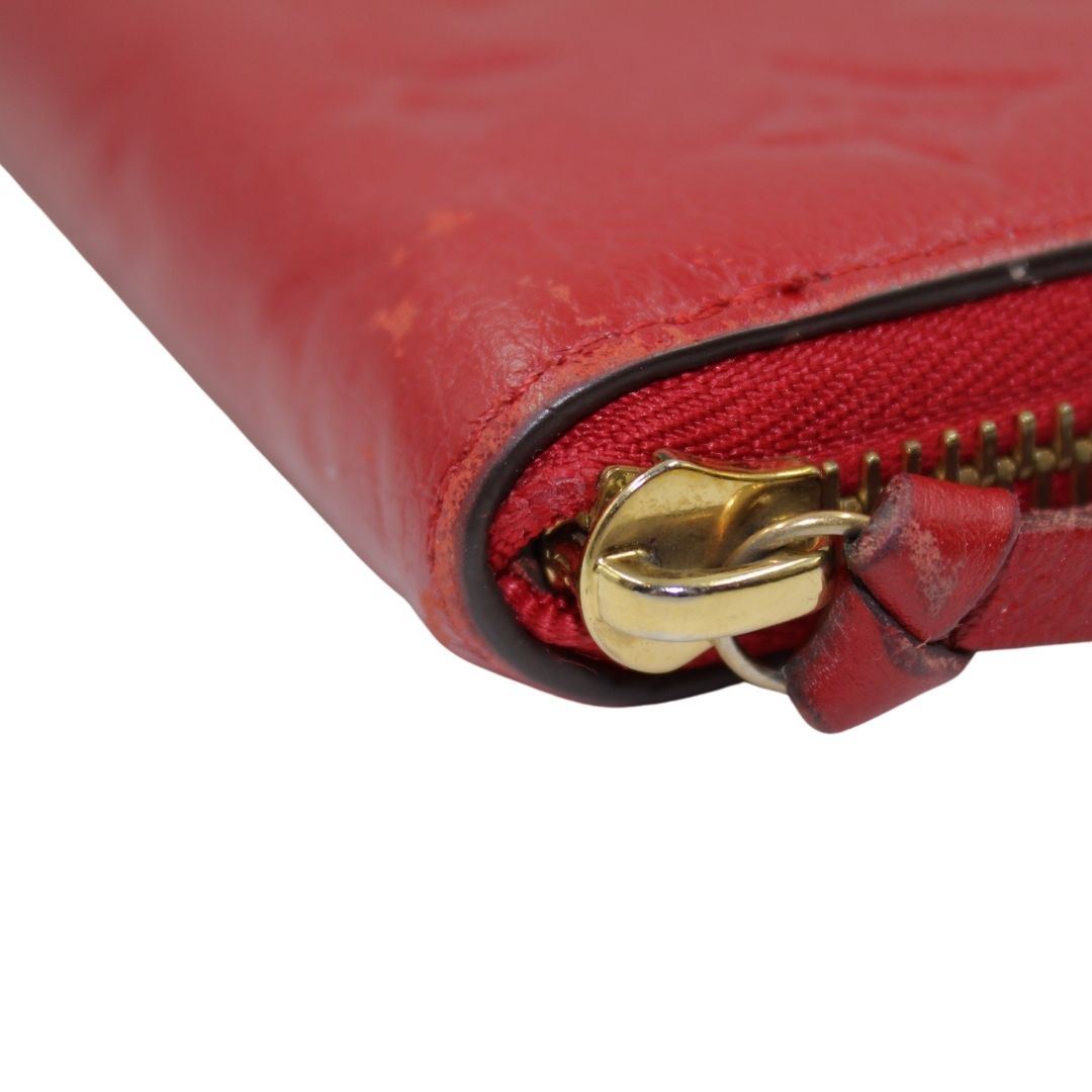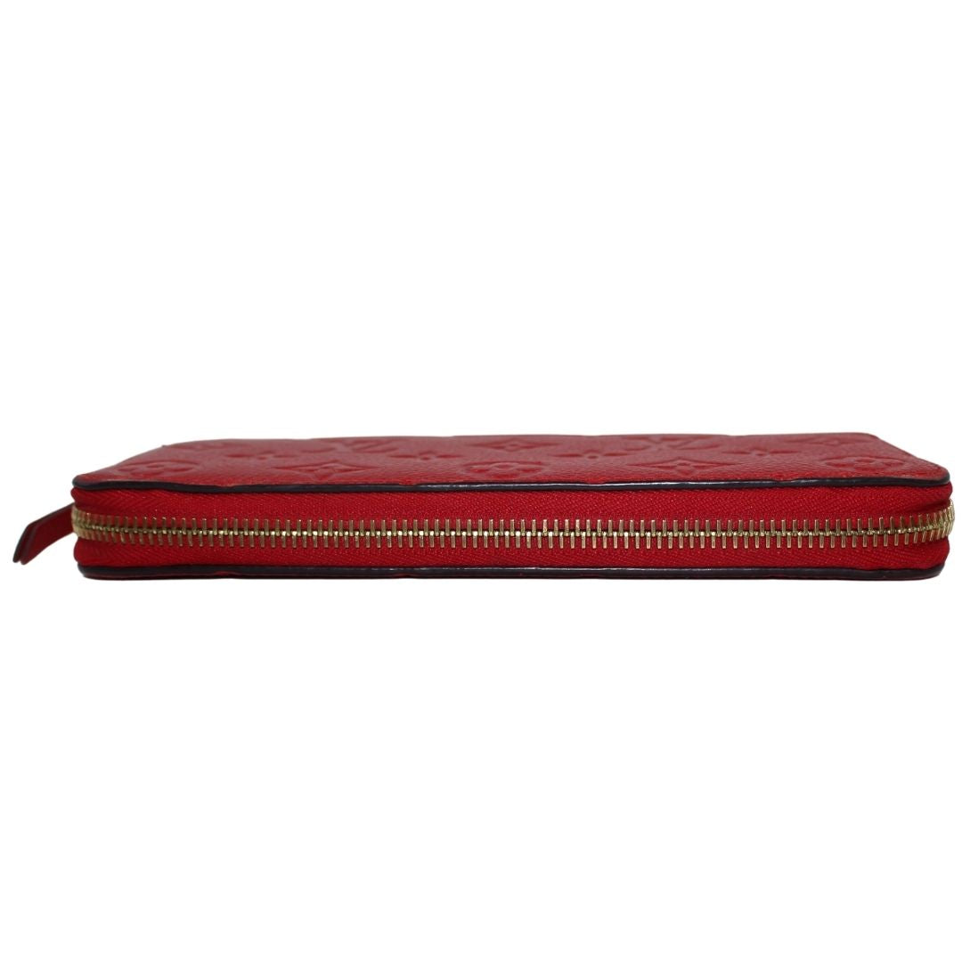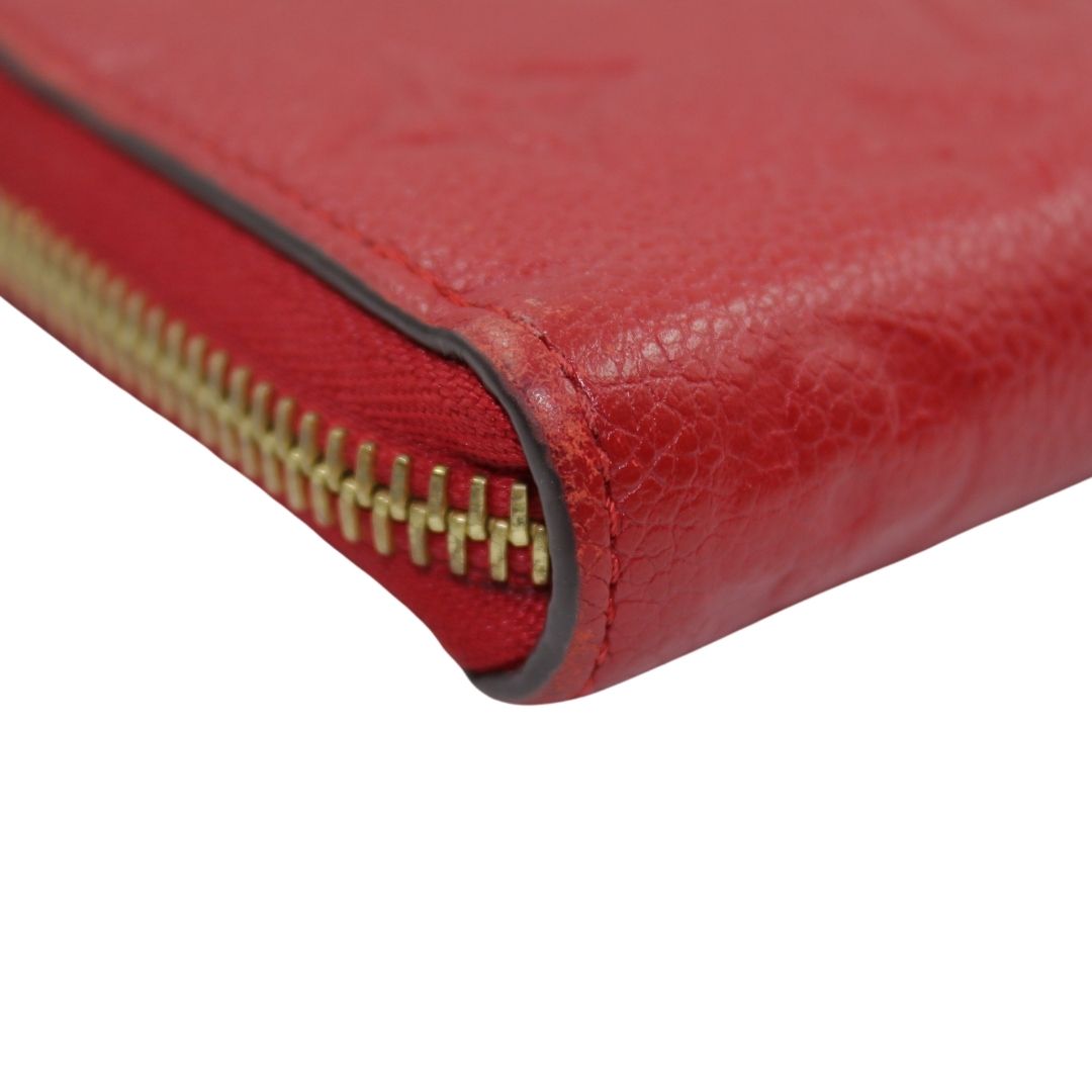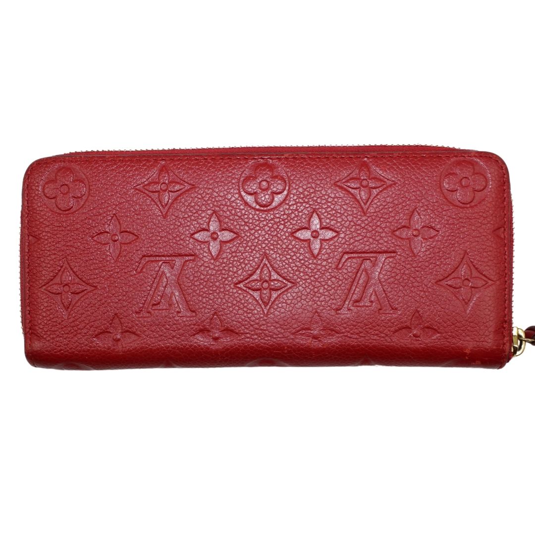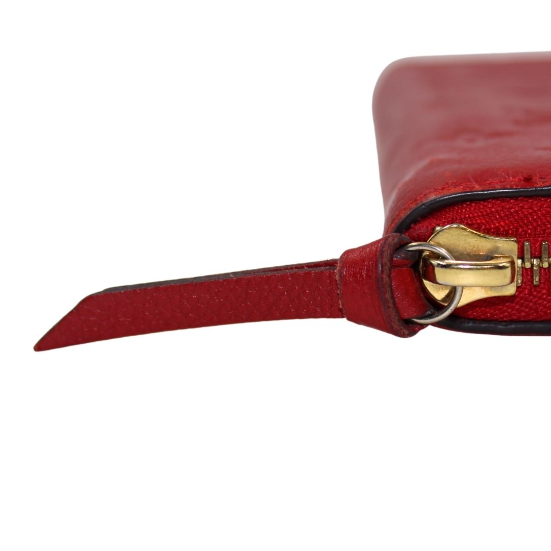 The LV Zip Around Zippy Wallet features luxurious red monogram empreinte leather and elegant gold hardware. With multiple card slots and a removable center compartment, this wallet offers both style and function for the fashion-forward customer.