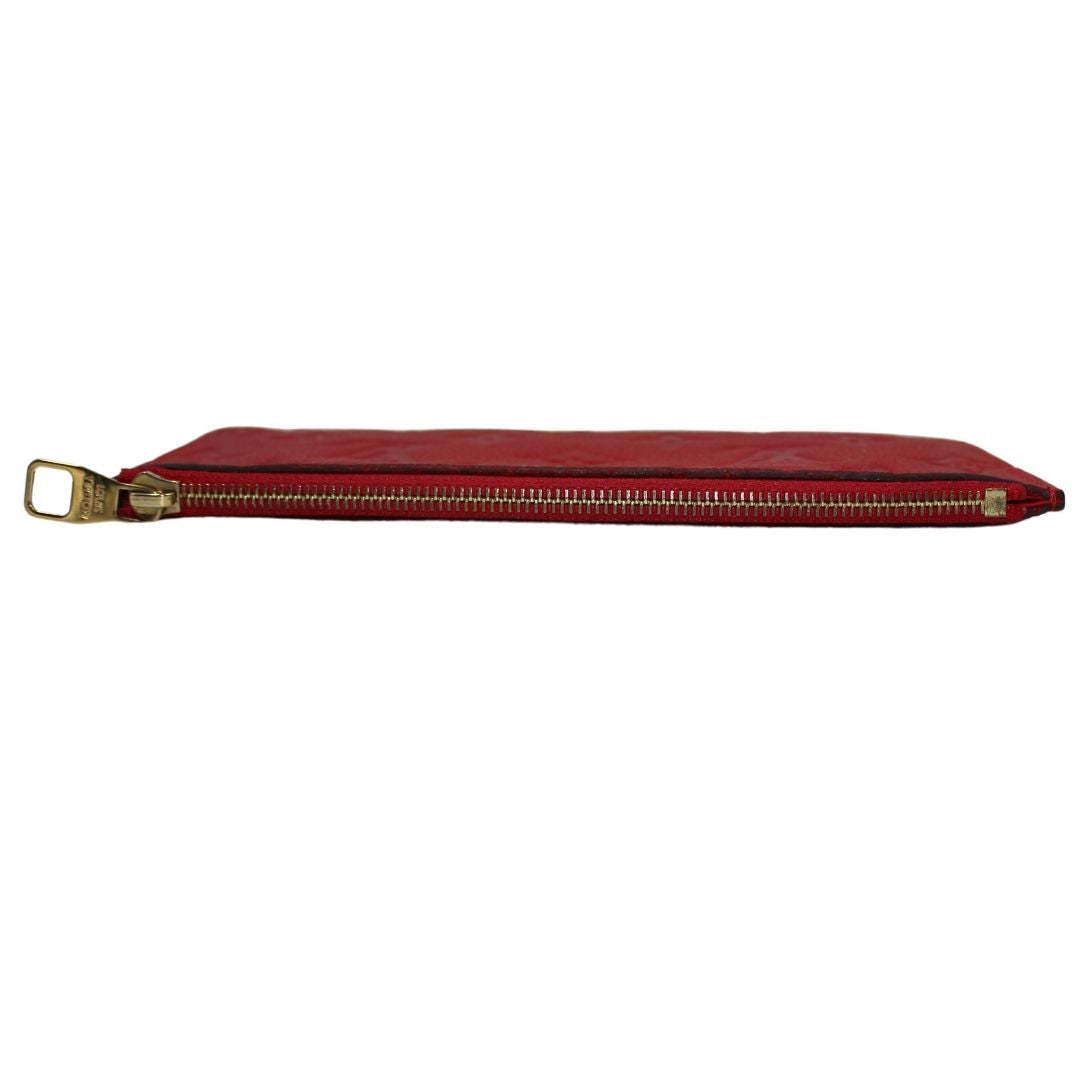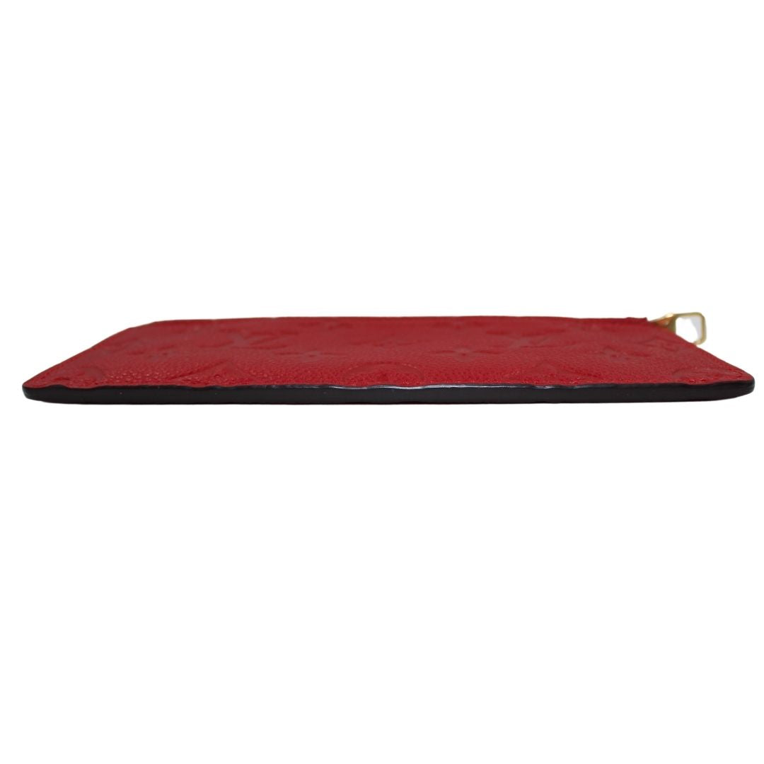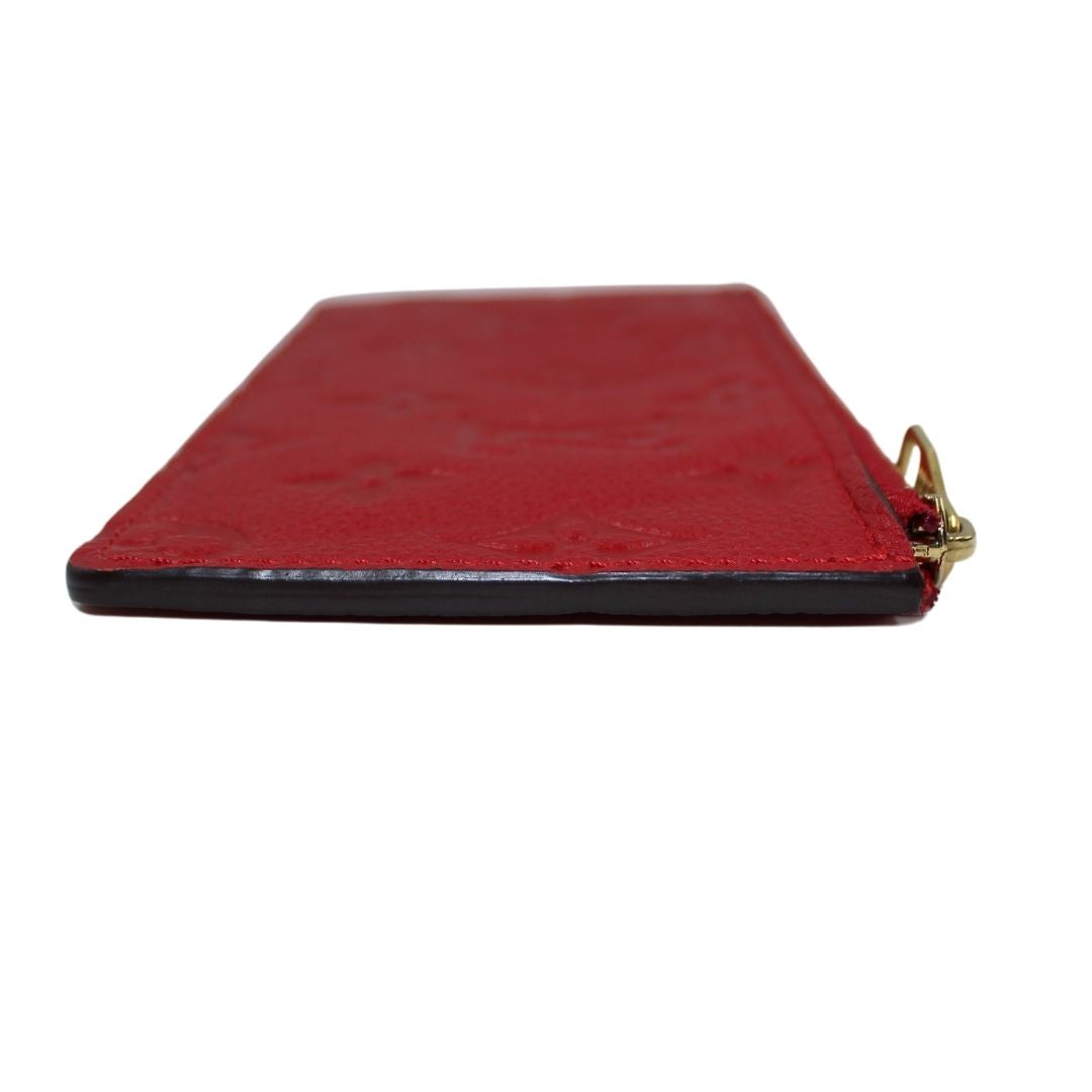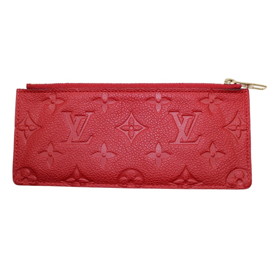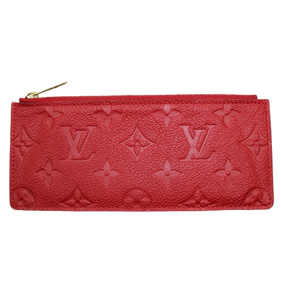 The LV Zip Around Zippy Wallet features luxurious red monogram empreinte leather and elegant gold hardware. With multiple card slots and a removable center compartment, this wallet offers both style and function for the fashion-forward customer.