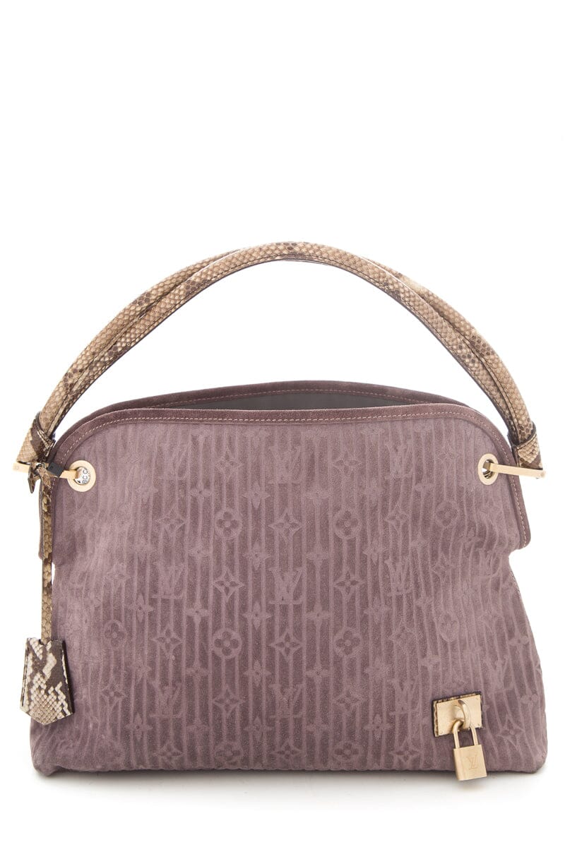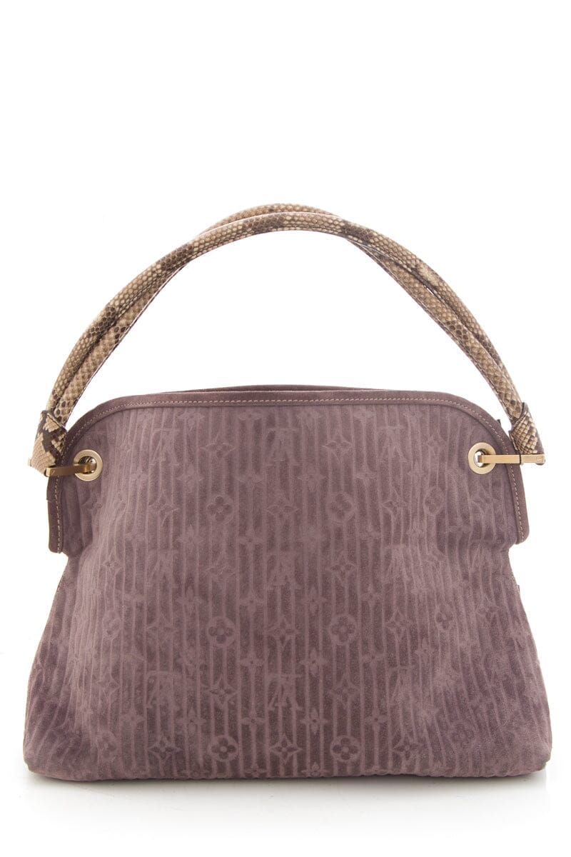 LV 2008 Python Trimmed Suede Whisper Handbag