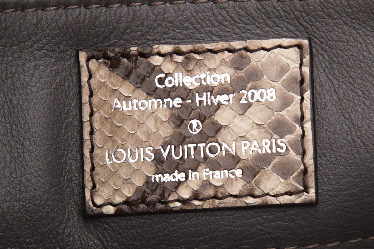 LV 2008 Python Trimmed Suede Whisper Handbag. This item is in good ; some slight discoloring on corners.