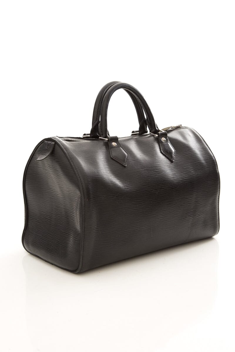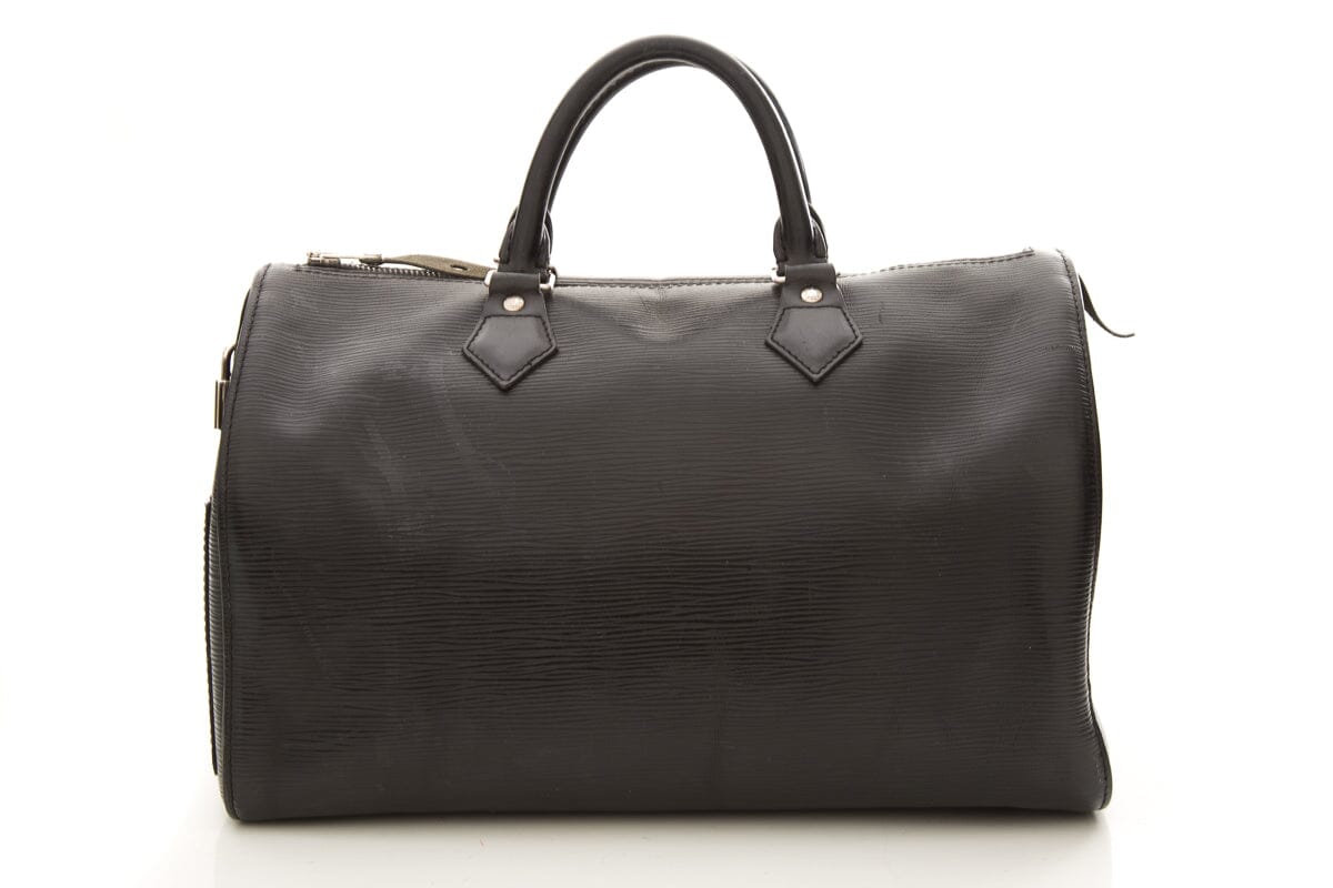 LV 2011 Black Epi Leather Speedy 35 Handbag. This item is gently loved with some scratching/creasing throughout and wear to bottom corner edges.