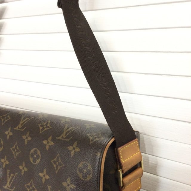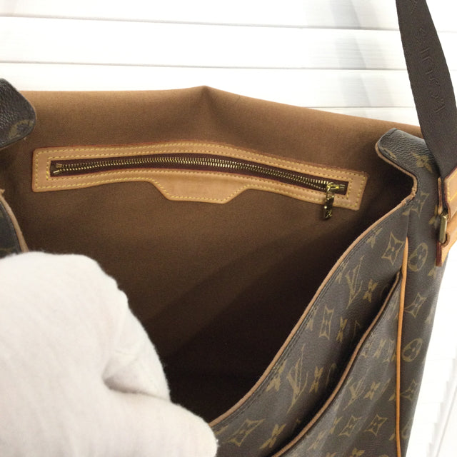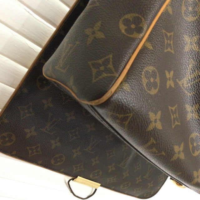 LV Abbesses Messenger Bag. Monogram Pattern Coated Canvas with Front Flap Closure. Adjustable Canvas Strap. Sold As Is. Reference Pictures for Interior Staining. (CA0065)