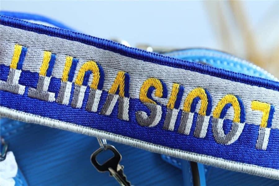 One of the House’s most recognizable bags, the adorable Alma BB handbag gets a sporty makeover thanks to a new Jacquard strap. The fashionably wide strap is embroidered with LV on one side and Monogram Blossoms on the other, and features delicate stitching along its edges. Made from colorful Epi leather, this bag will definitely turn heads.