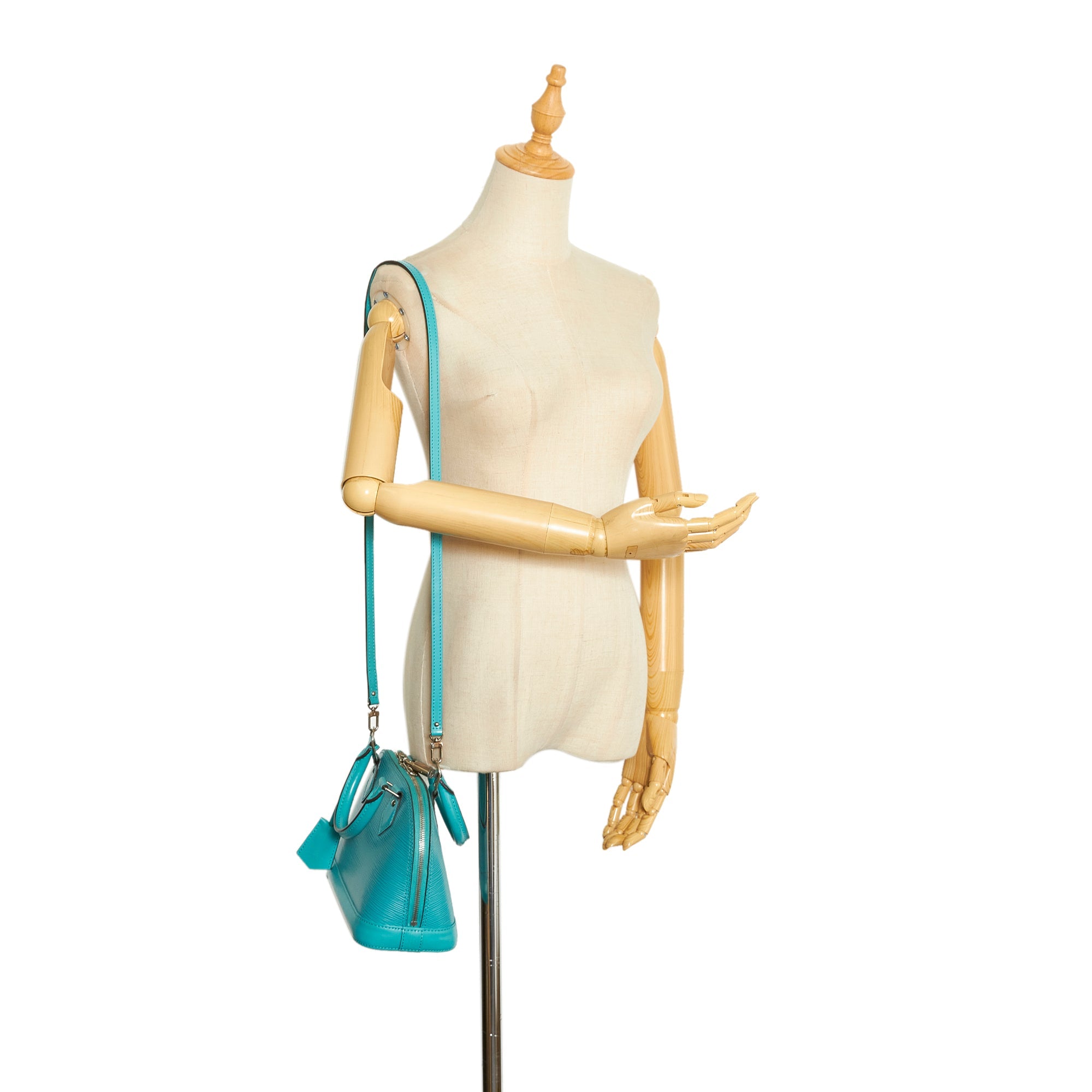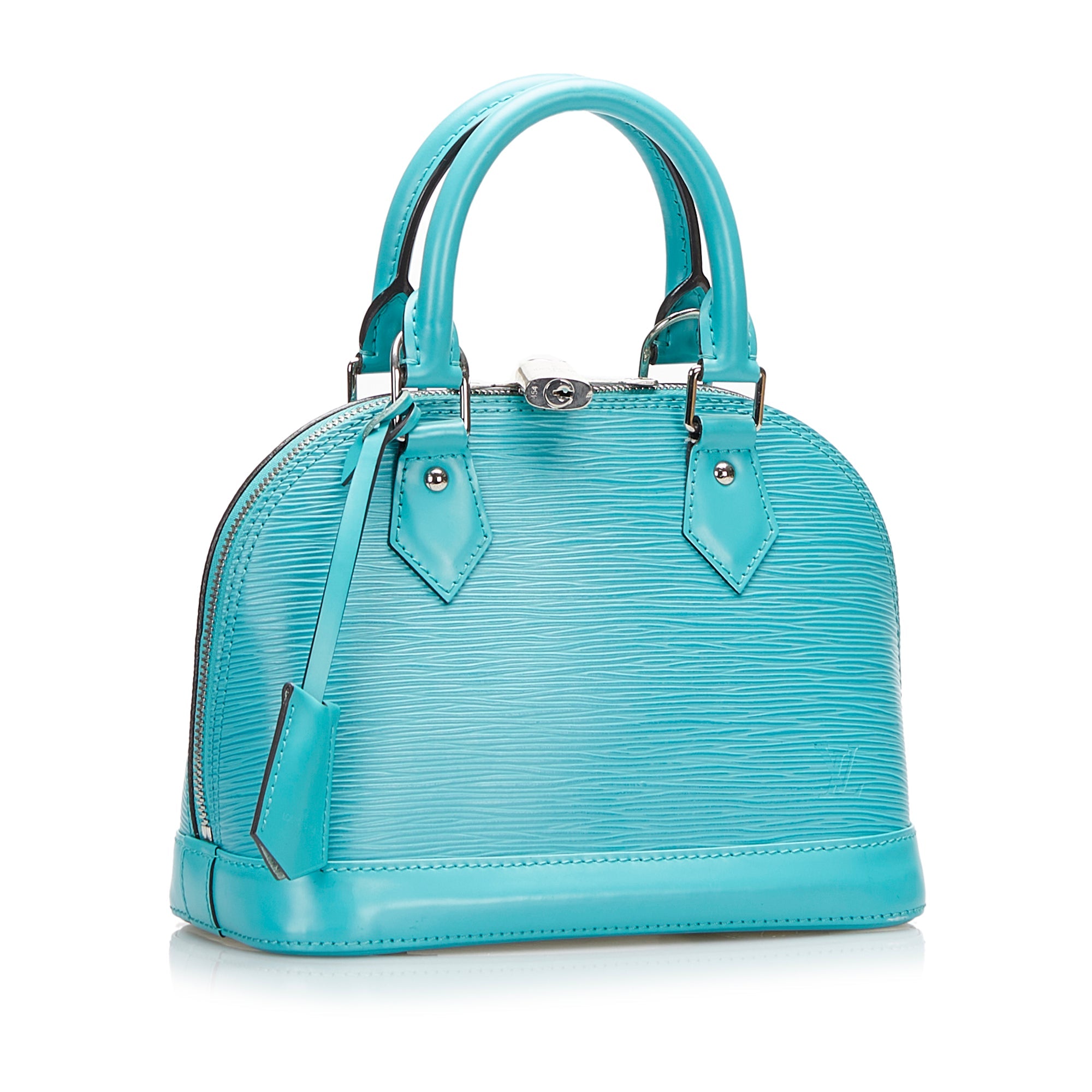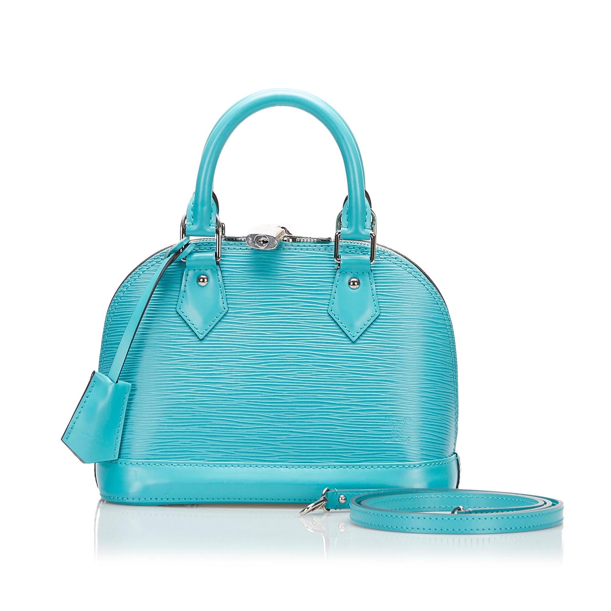 First introduced in 1934, the LV Alma is one of the fashion house’s classics. This elegant model is made of light blue epi-leather and features hand-stitched rolled handles and silver-tone hardware. The Bag can be worn either in the hand or at the elbow.
