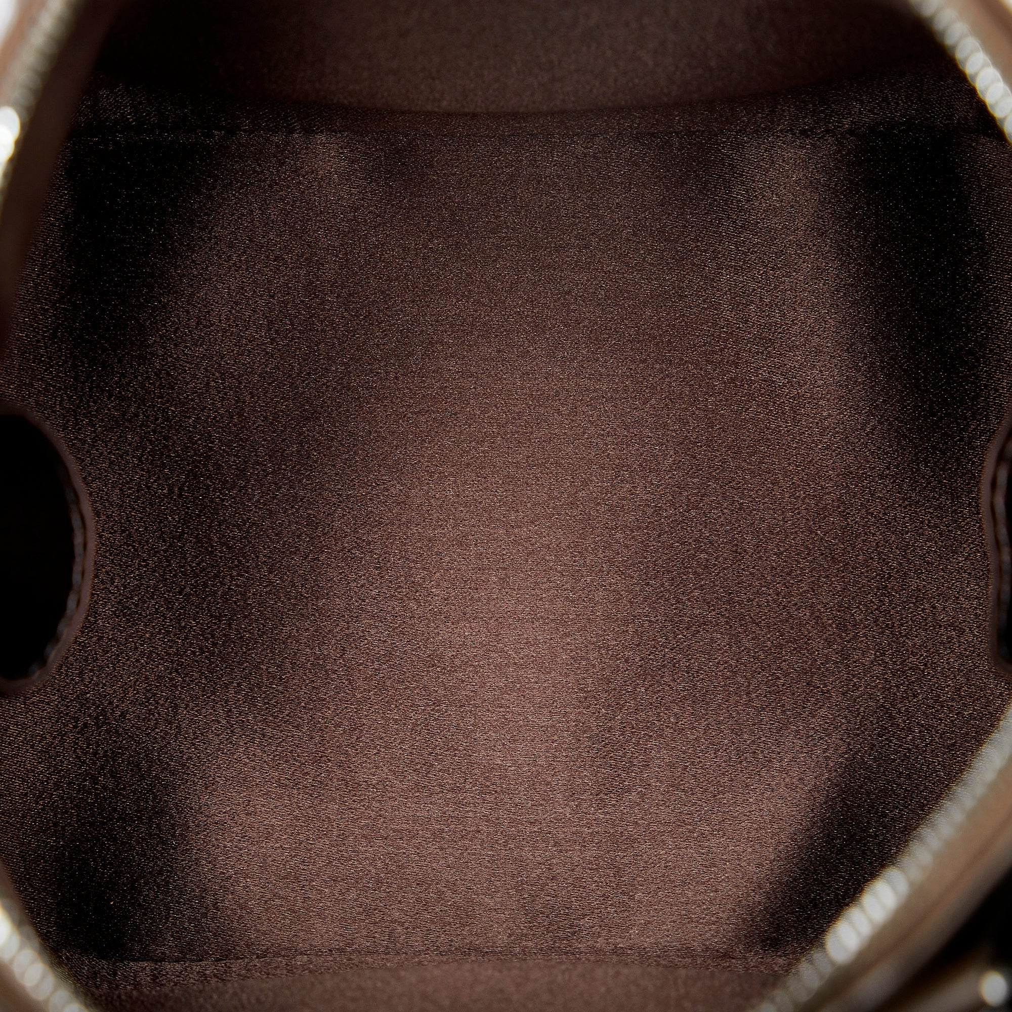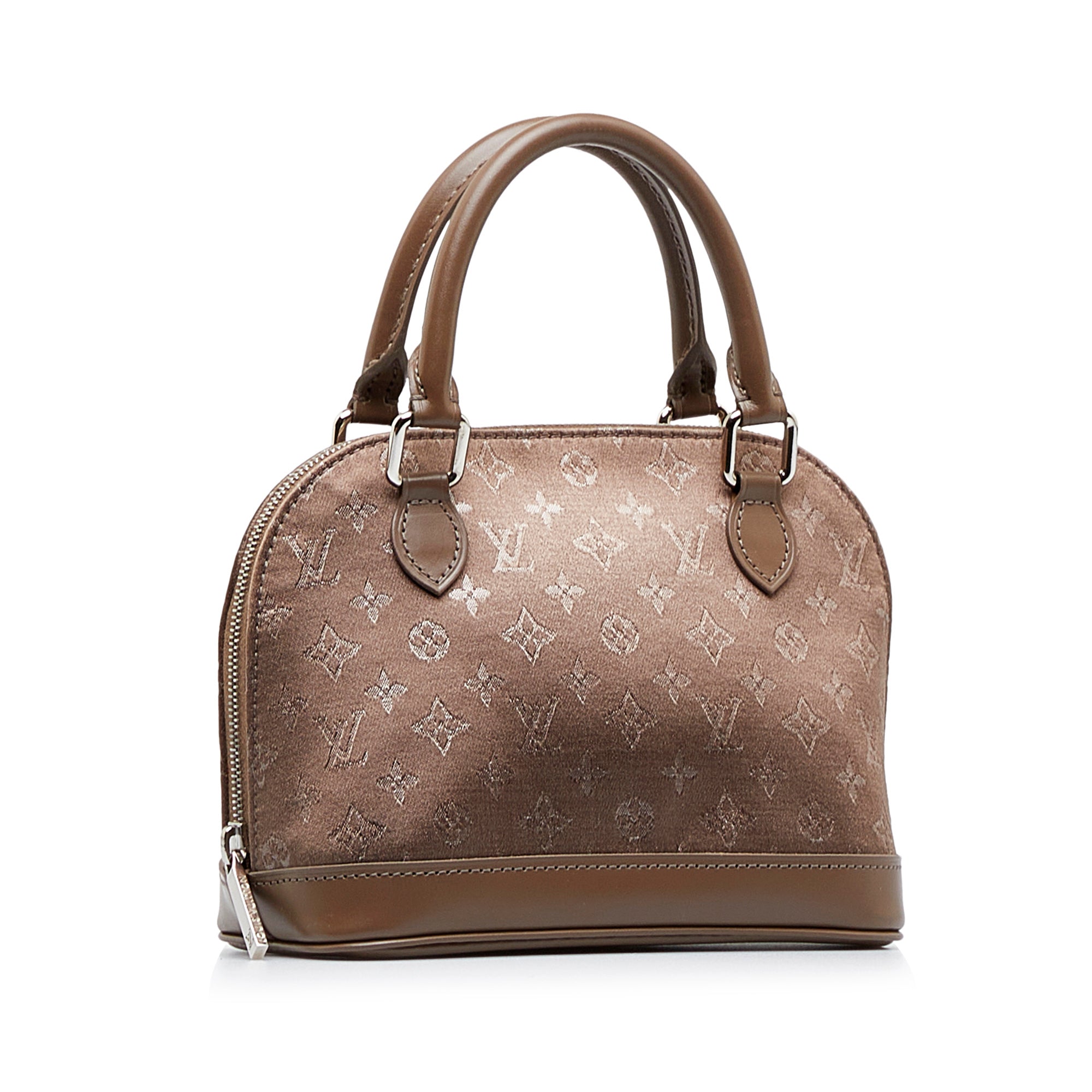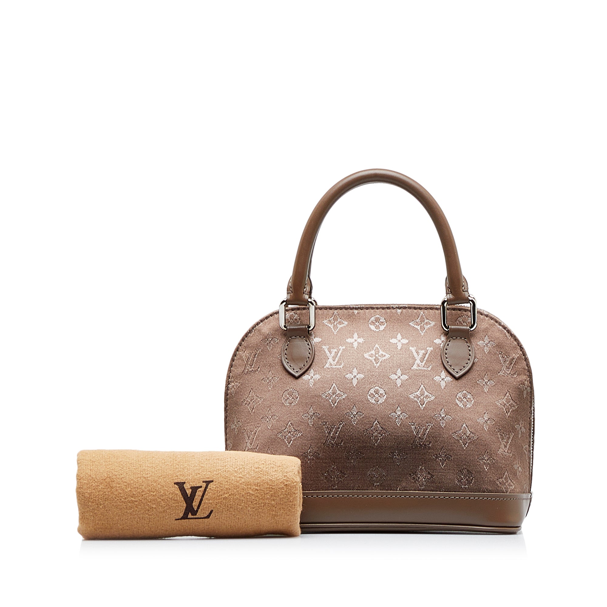 The beautiful LV Alma was after the Speedy series the second Bag, which came on the market in 1934. This LV Alma in size Mini is made of brown Monogram satin. The Bag has silver details, a zipper on the top and a slip pocket on the inside.