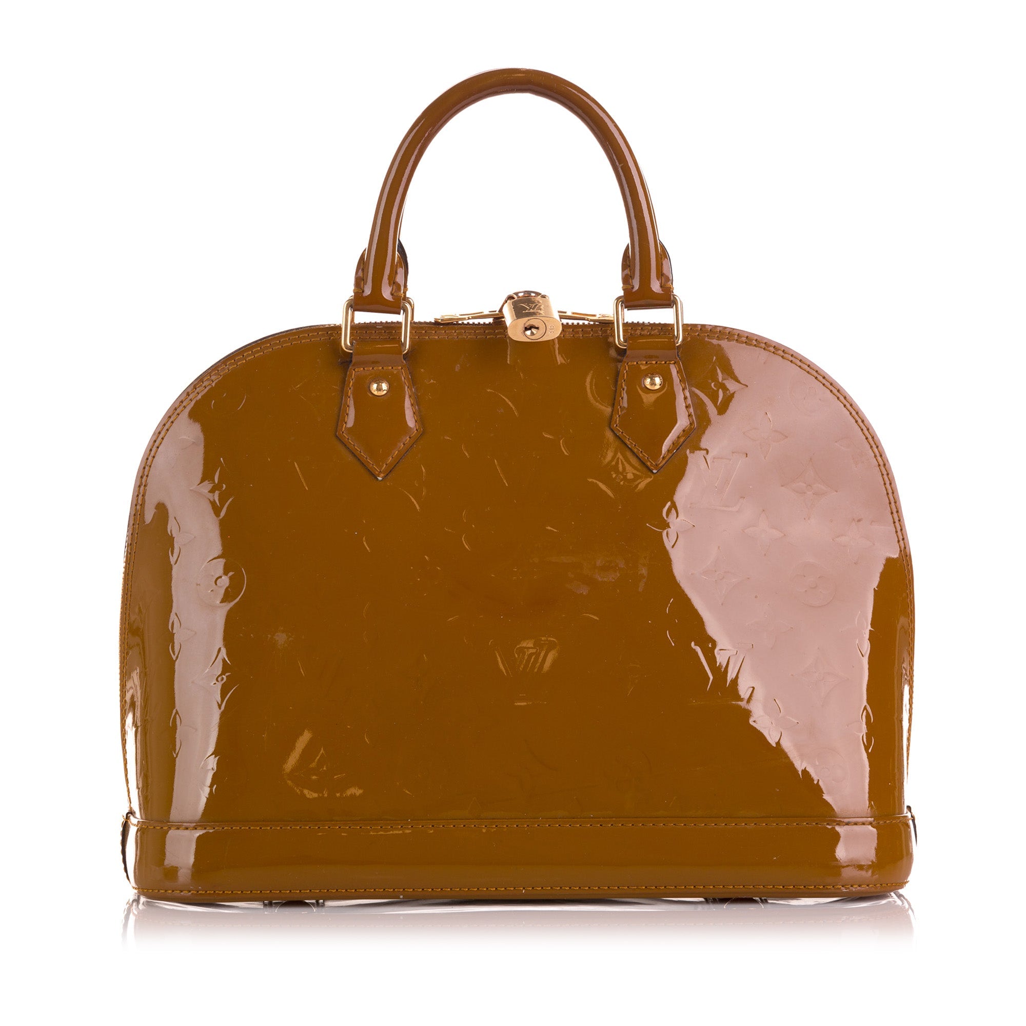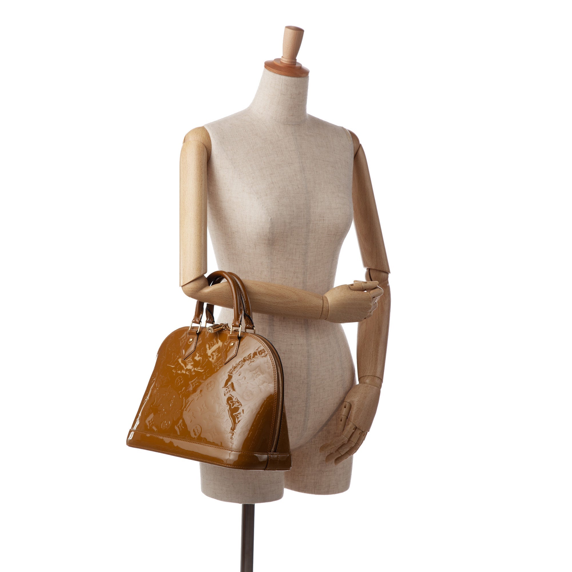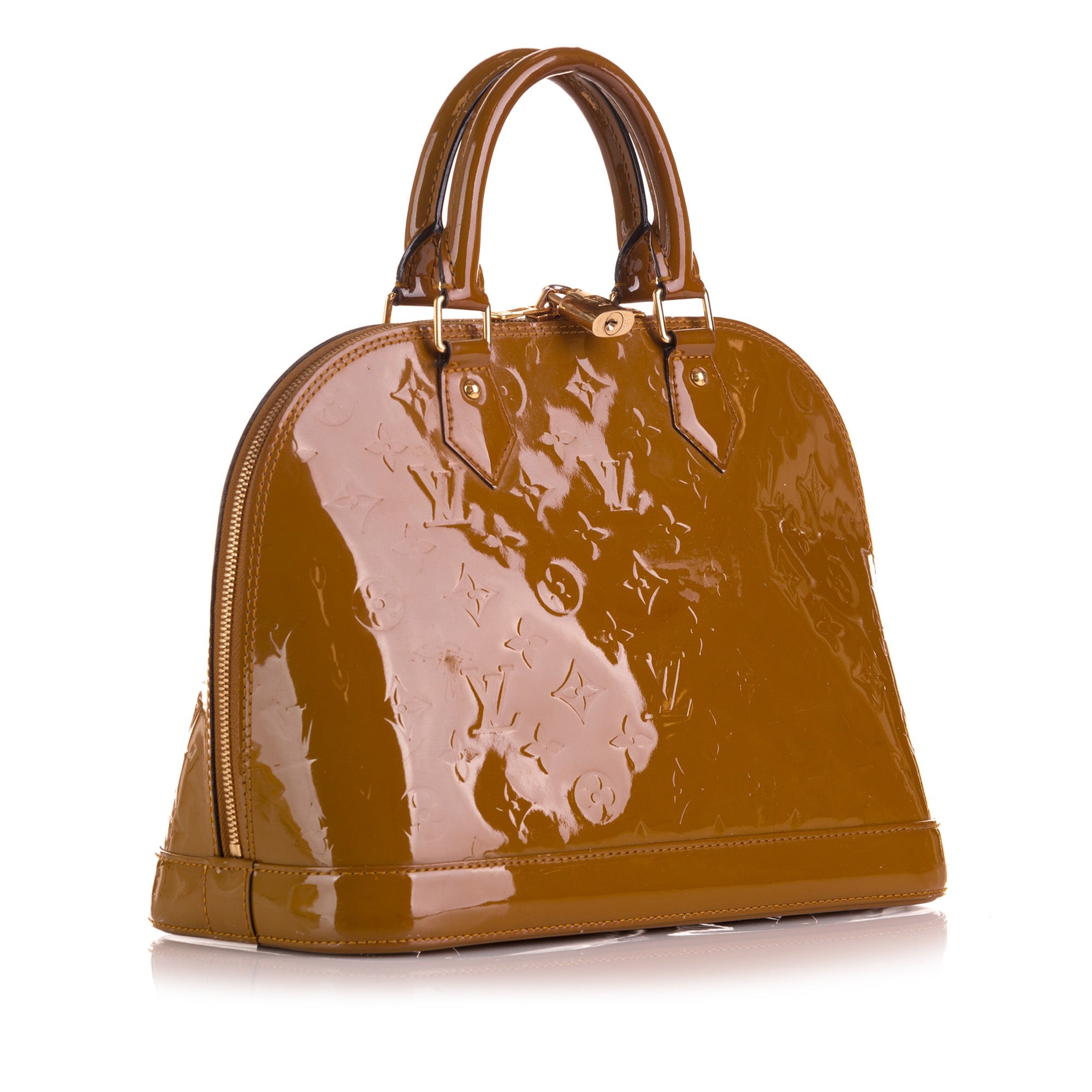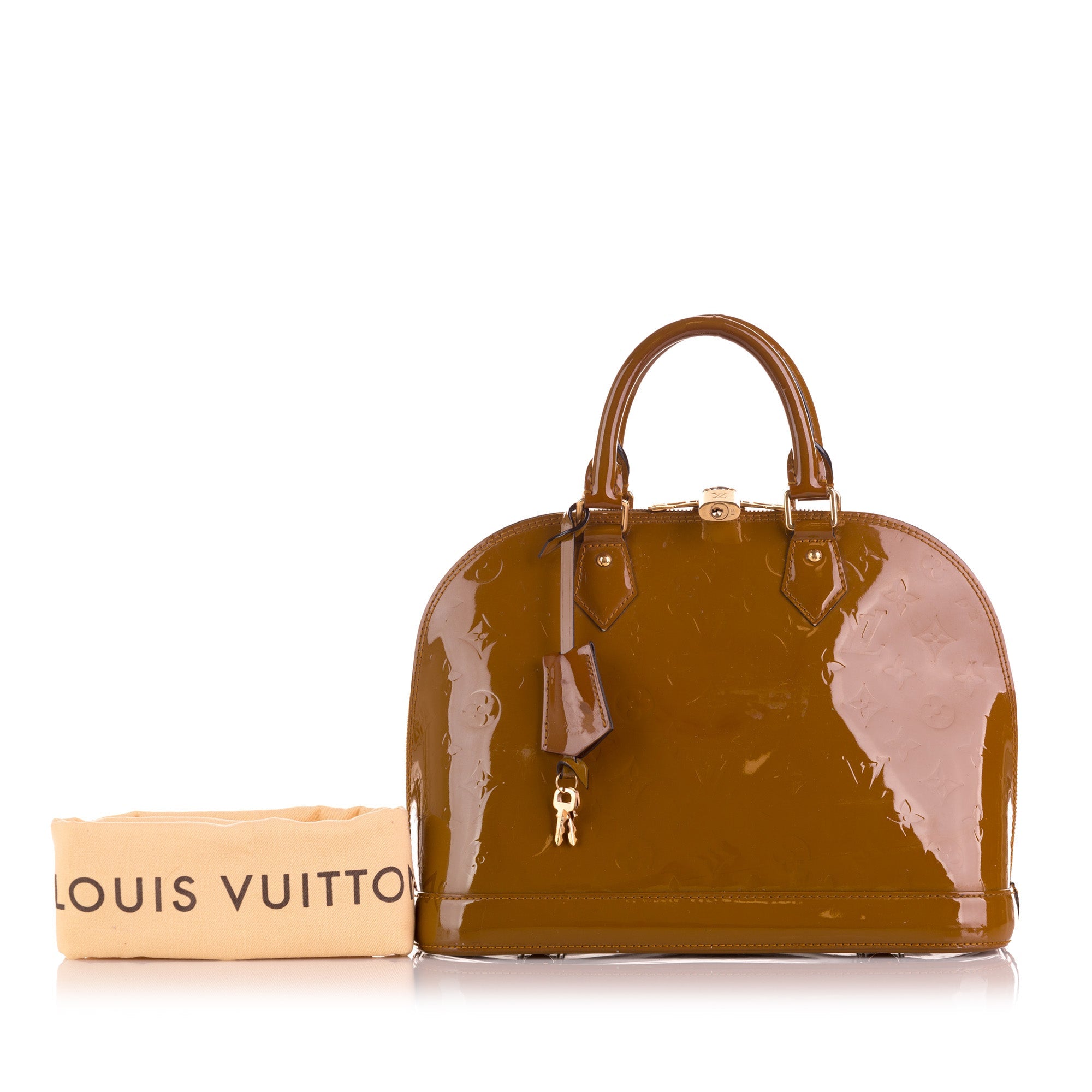 The LV Alma was after the bags of the Speedy series the second Bagwhich came on the market in 1934. This LV Alma in the size PM was made of brown Monogram Vernis leather, the Bag features gold details, a double zipper and slip pockets inside. A small padlock can be New to lock the Bag additionally be secured.