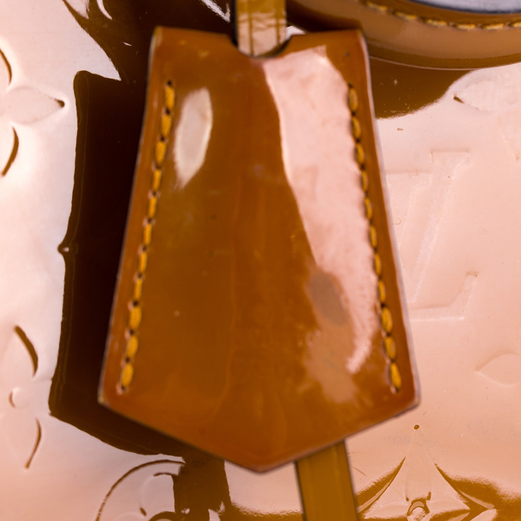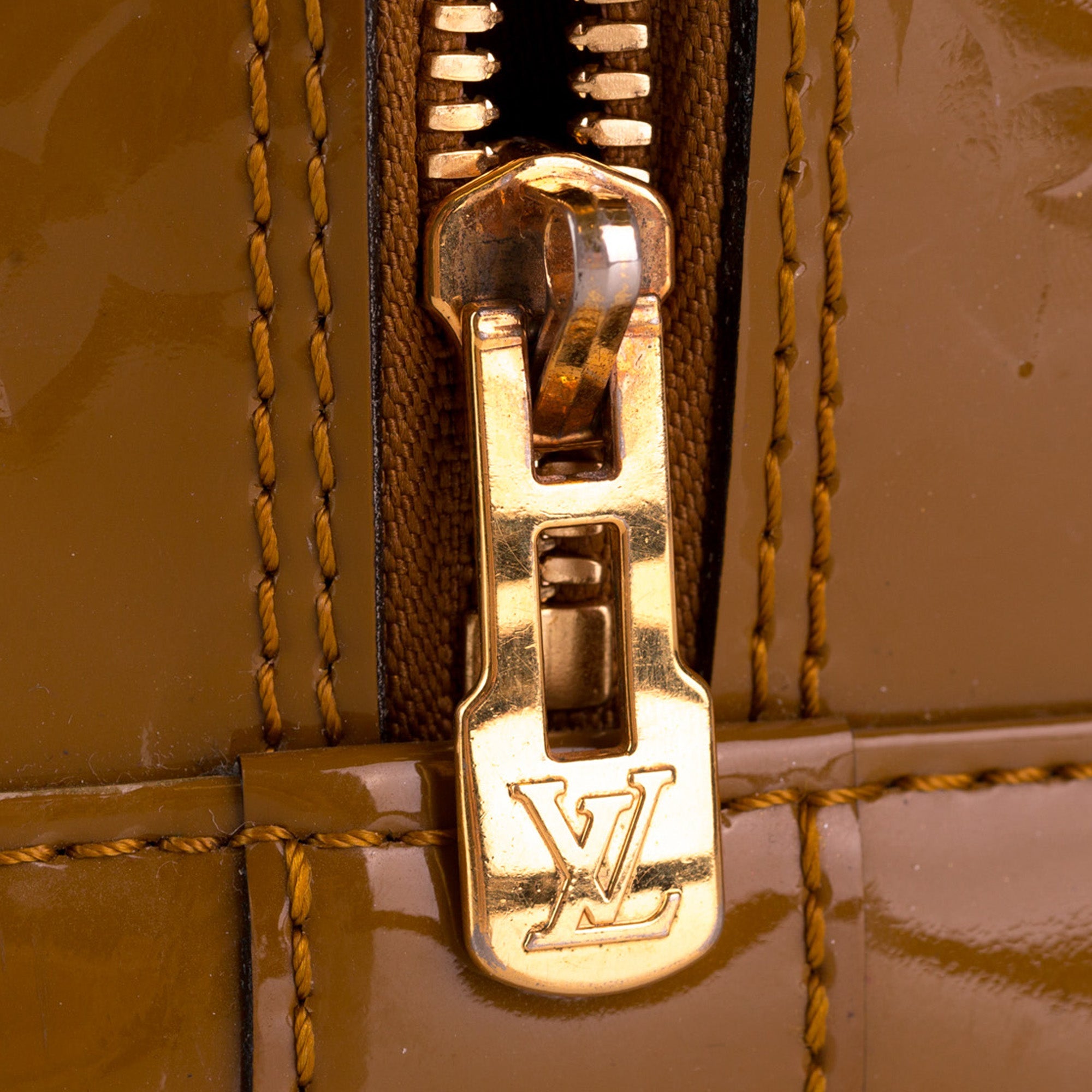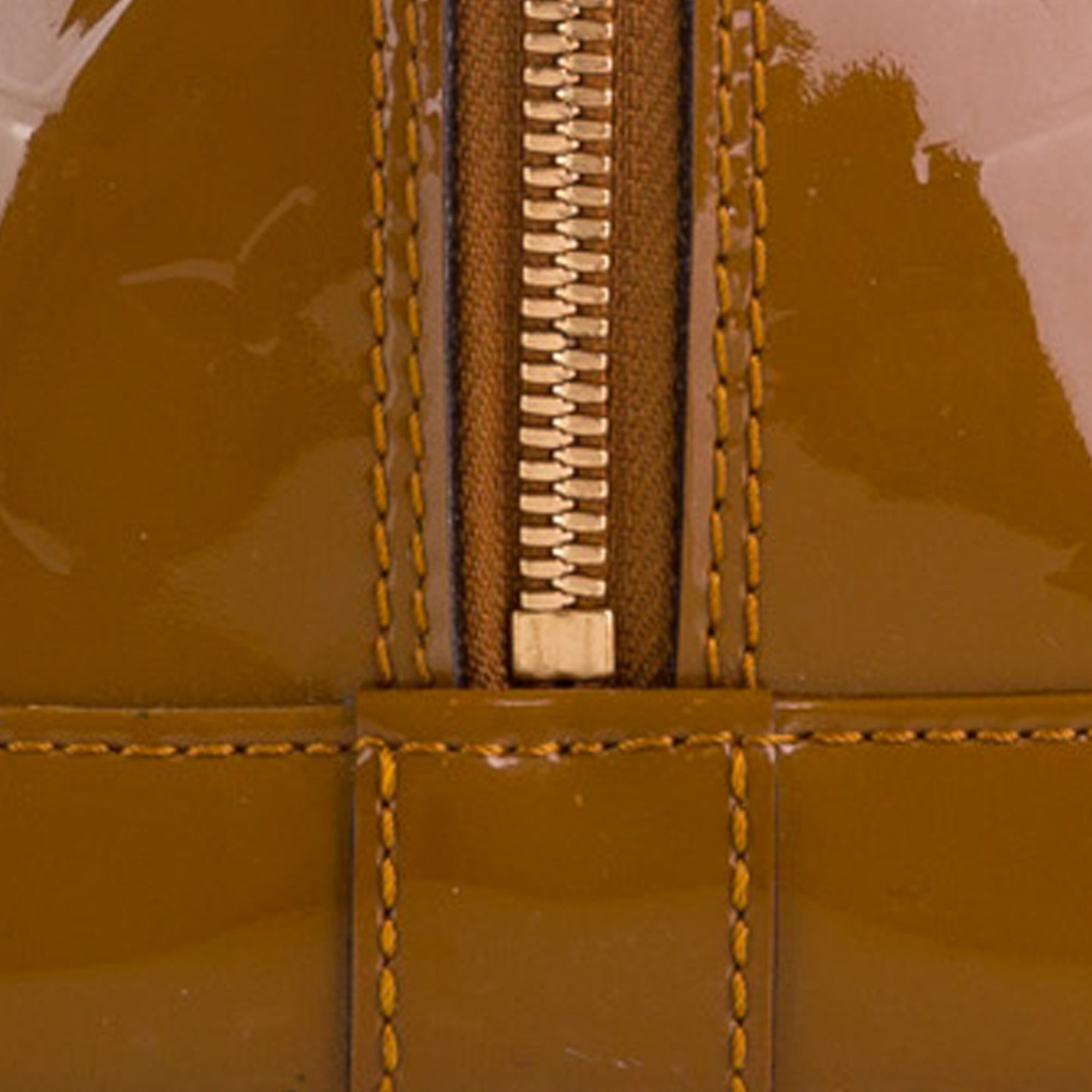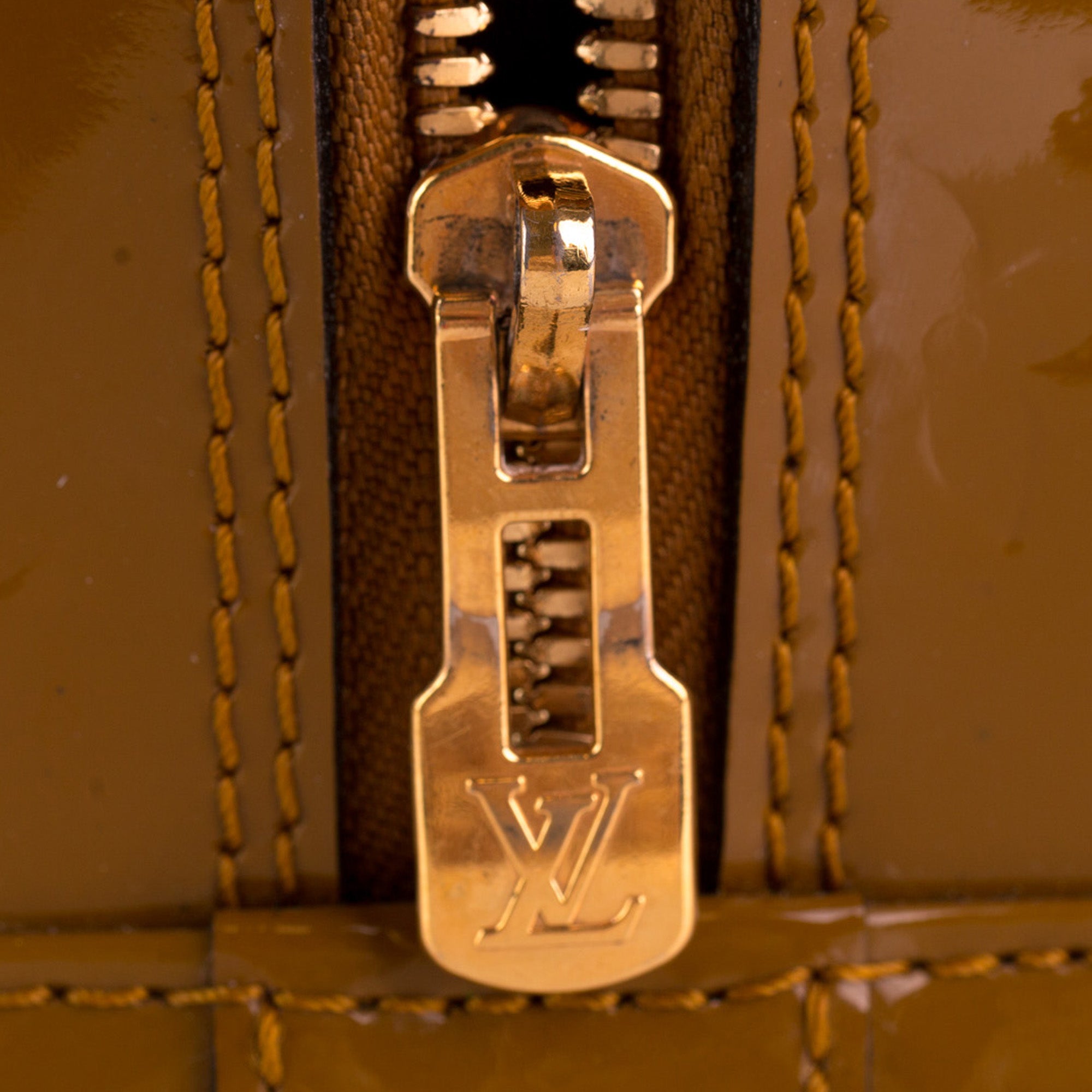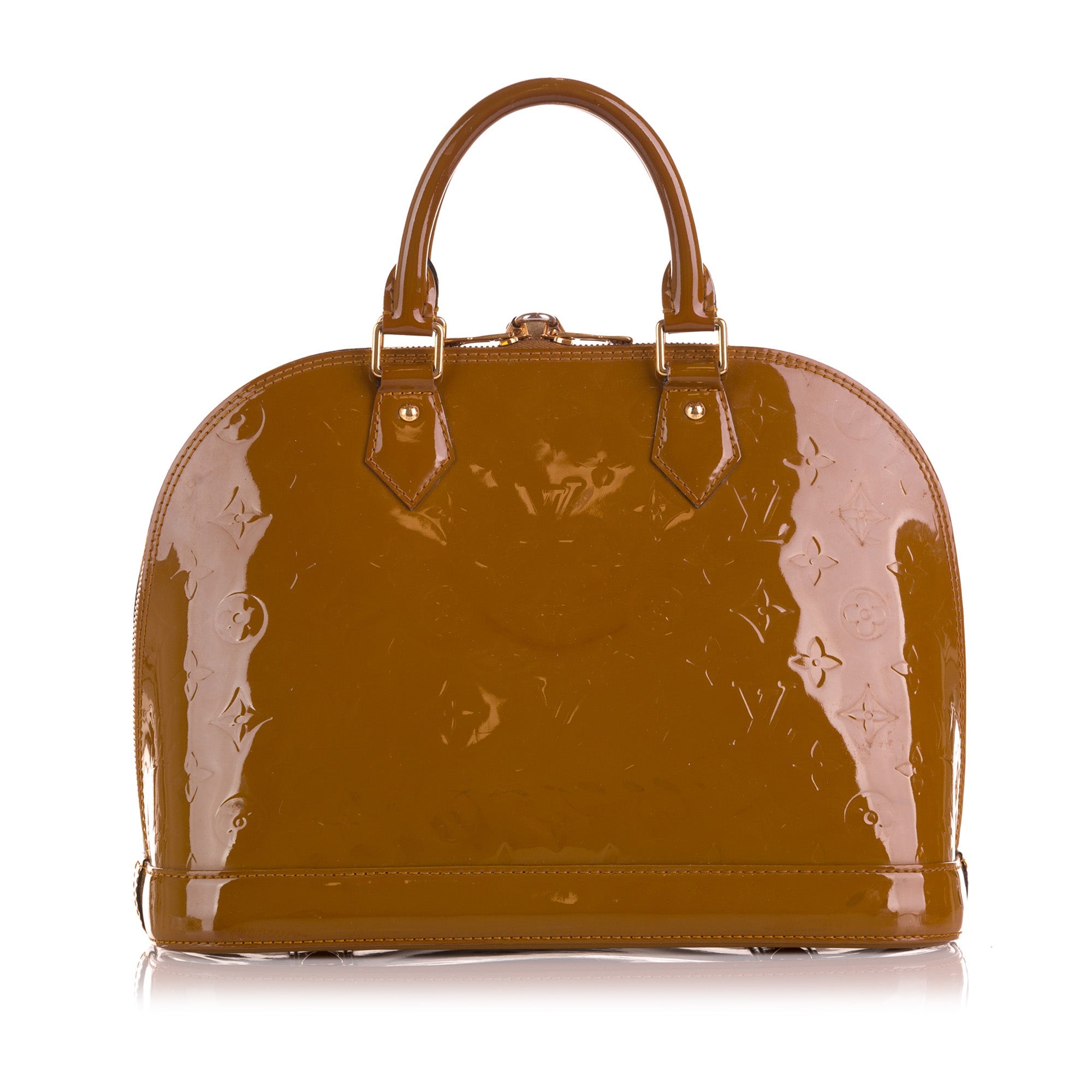 The LV Alma was after the bags of the Speedy series the second Bagwhich came on the market in 1934. This LV Alma in the size PM was made of brown Monogram Vernis leather, the Bag features gold details, a double zipper and slip pockets inside. A small padlock can be New to lock the Bag additionally be secured.
