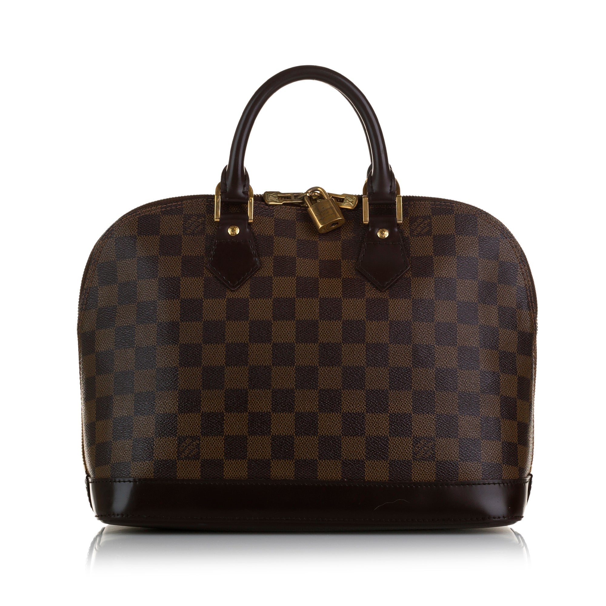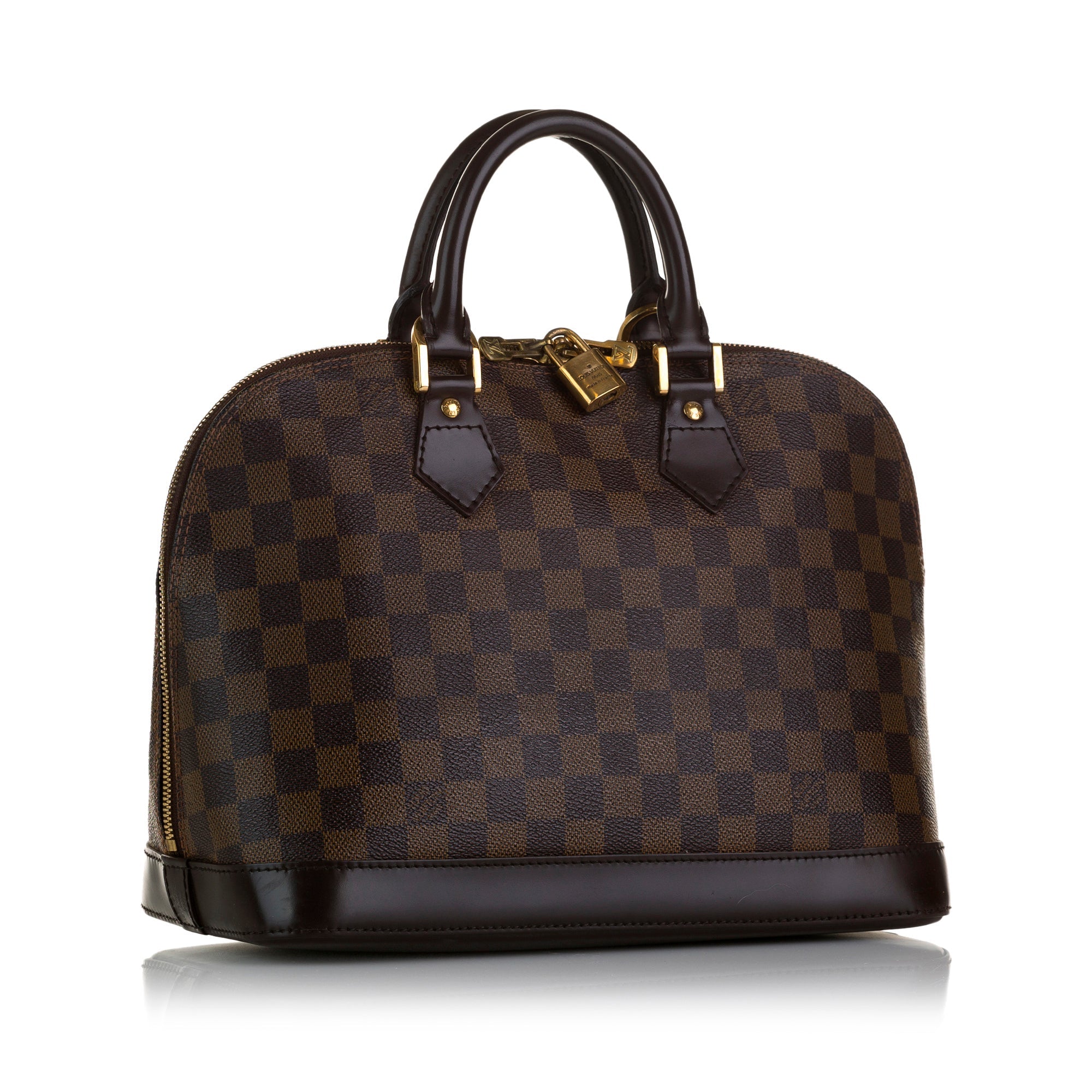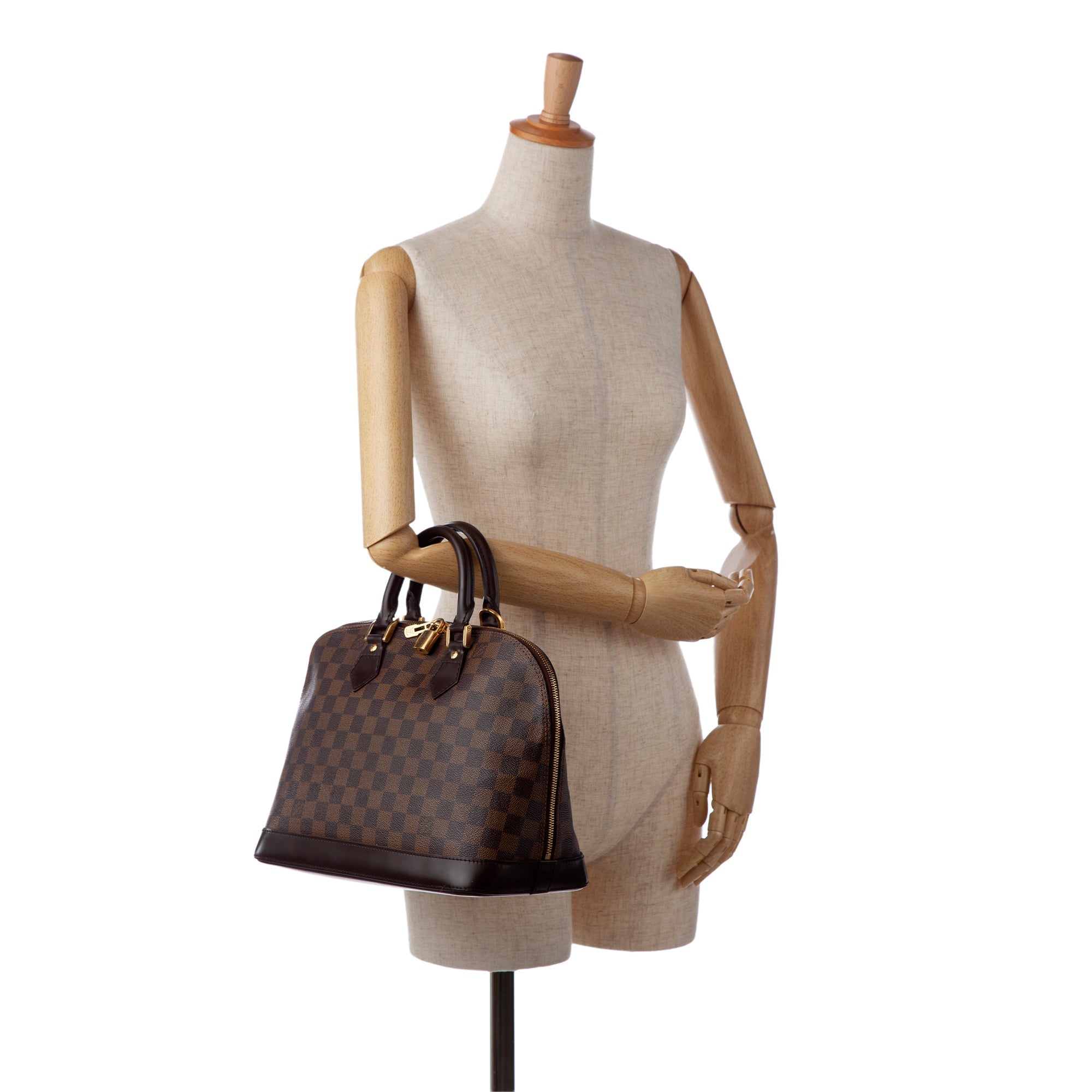 First launched in 1934, the Alma model is one of the fashion house’s classics. This elegant model in the popular Damier Ebene canvas has hand-stitched Toron handles, dark brown cowhide leather trim and gold-tone hardware. It can be worn either in the hand or at the elbow.