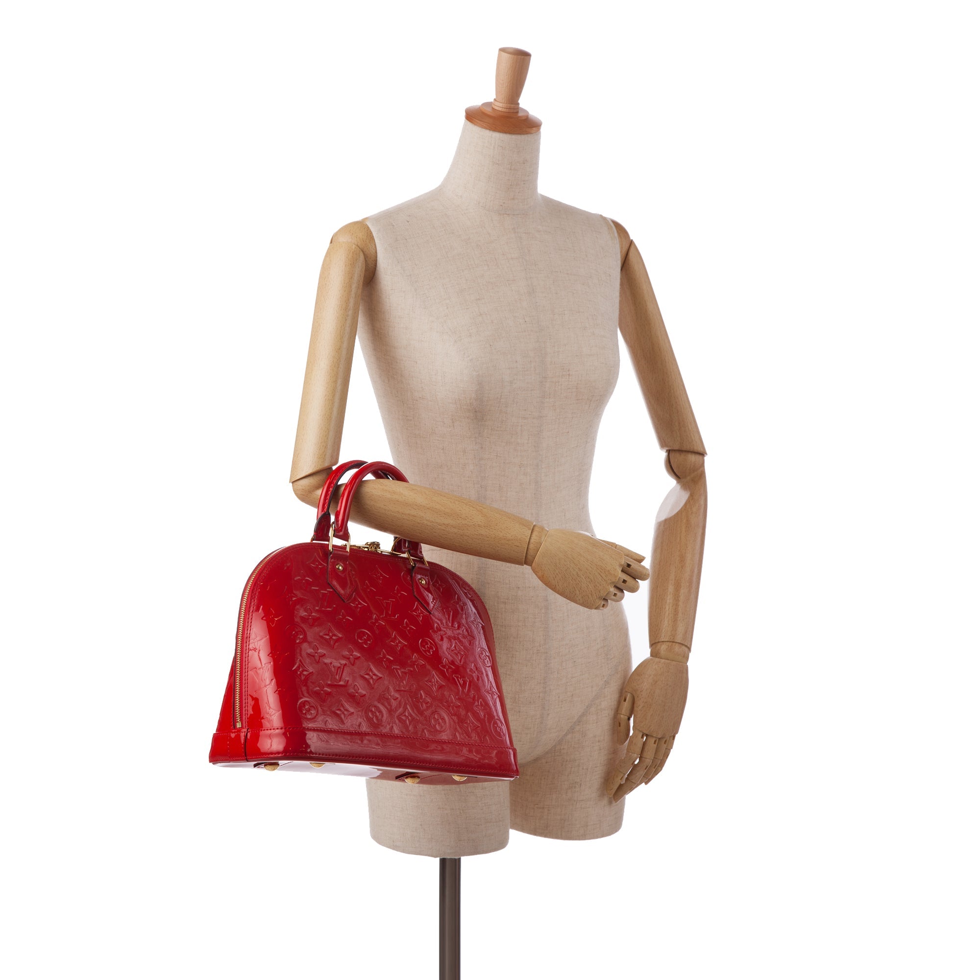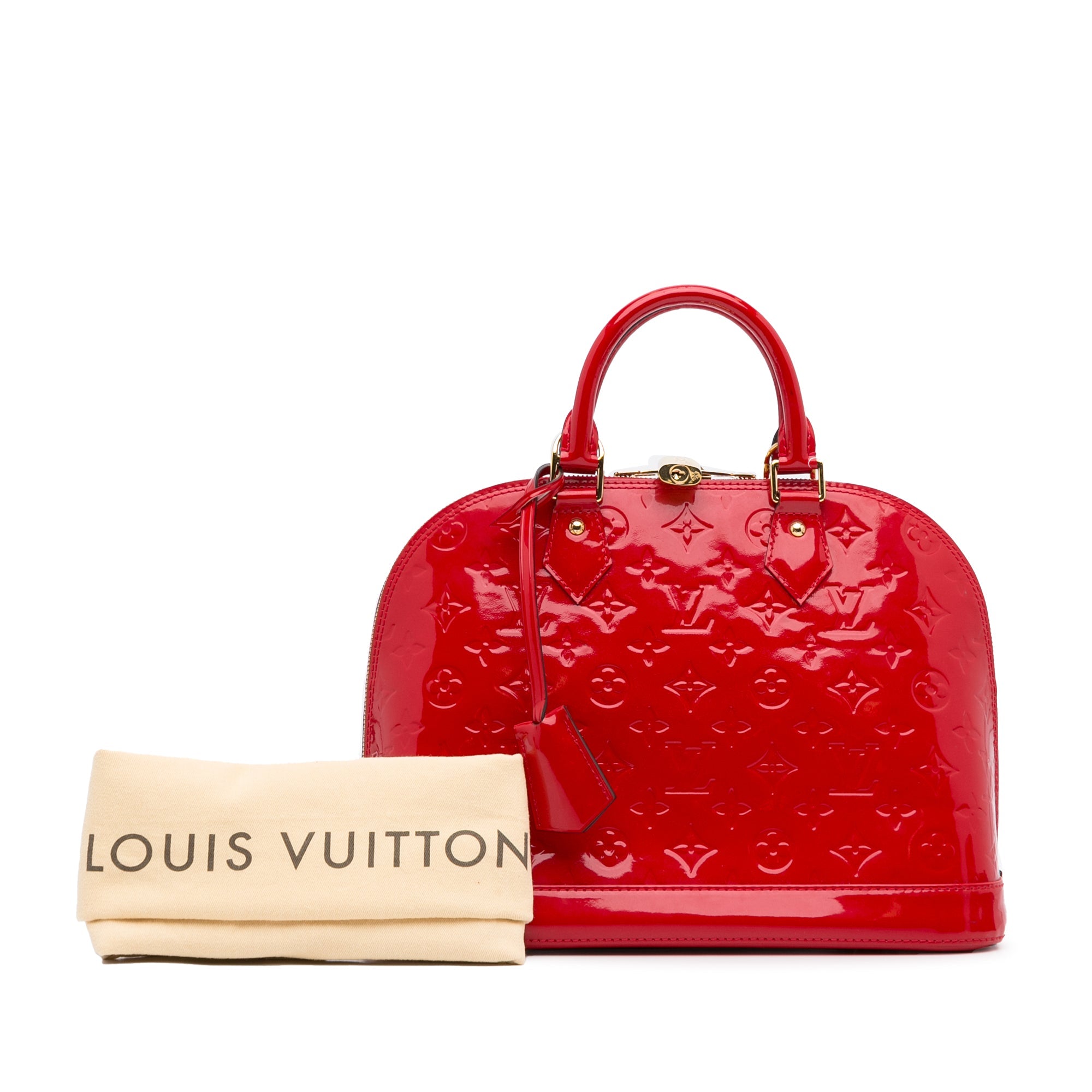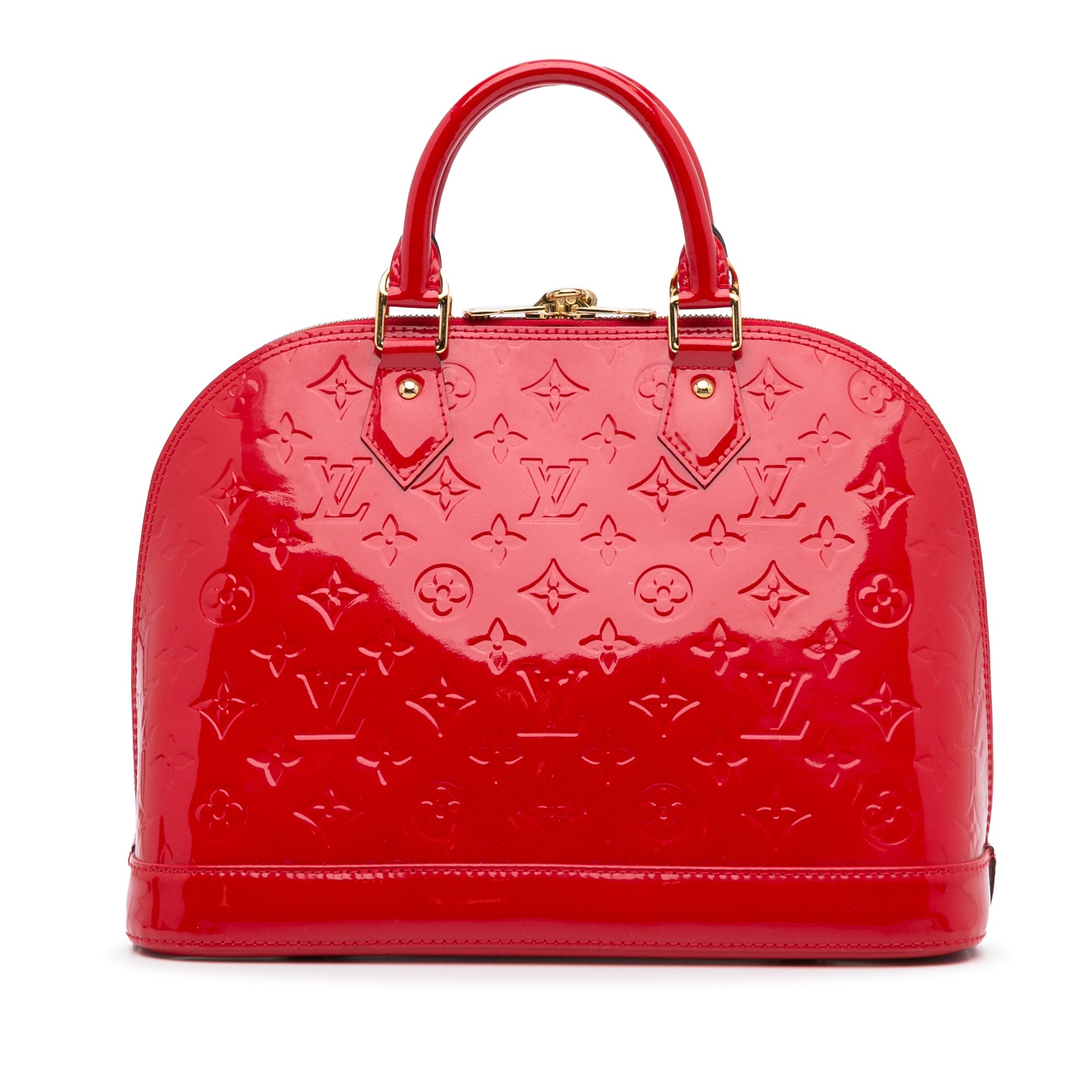 This LV Alma in size PM is made of shiny red Monogram Vernis leather and features gold-tone details, a double gold-tone zipper, a top zip closure and a slip pocket inside. The Bag is carried by hand! It is not for nothing that it is one of the most popular bags of the house.