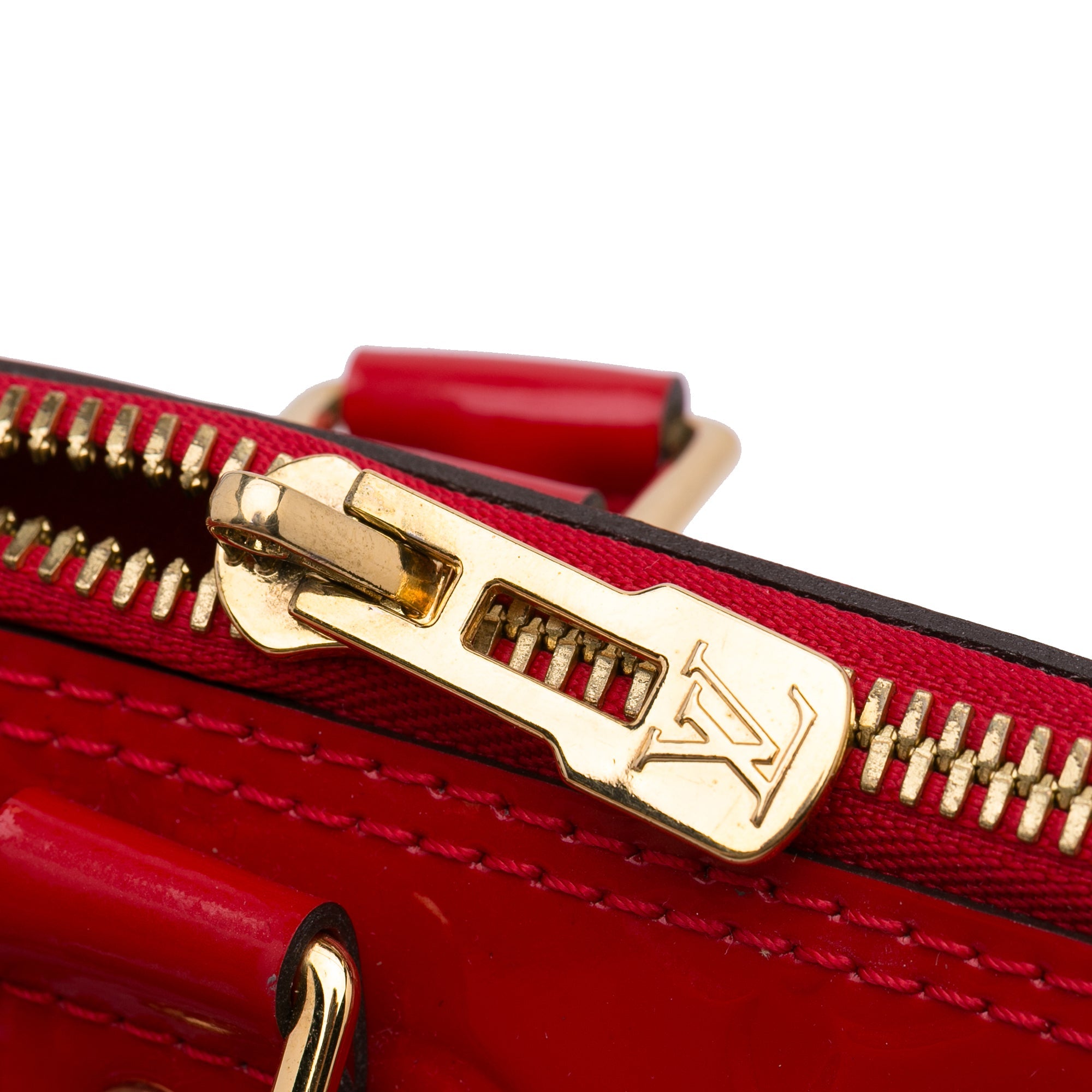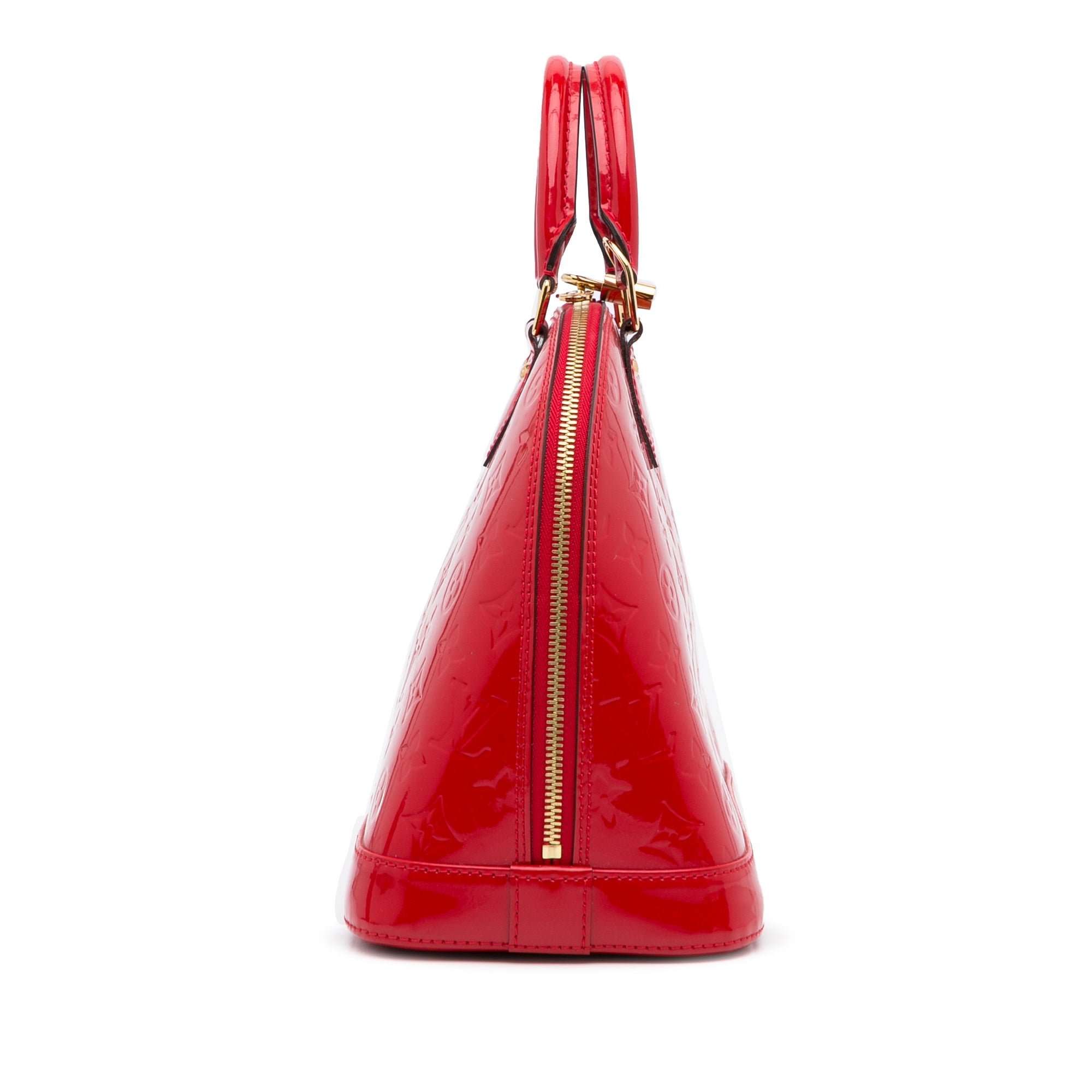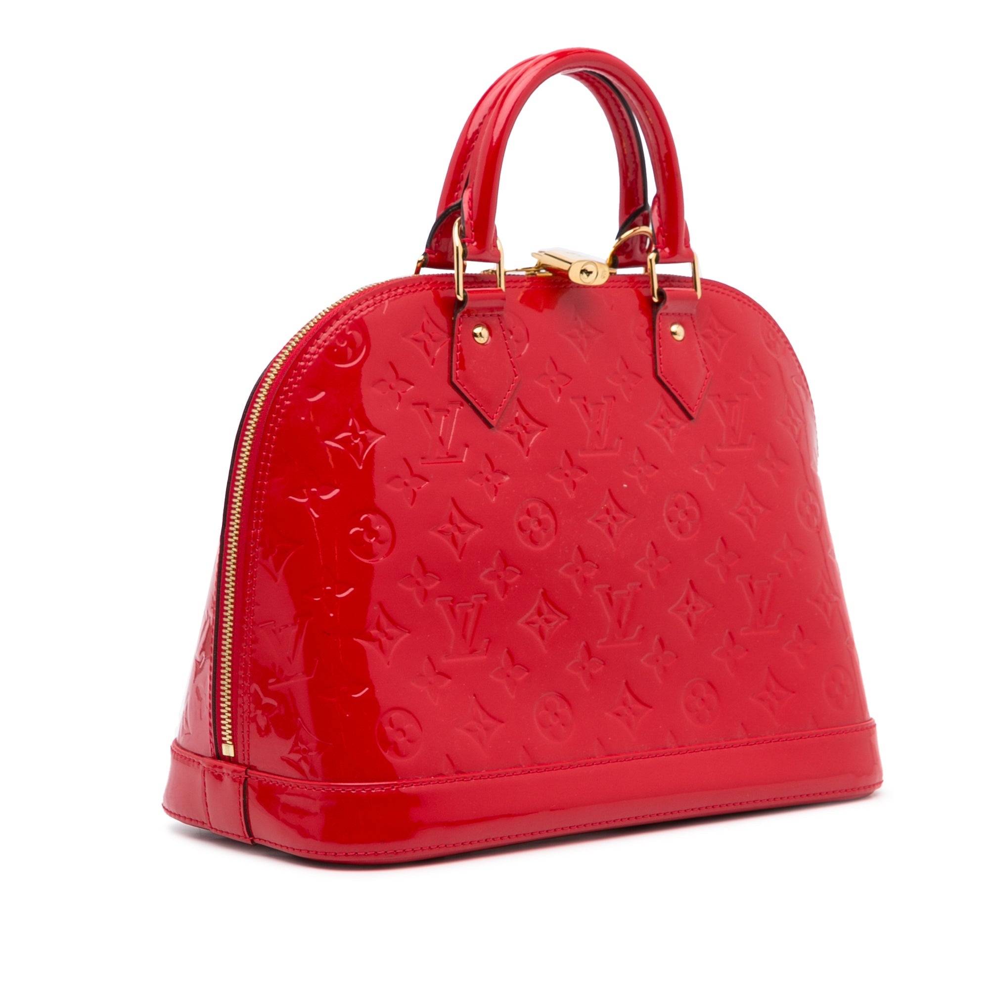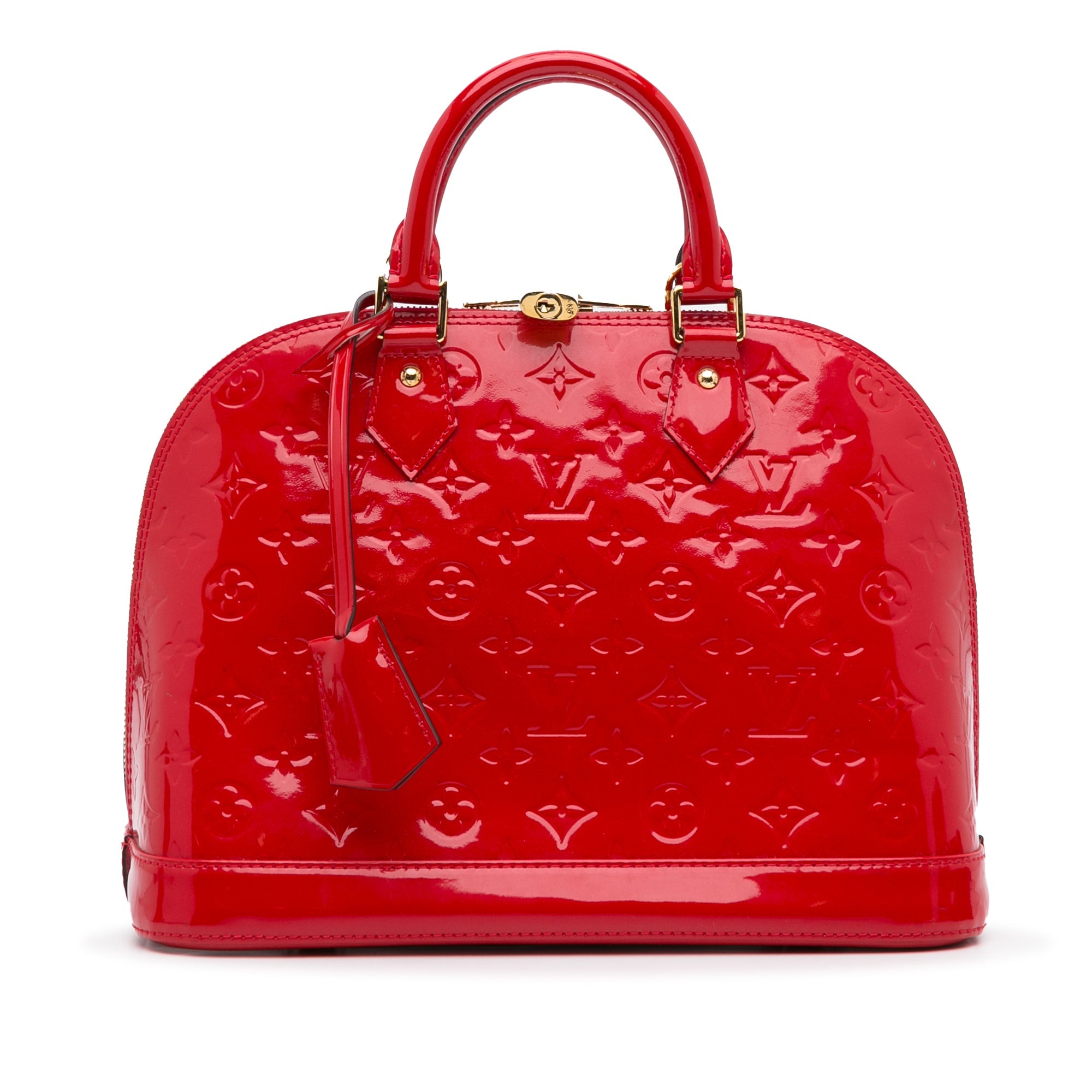 This LV Alma in size PM is made of shiny red Monogram Vernis leather and features gold-tone details, a double gold-tone zipper, a top zip closure and a slip pocket inside. The Bag is carried by hand! It is not for nothing that it is one of the most popular bags of the house.