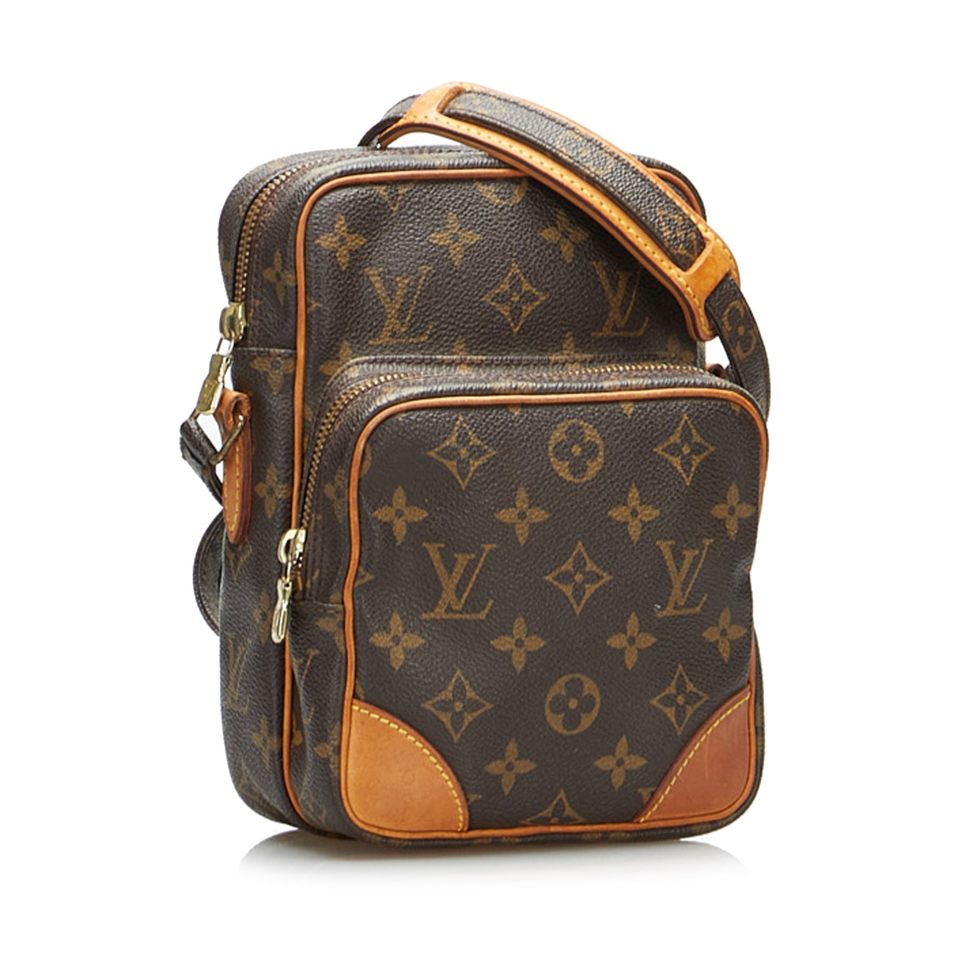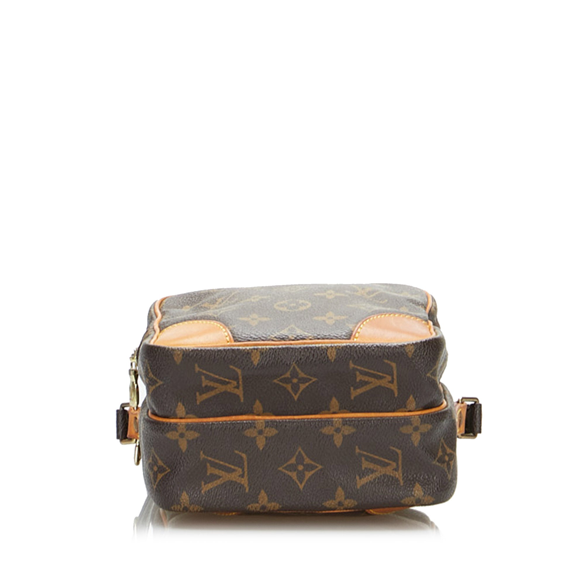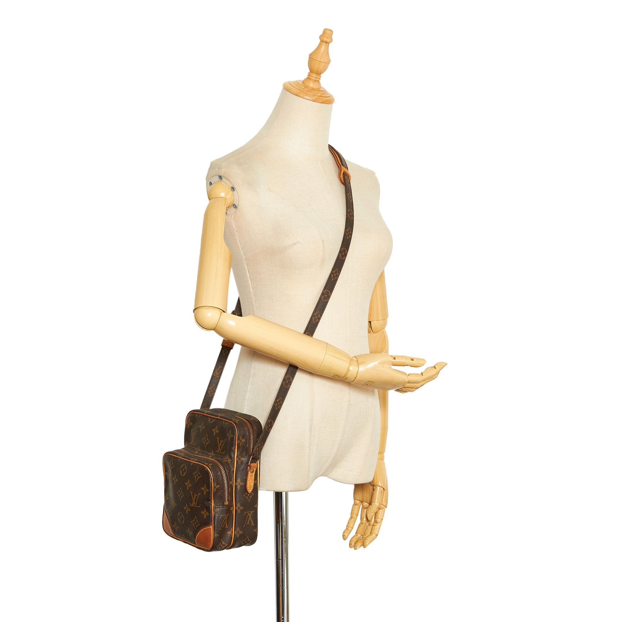 This LV Amazon is made from Monogram Canvas and features brown leather trim, a zippered front compartment, a zippered opening, and a zippered interior compartment. The Bag is best worn across the body and features an adjustable length Monogram Canvas shoulder strap for this purpose.